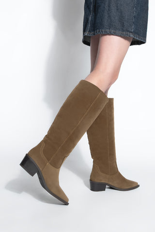 Kadın Sivri Burun Western Çizme Mivez - Kahve Süet