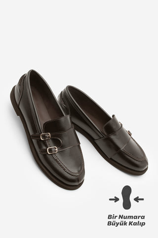 Kadın Loafer Tokalı Çift Bantlı Günlük Ayakkabı Ovora - Kahve