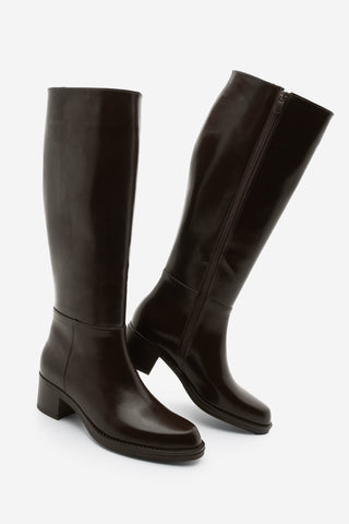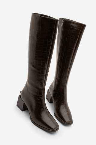 Kadın Küt Burun Kalın Topuklu Çizme Lusso - Kahve Croco