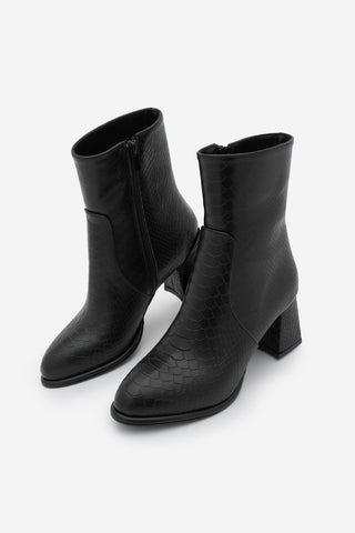 Kadın Kalın Topuklu Bot Mirasa - Siyah Croco