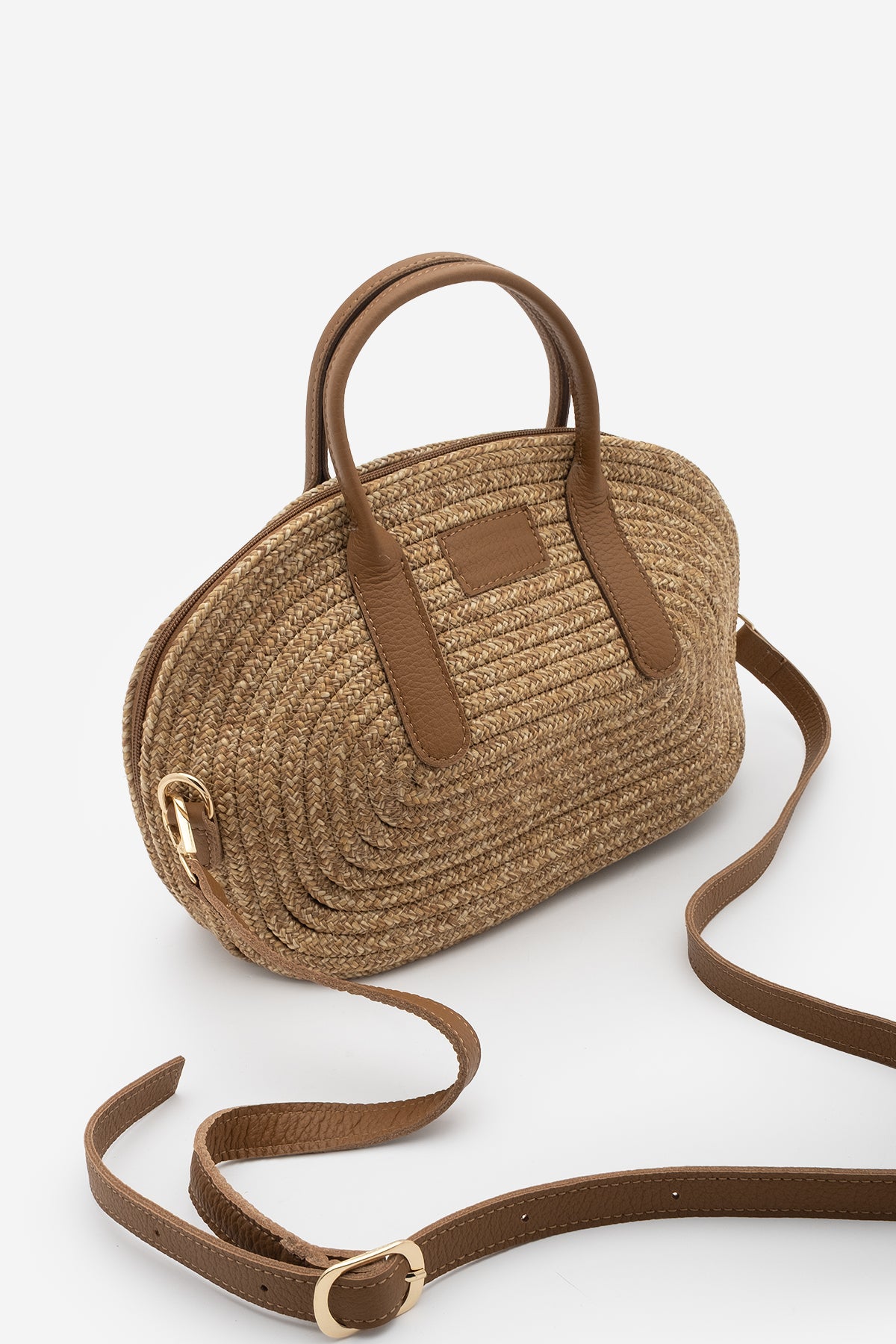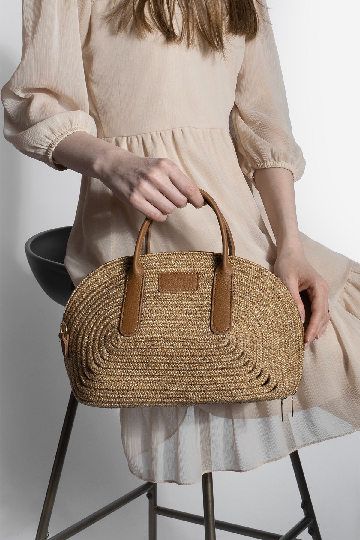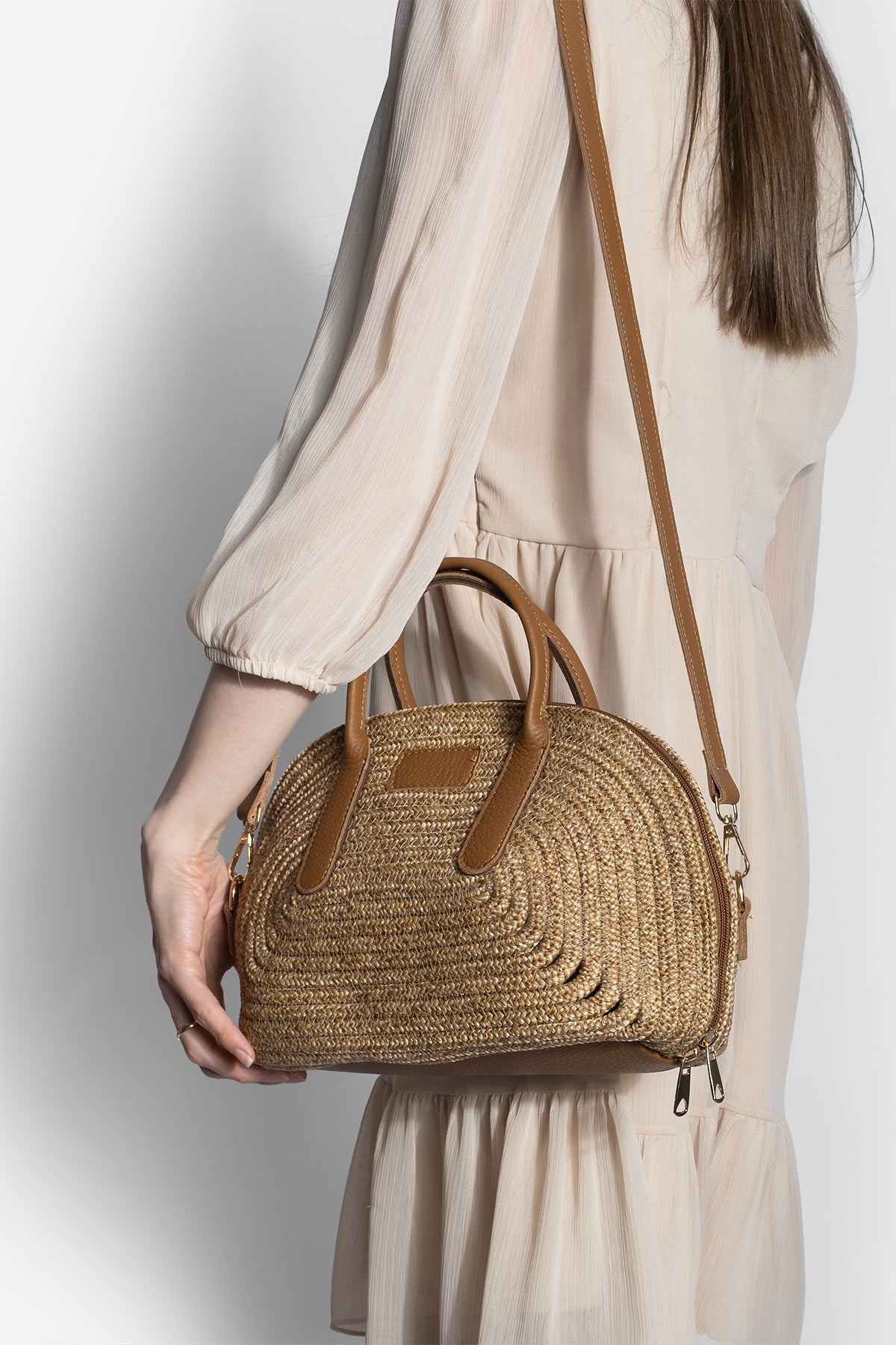 Kadın El Örgüsü El Ve Omuz Çantası Gizela - Taba Hasır