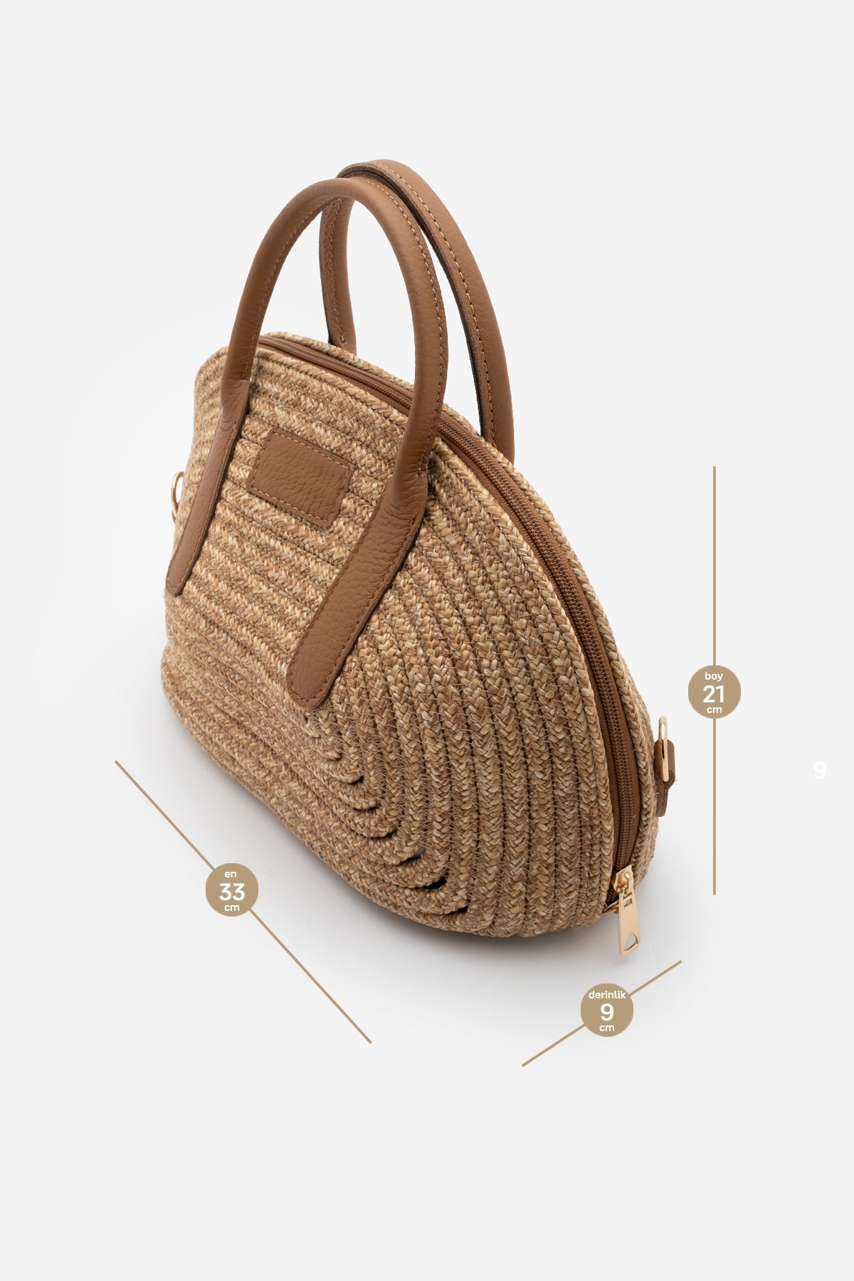 Kadın El Örgüsü El Ve Omuz Çantası Soper - Taba Hasır