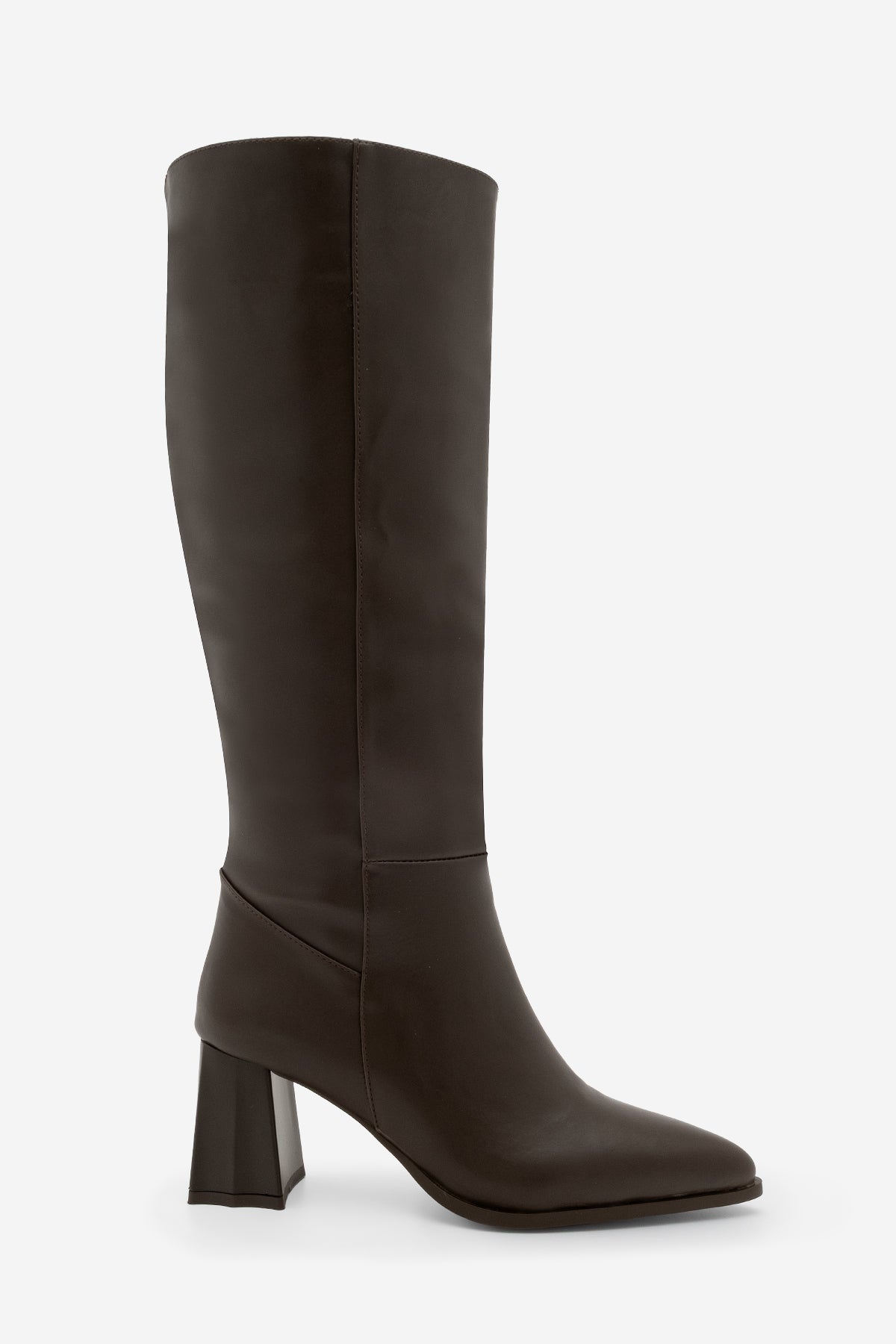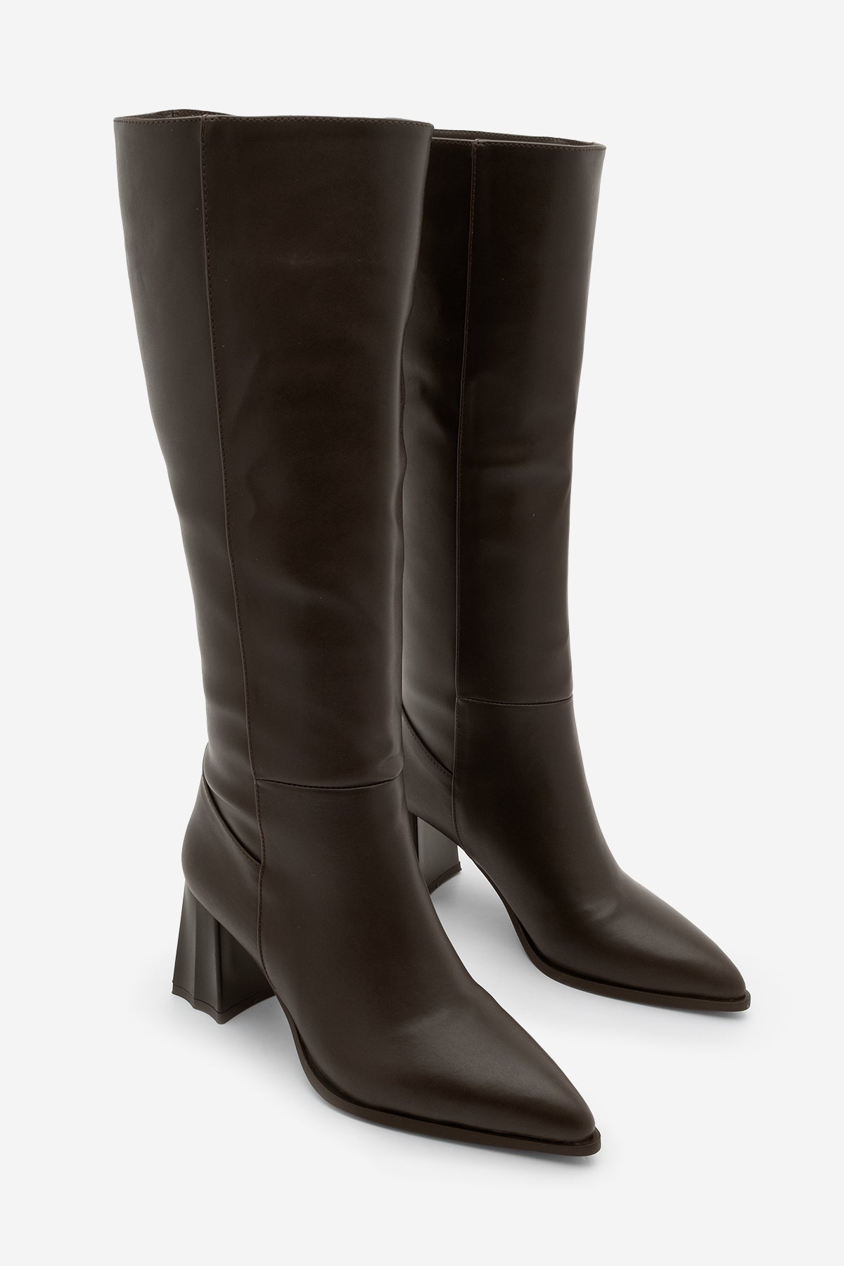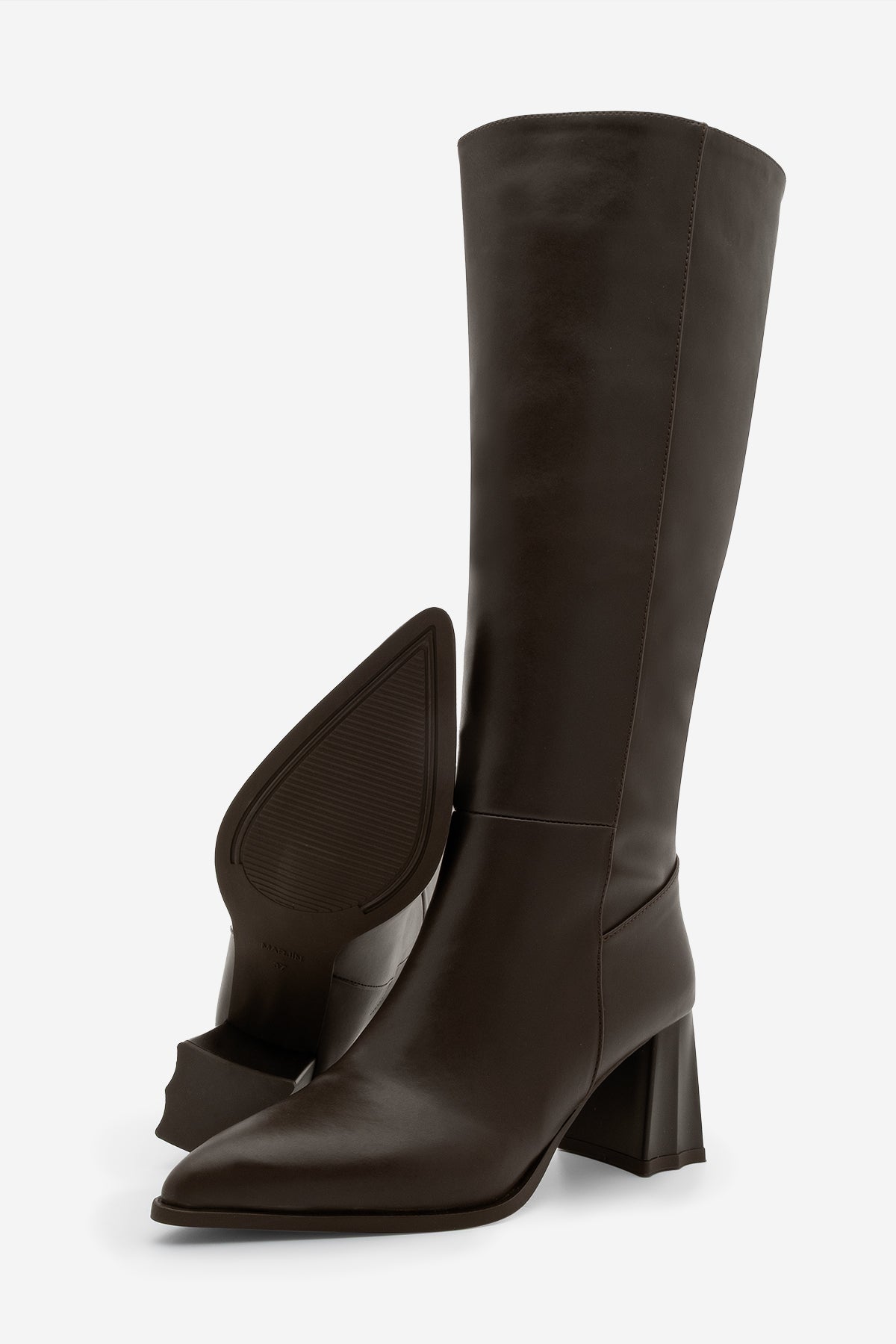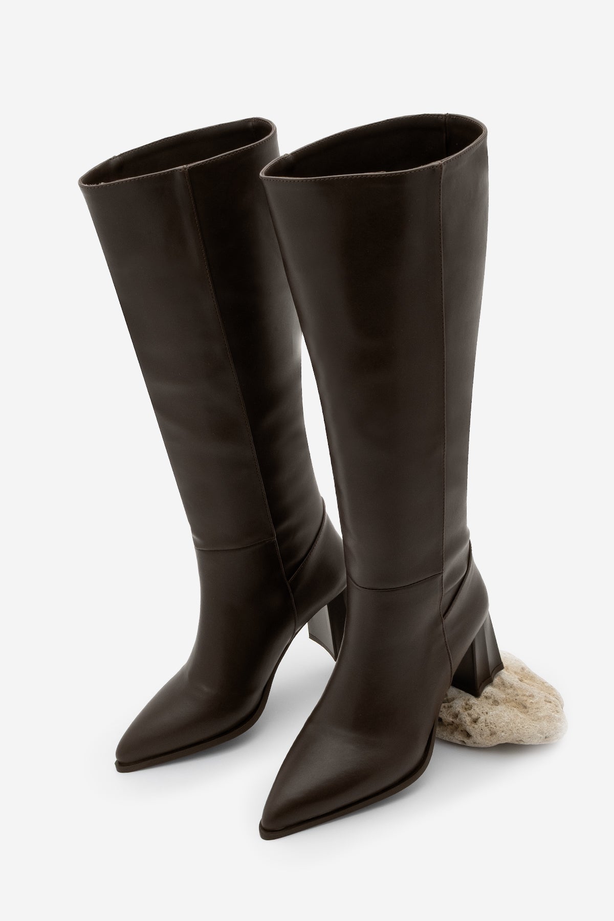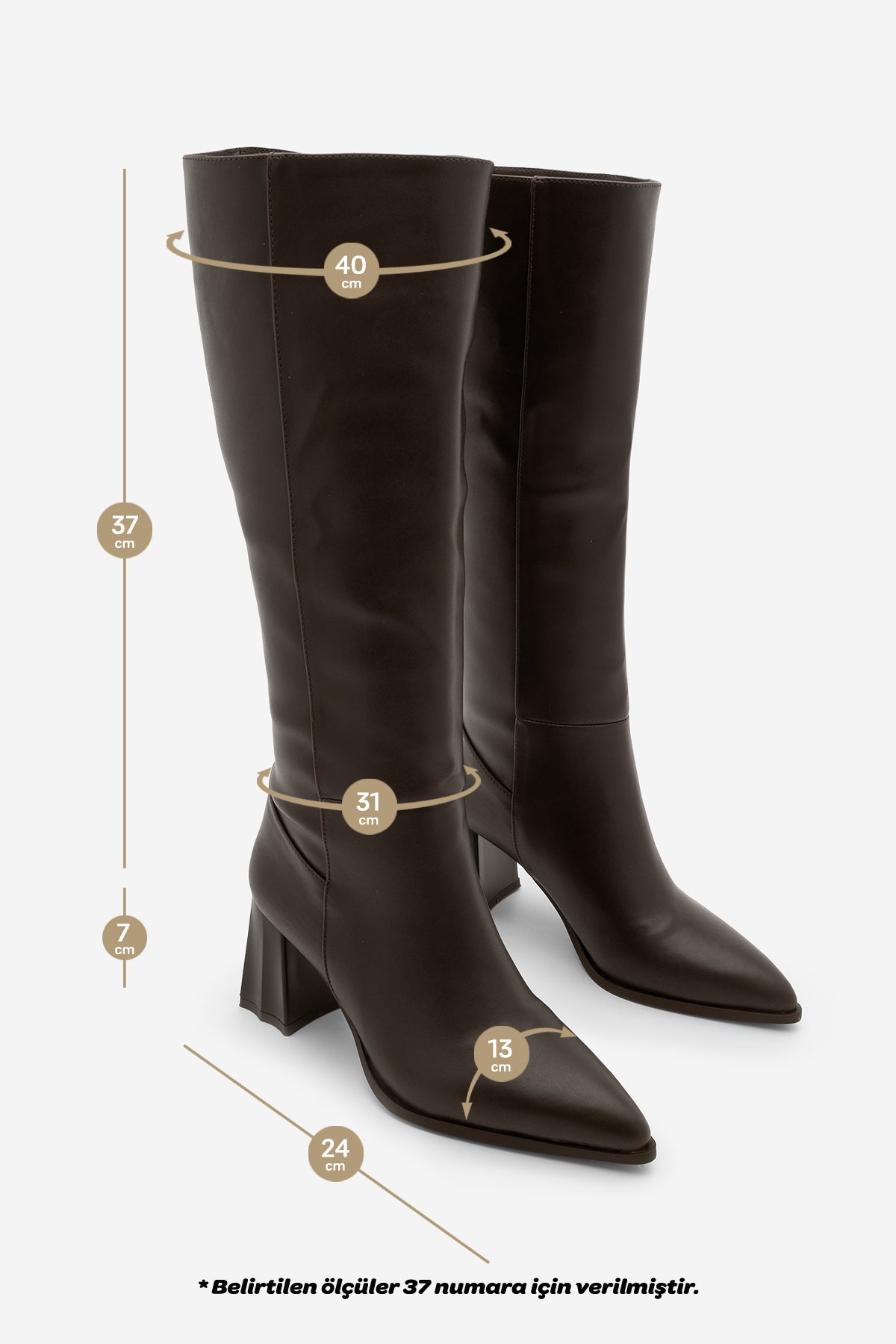 Kadın Fermuarsız Topuklu Çizme Runava - Kahve