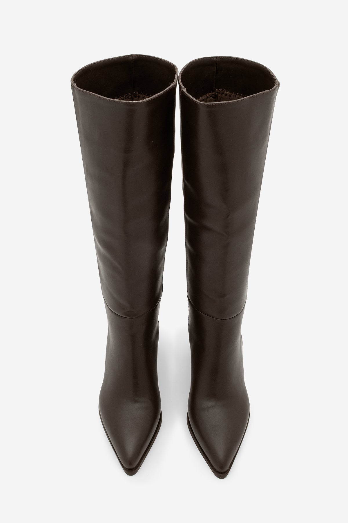 Kadın Sivri Burun Topuklu Çizme Mortez - Kahve Süet