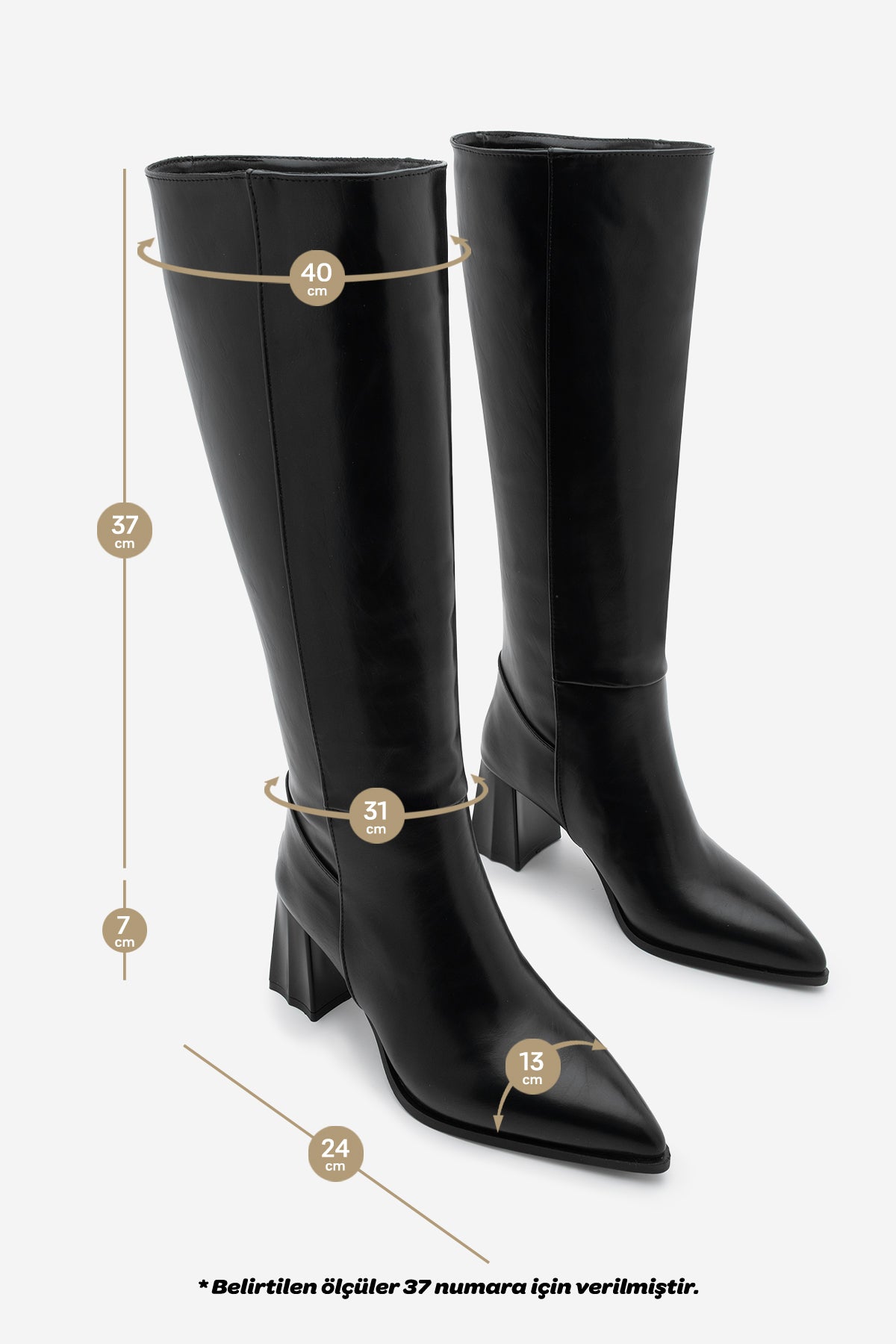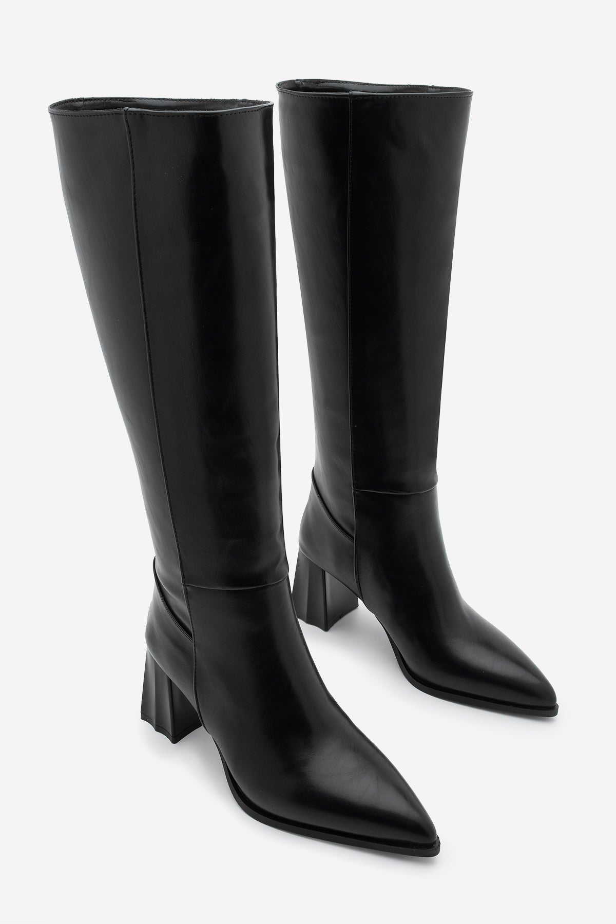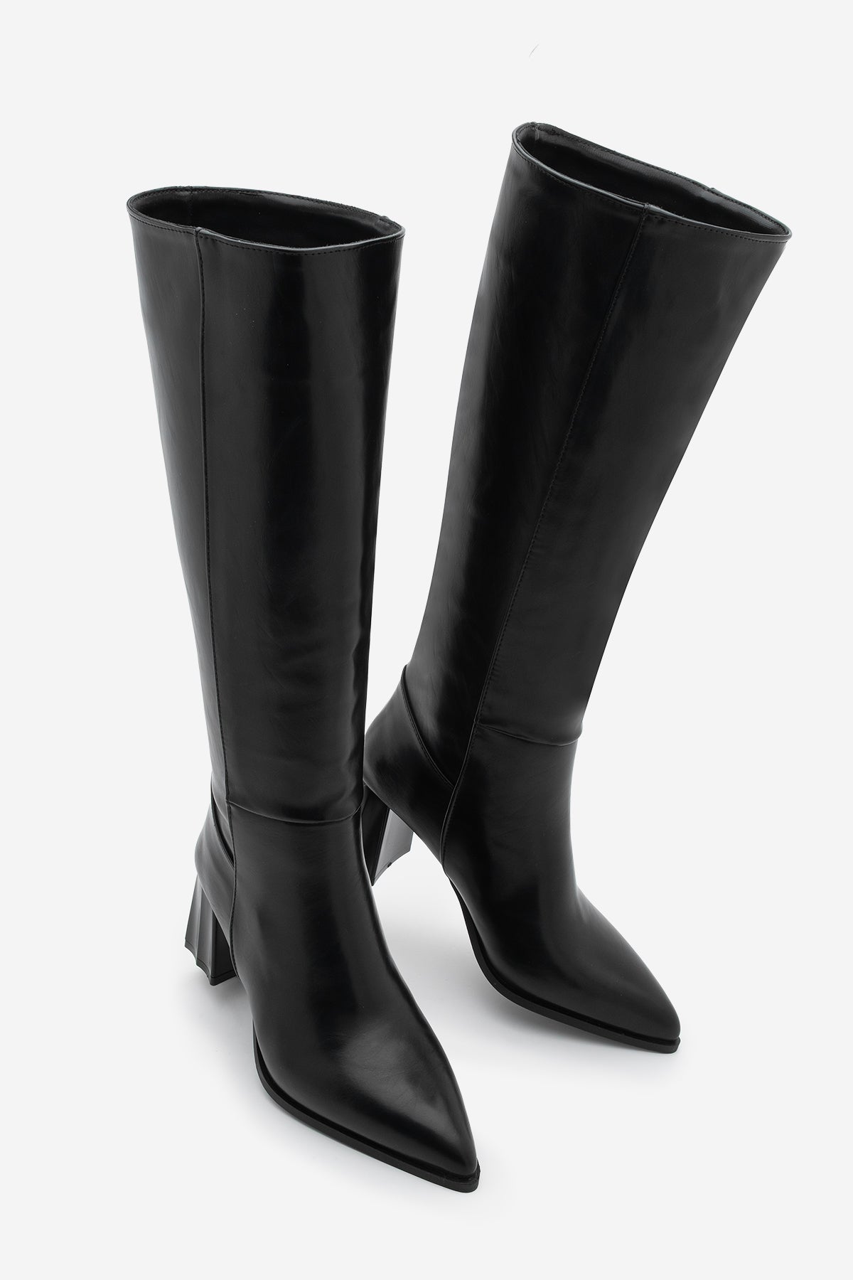 Kadın Fermuarsız Topuklu Çizme Runava - Siyah