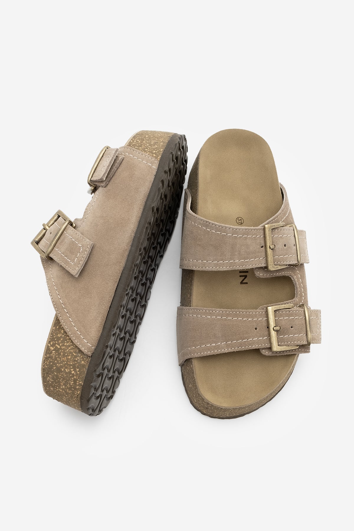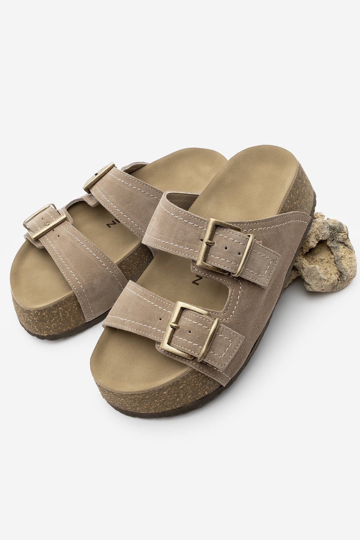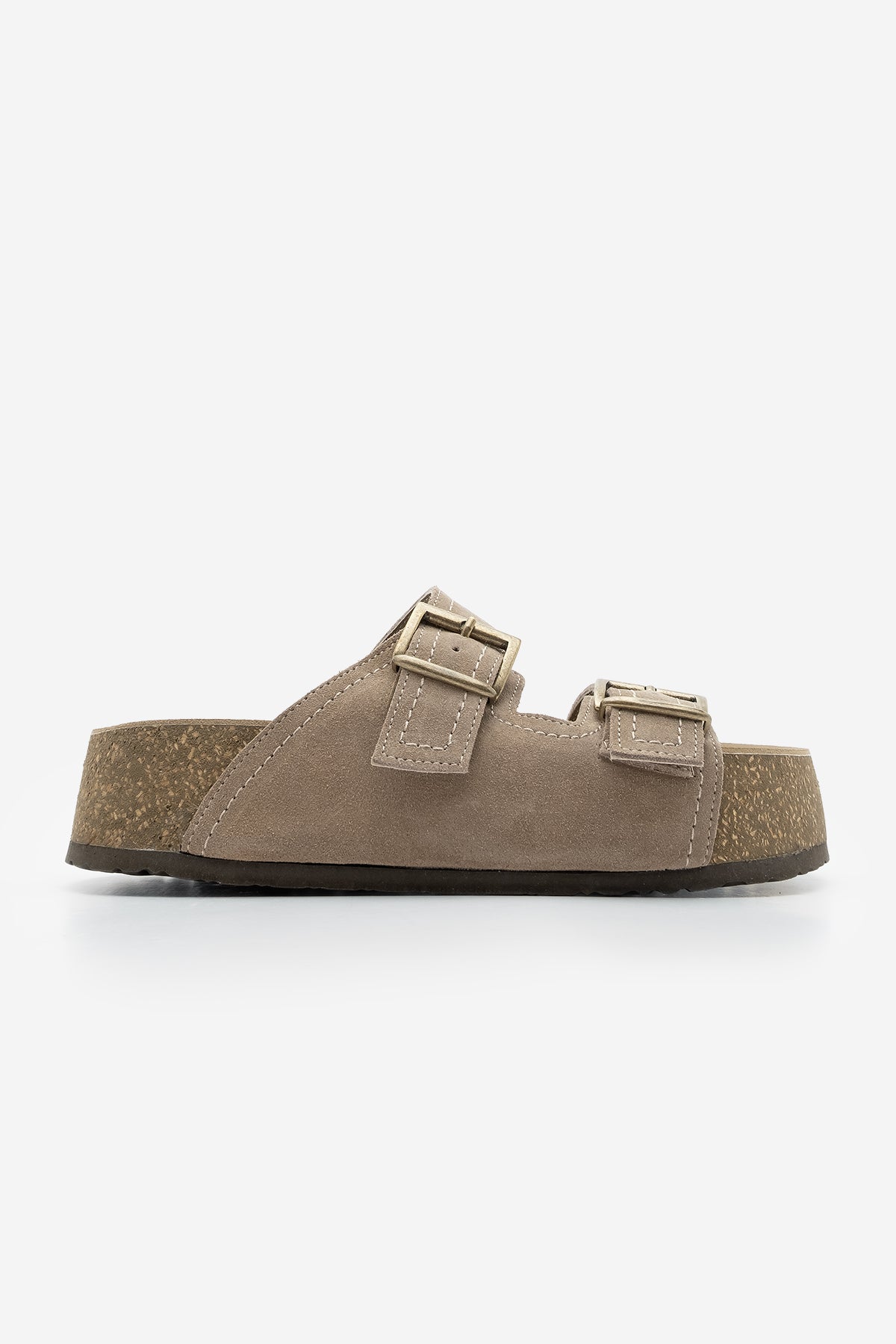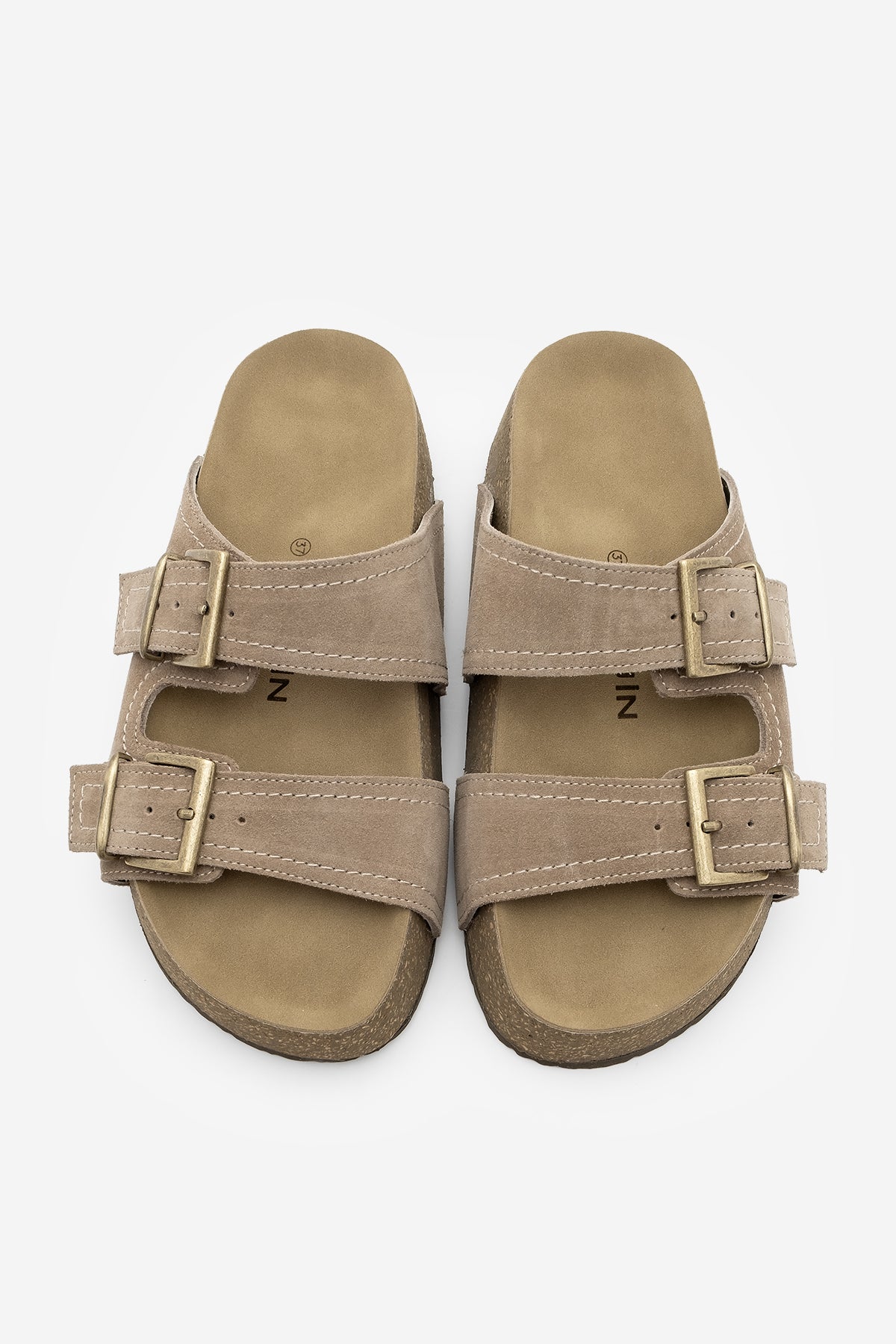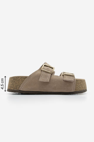 Kadın Hakiki Deri Çift Bantlı Günlük Terlik Roneta - Vizon Süet