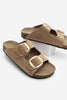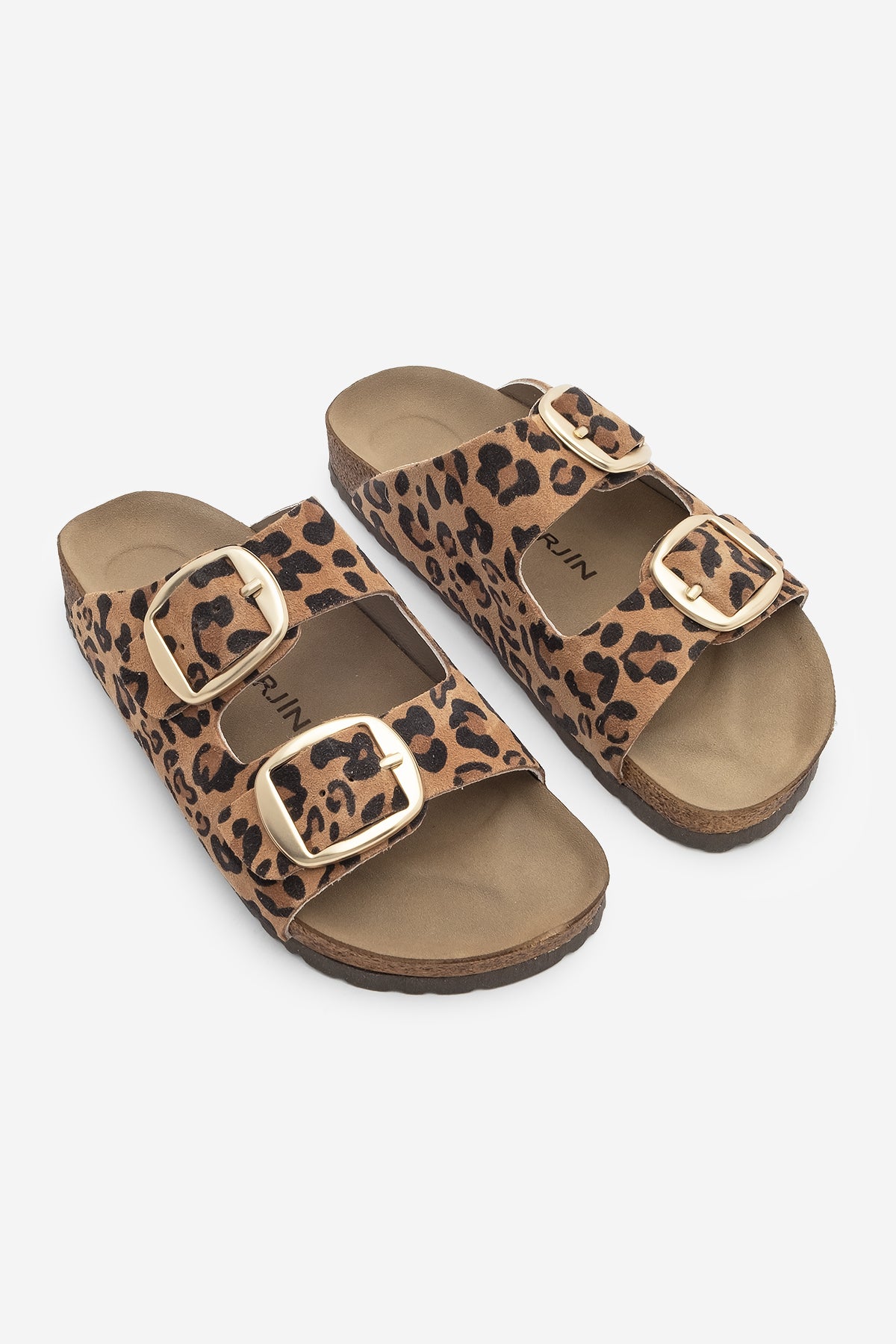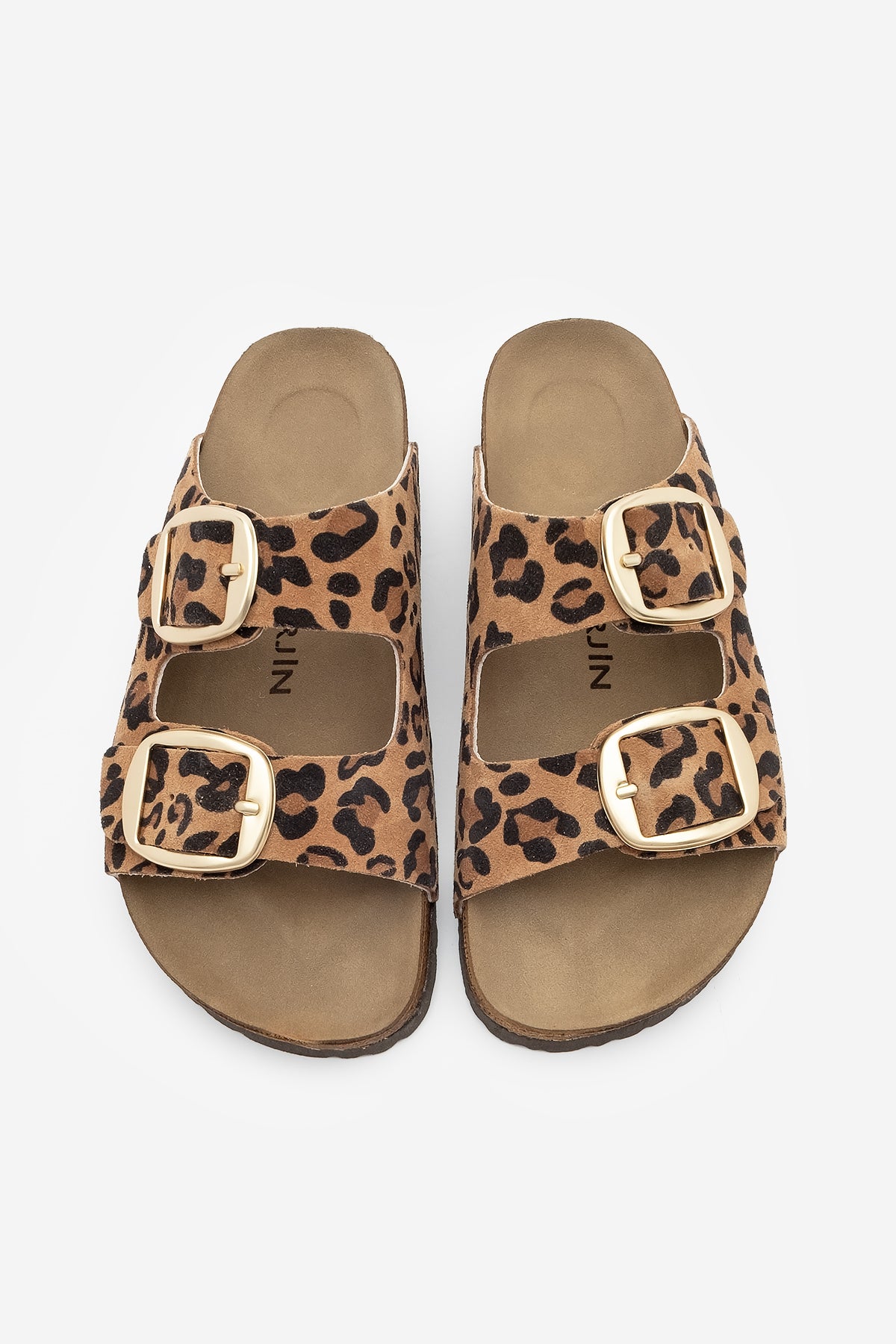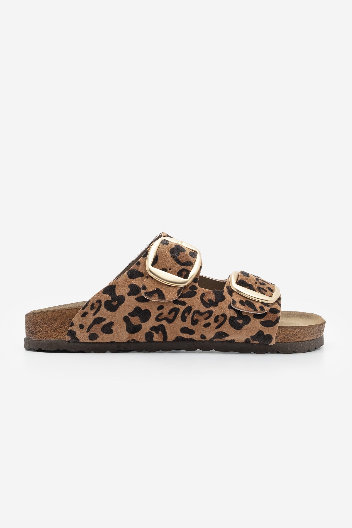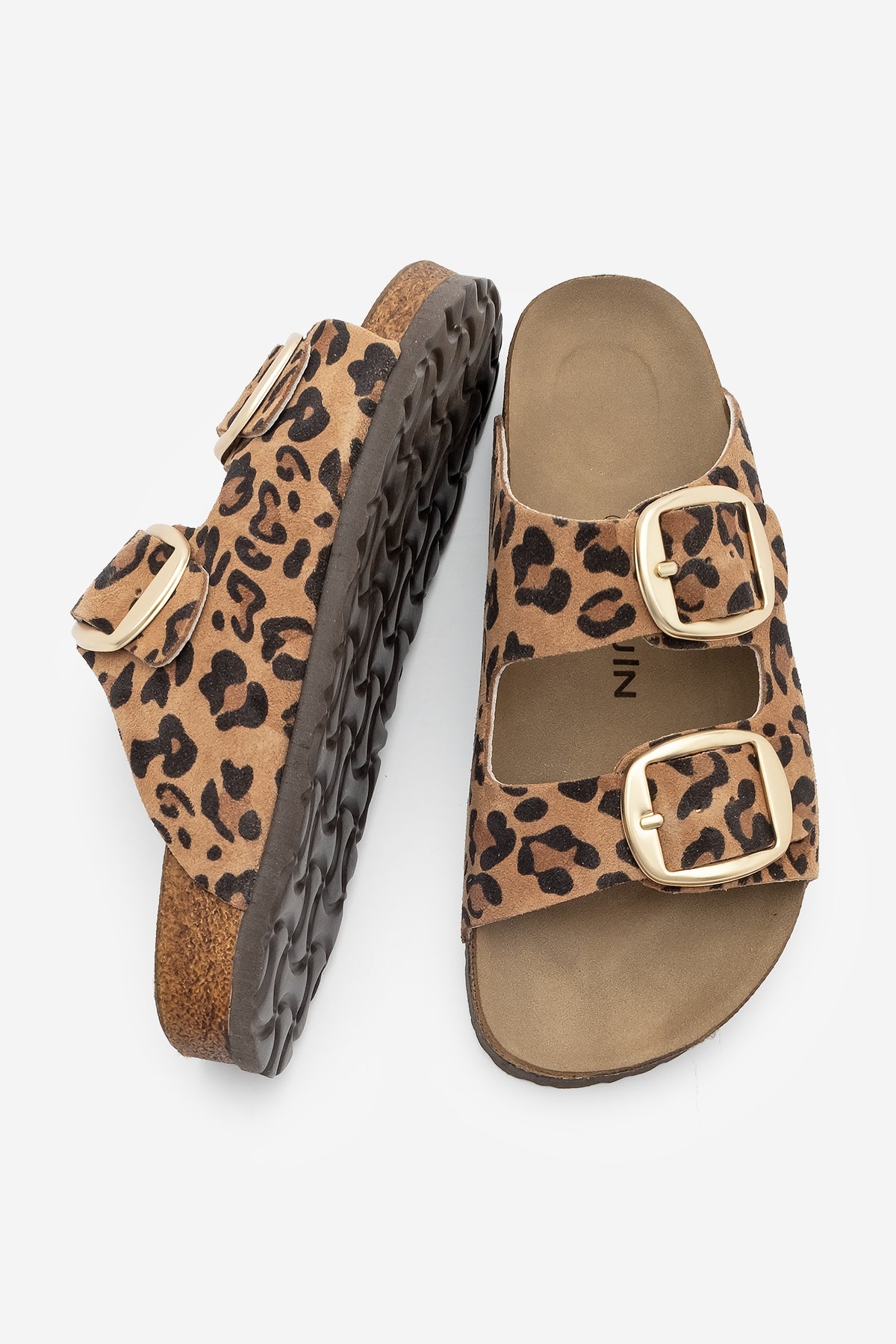 Kadın Hakiki Deri Eva Taban Günlük Terlik Poli - Taba Leopar