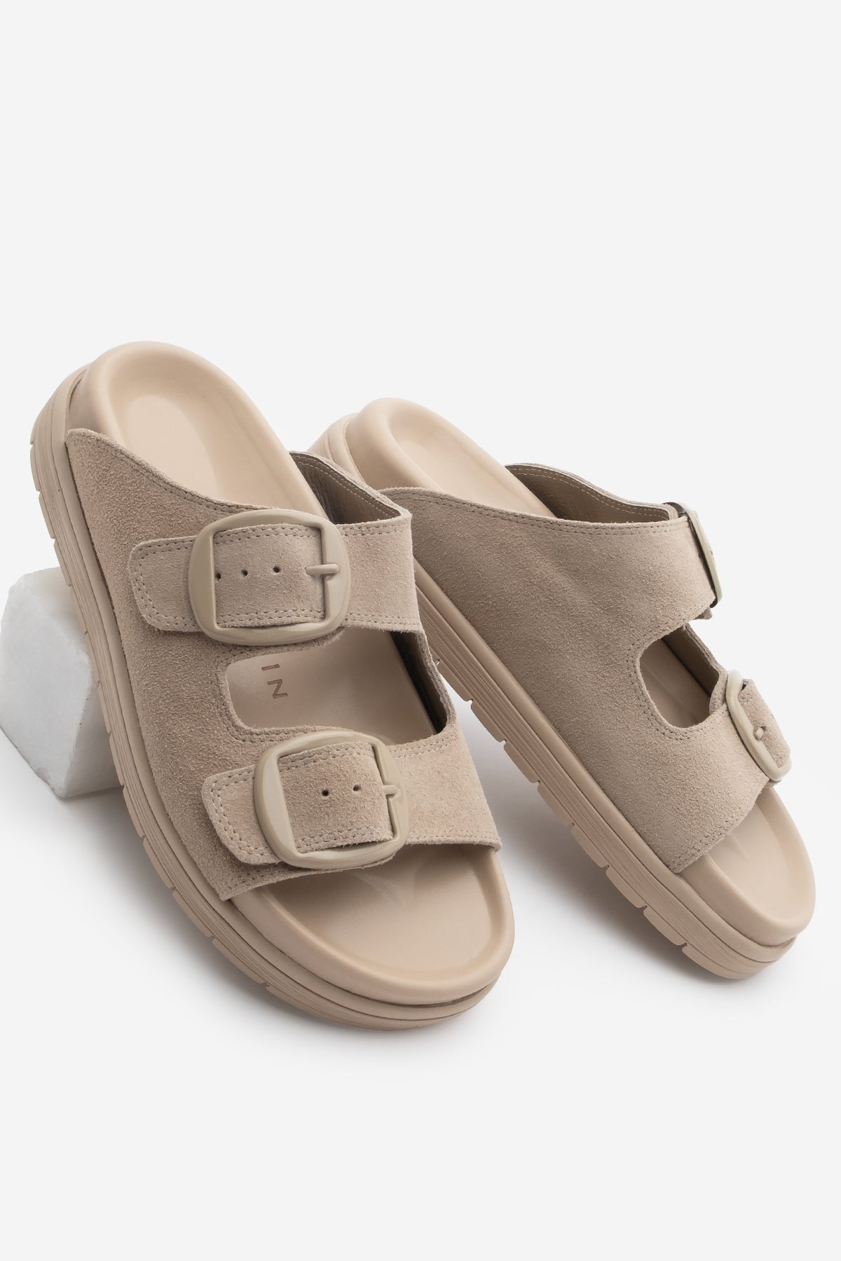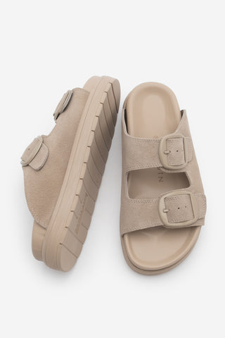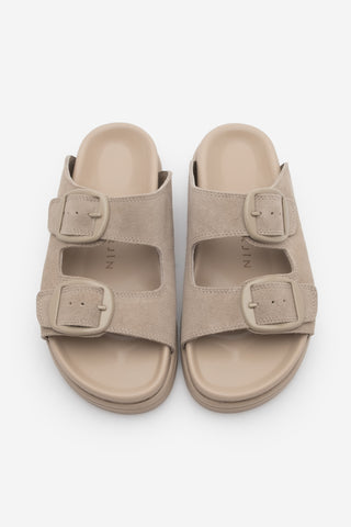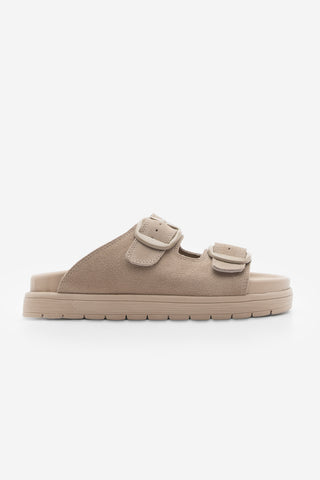 Kadın Hakiki Deri Günlük Terlik Rontes - Bej Süet