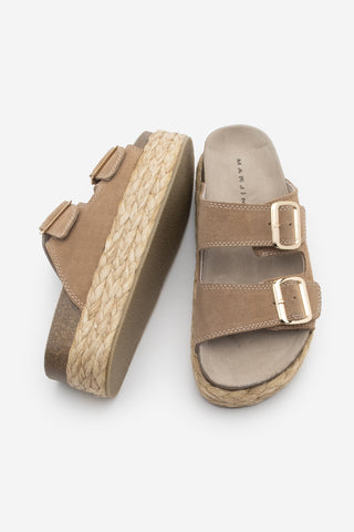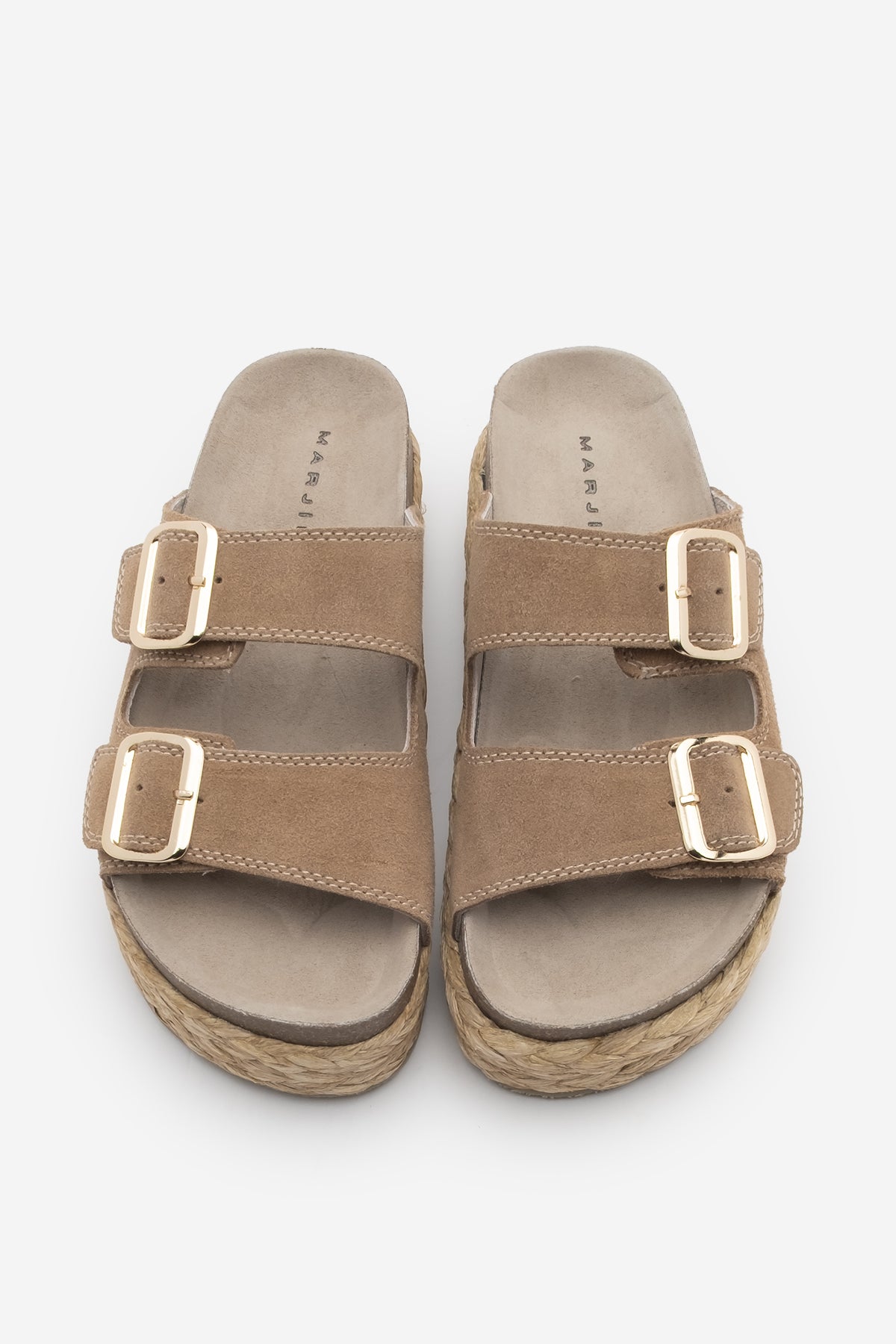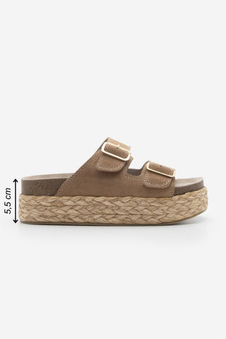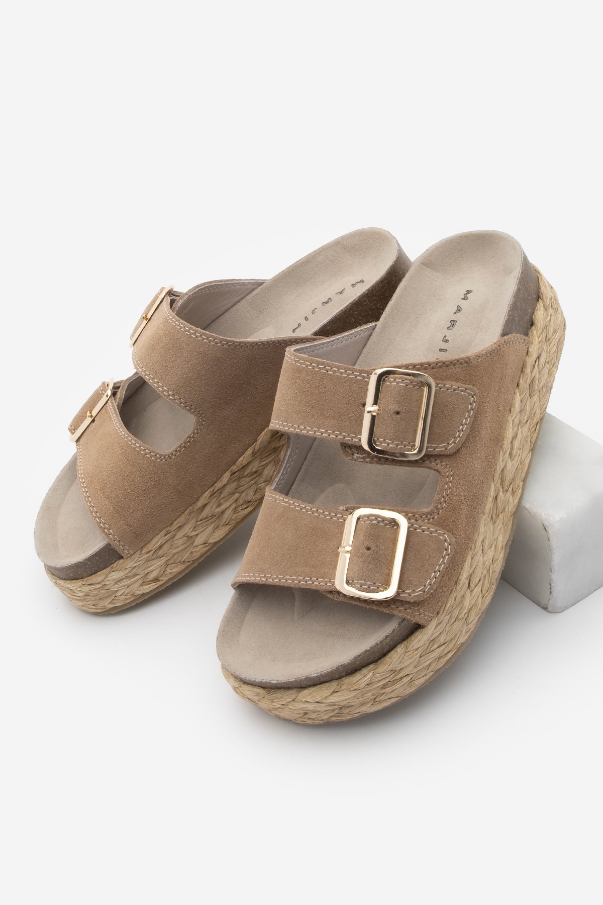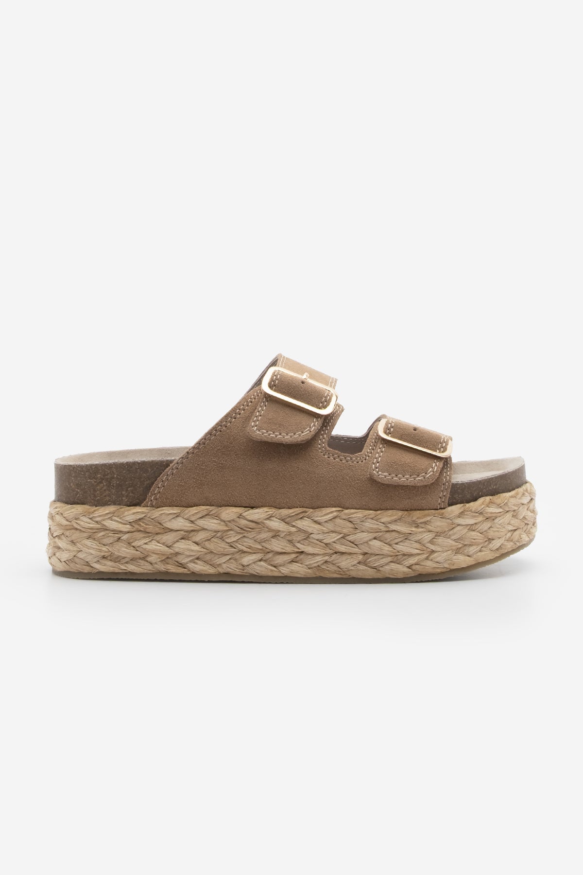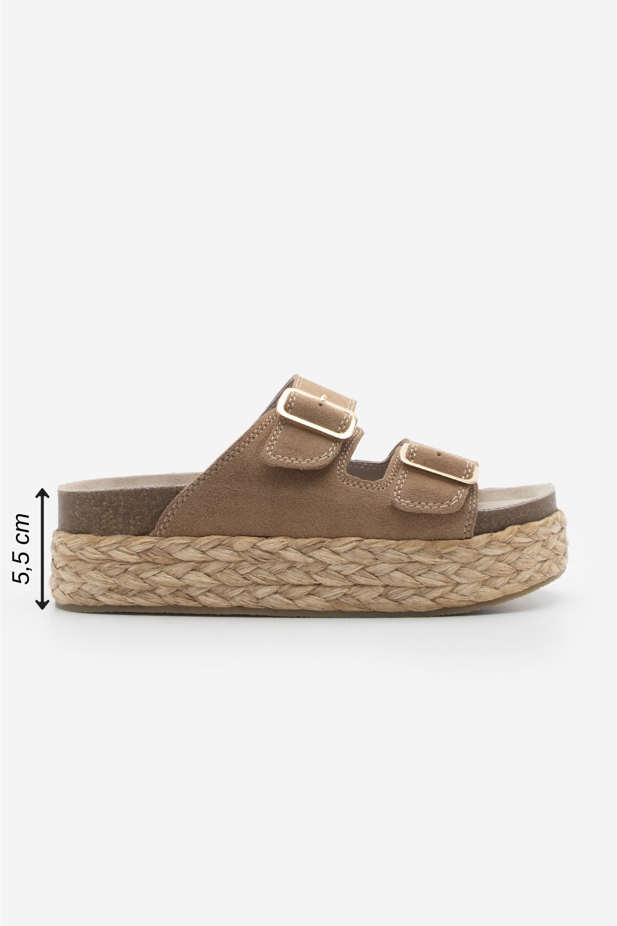 Kadın Hakiki Deri Hasır Taban Günlük Terlik Lumet - Camel Süet