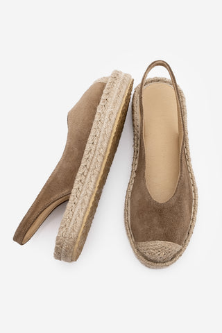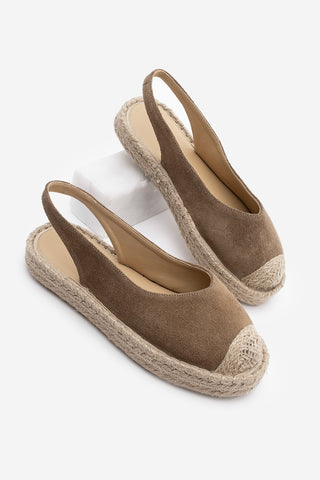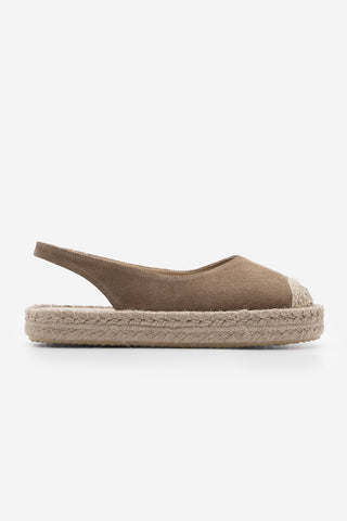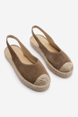 Kadın Hakiki Deri Jüt Espadril Sandalet Konlep - Camel Süet