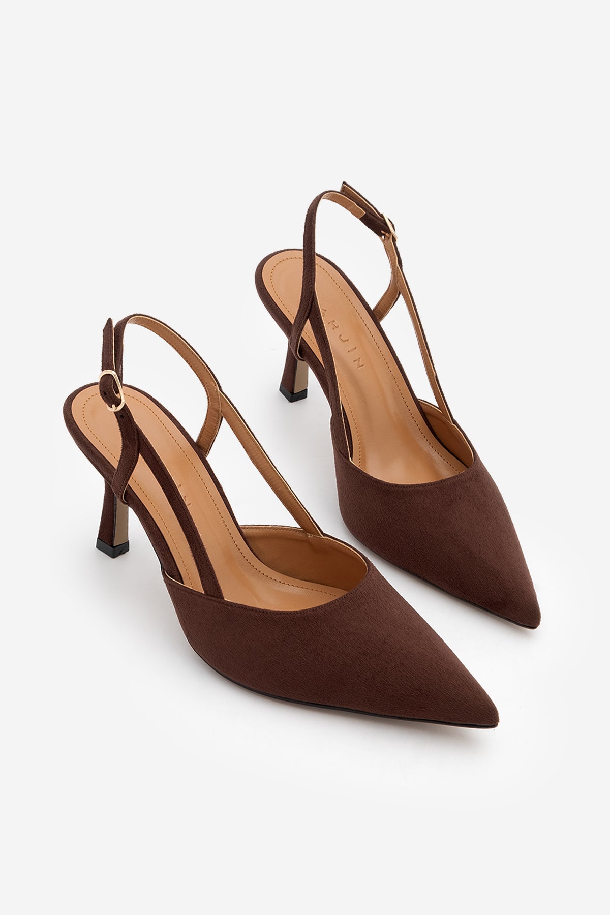 Kadın Stiletto Topuklu Ayakkabı Livam - Kahve Süet