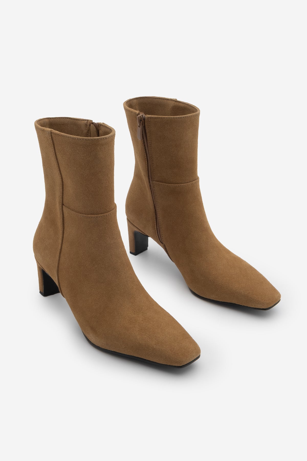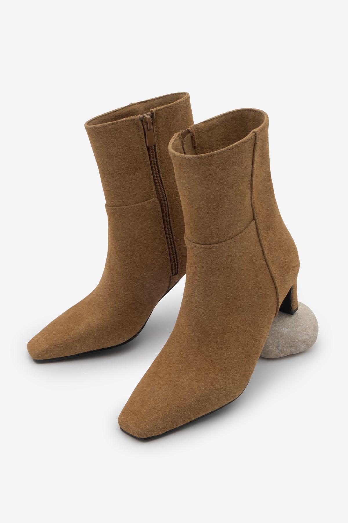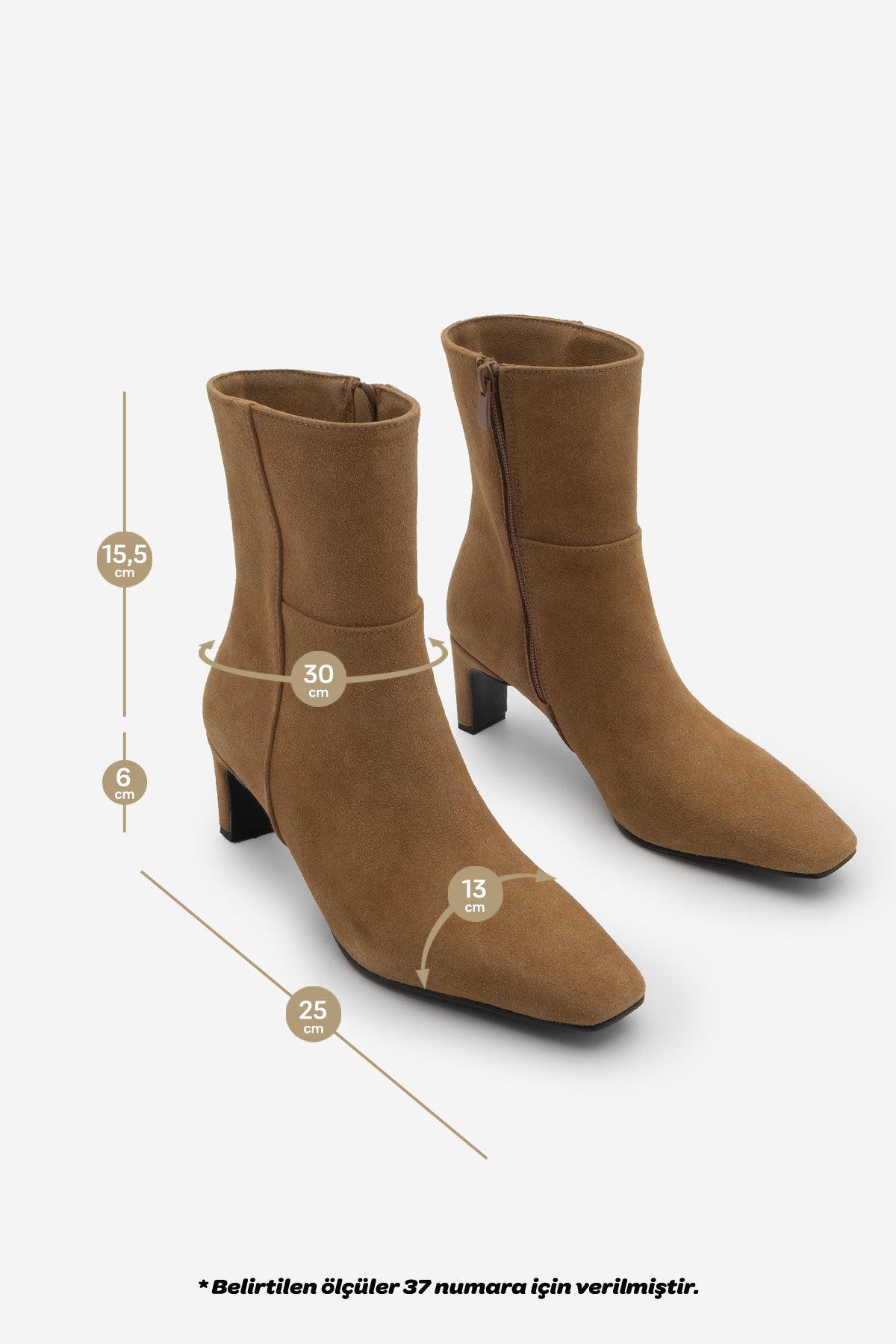 Kadın Küt Burun Topuklu Bot Sivet - Taba Süet