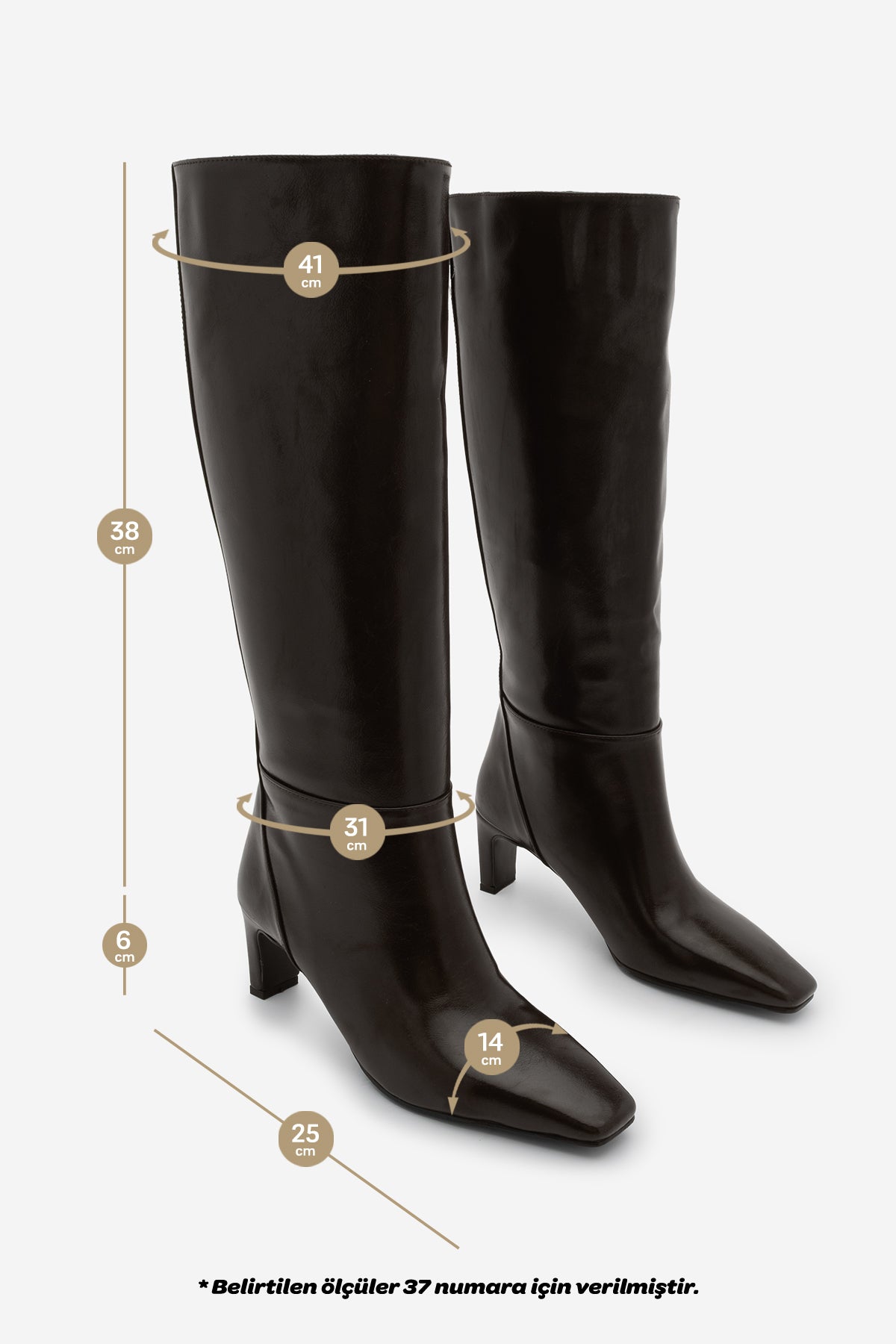Kadın Küt Burun Topuklu Çizme Doreka - Kahve