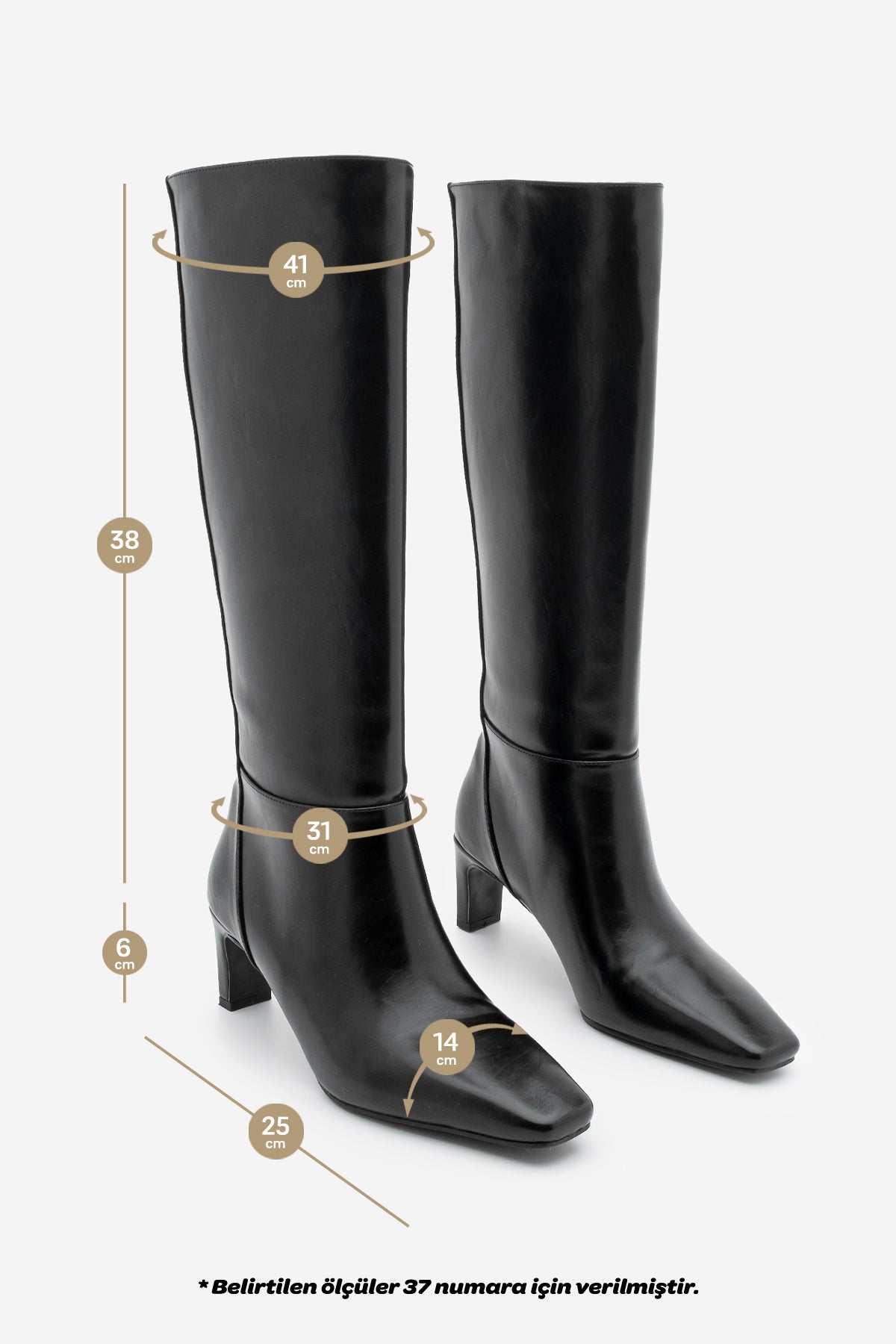 Kadın Küt Burun Topuklu Çizme Doreka - Siyah
