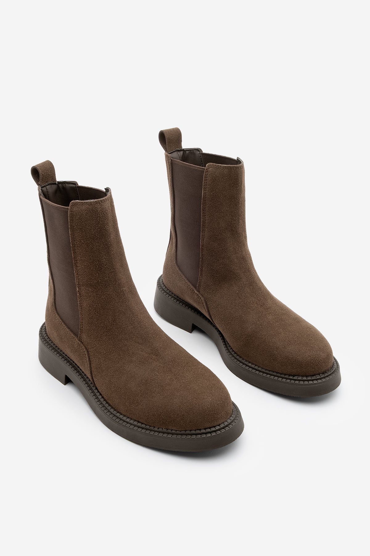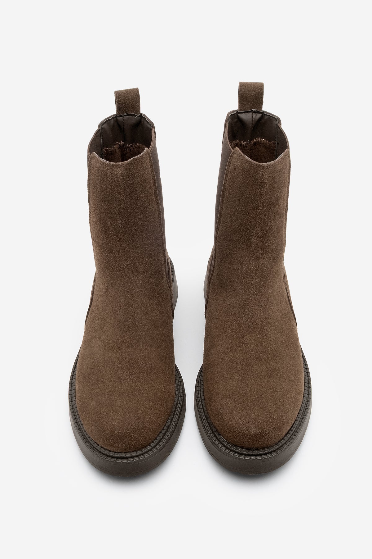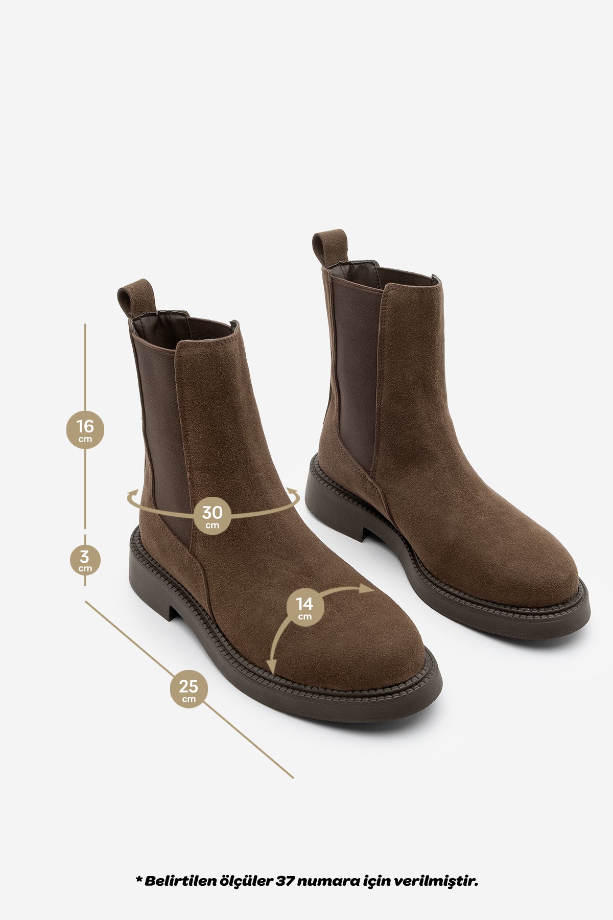 Kadın Lastikli Günlük Bot Panve - Kahve Süet