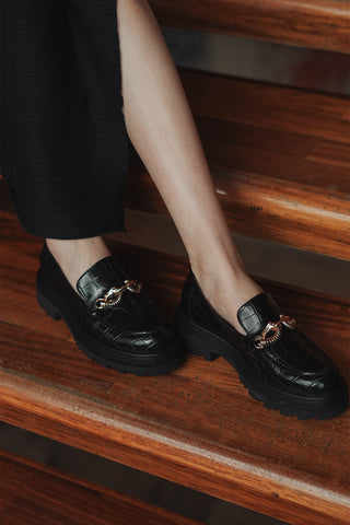 Kadın Loafer Tokalı Günlük Ayakkabı Rizya - Siyah Croco