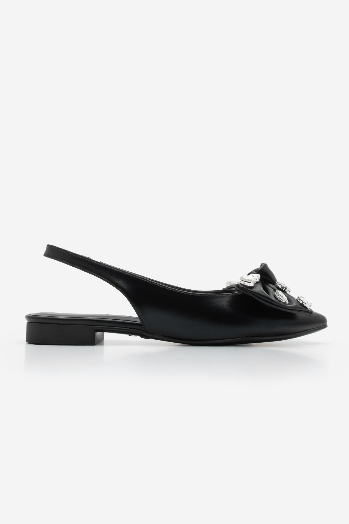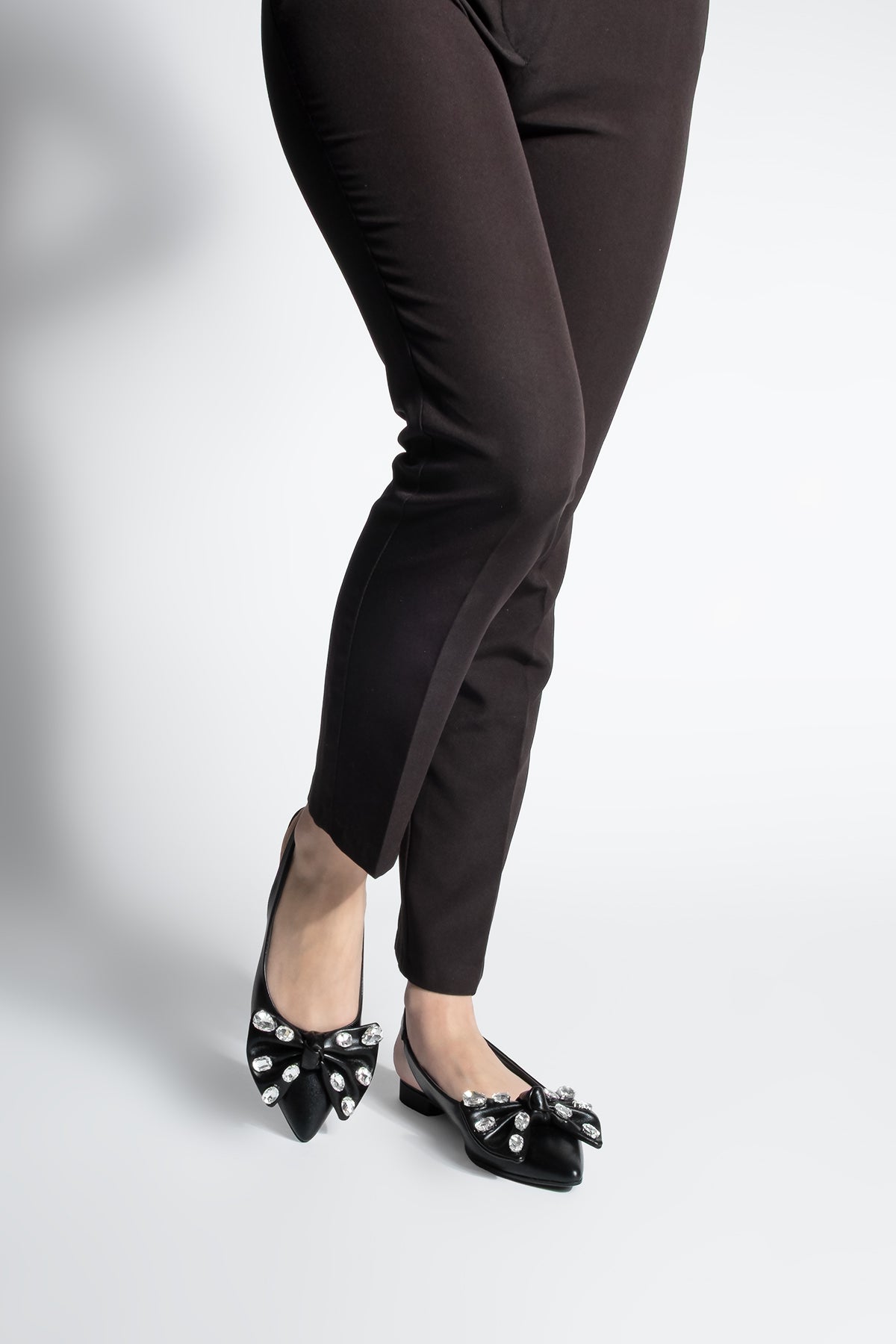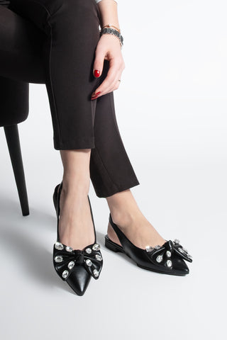 Kadın Sivri Burun Fiyonklu Taşlı Babet Lispen - Siyah