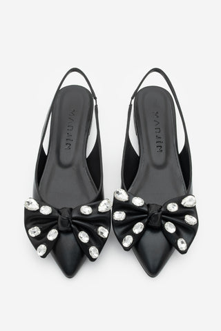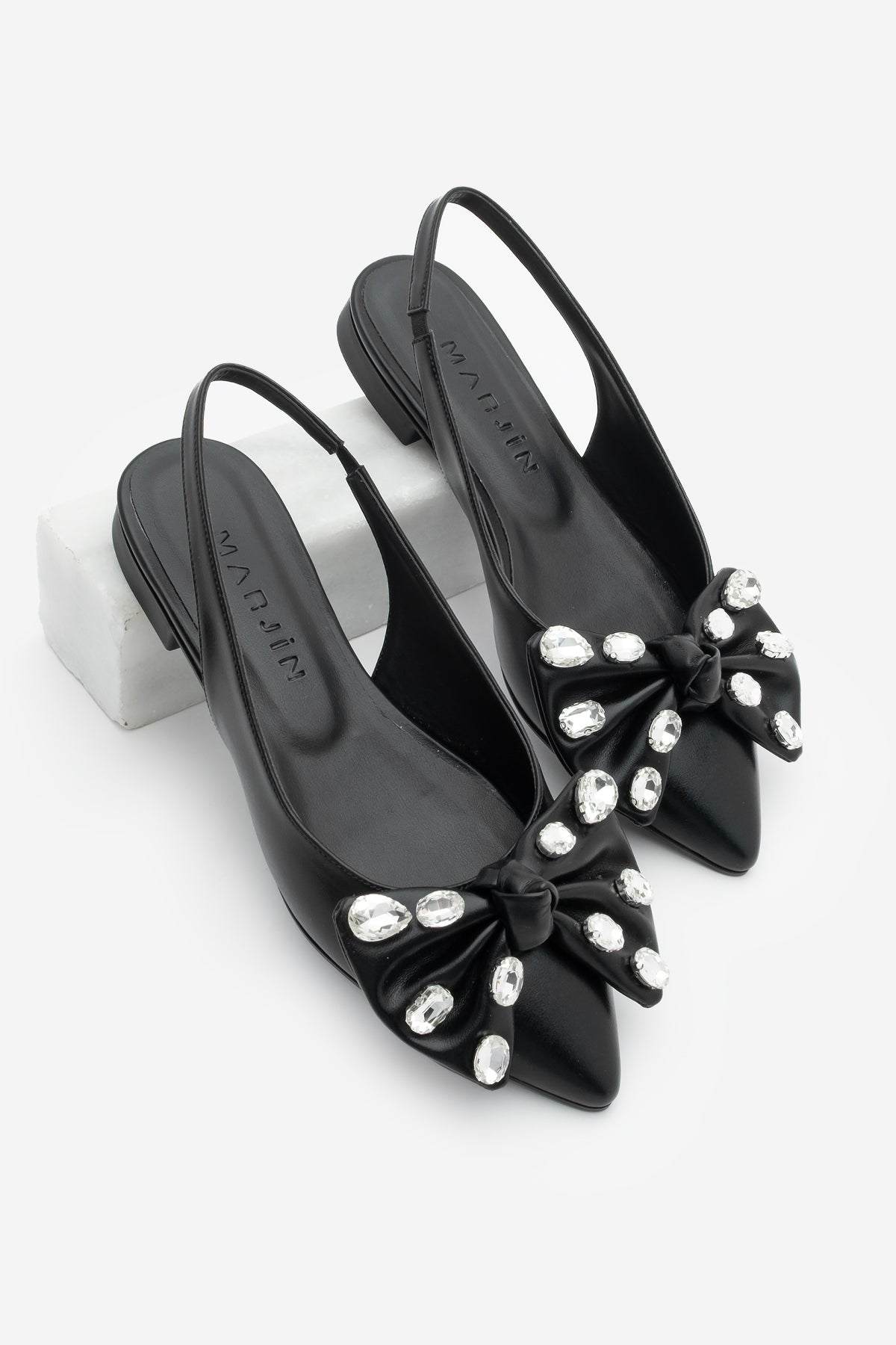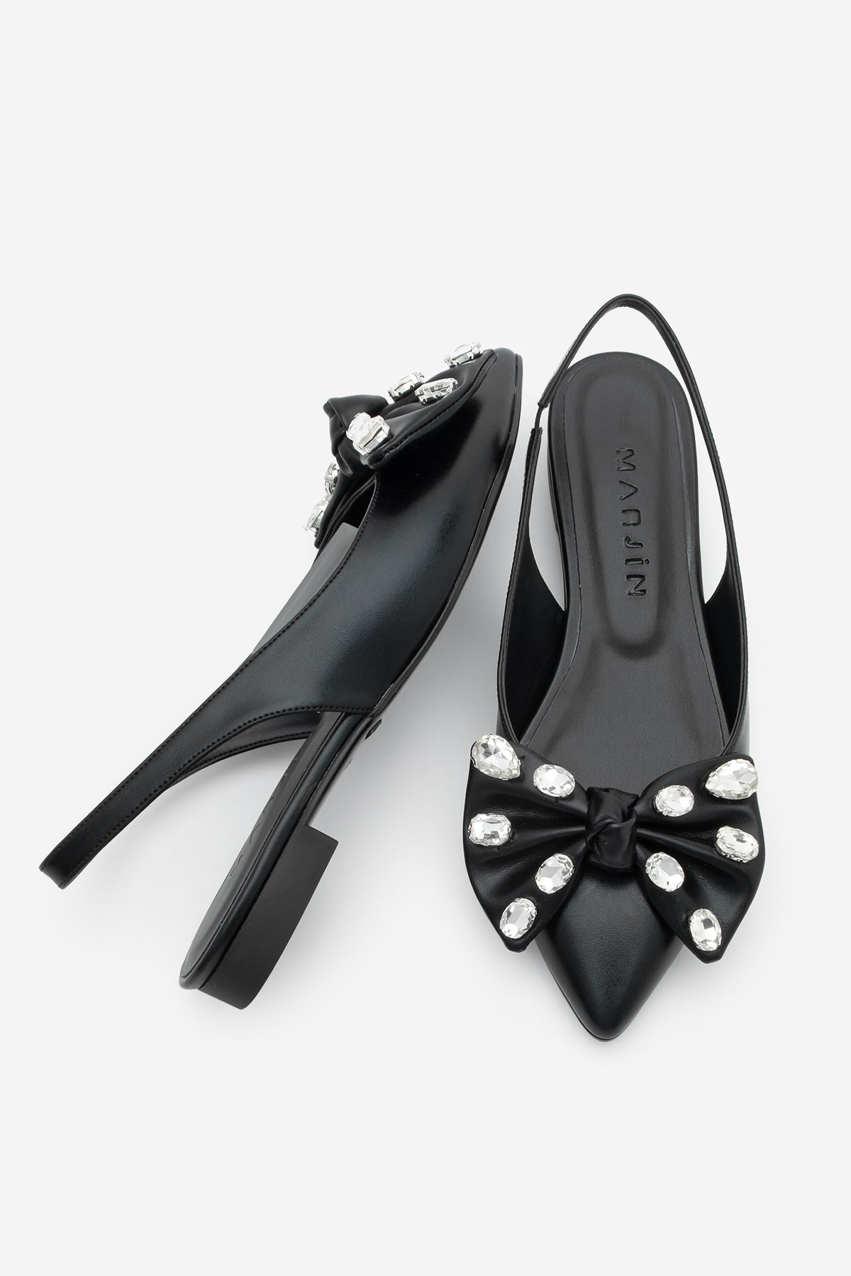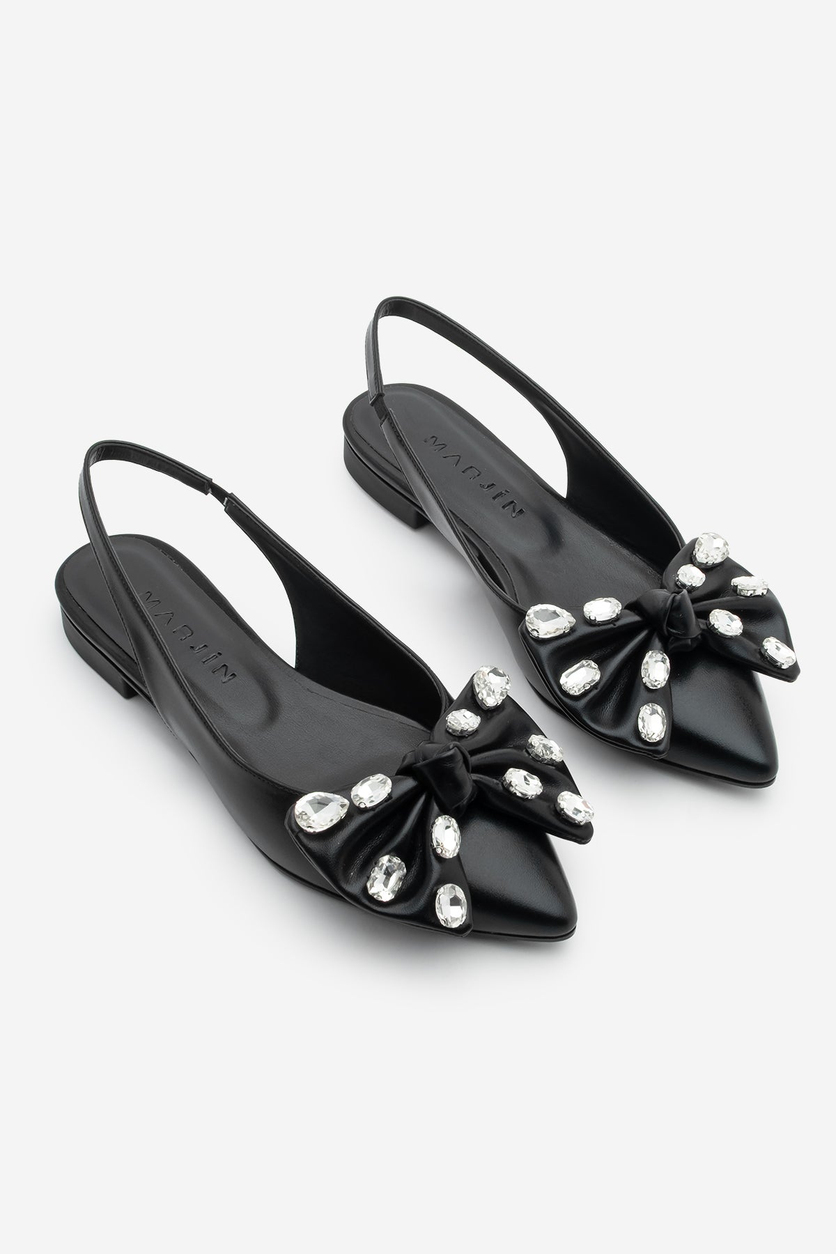 Kadın Sivri Burun Fiyonklu Taşlı Babet Lispen - Siyah