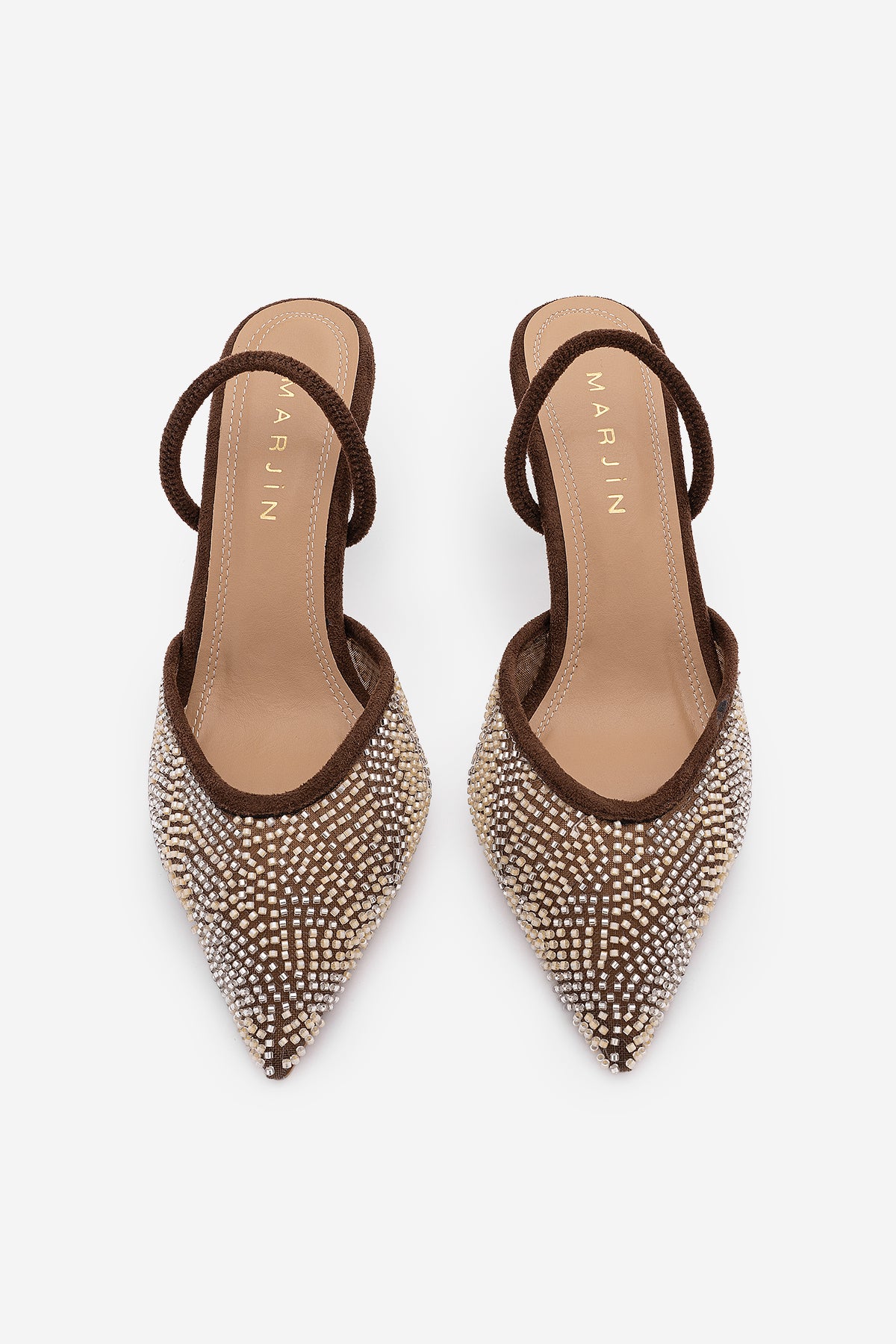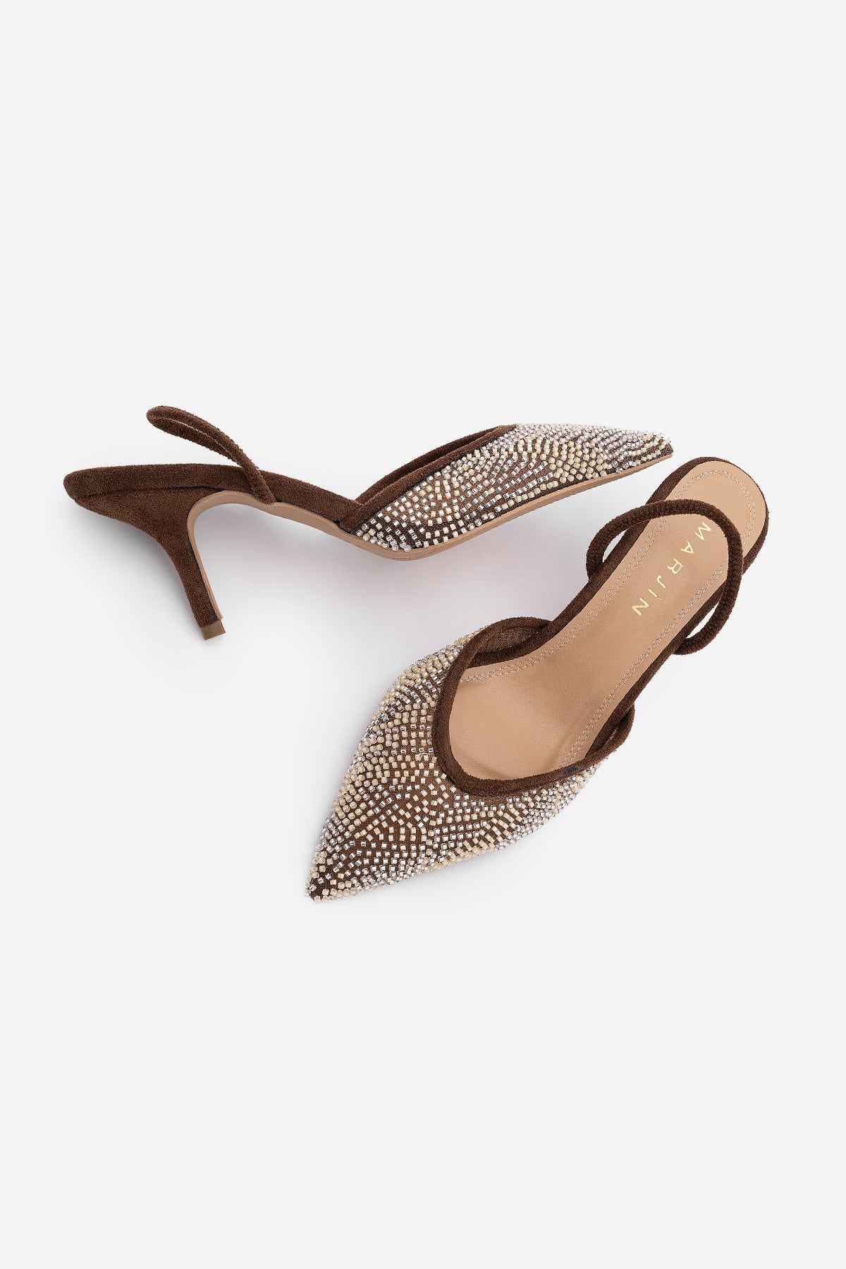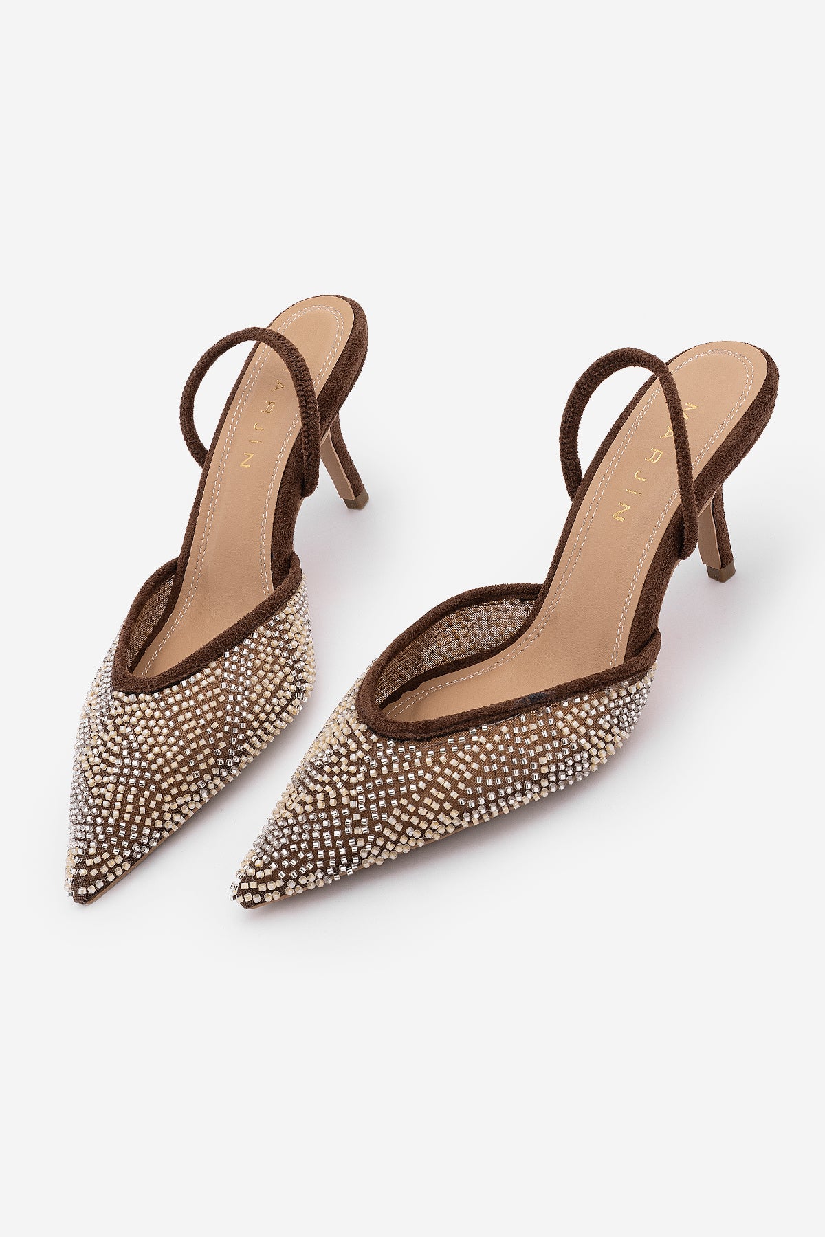Kadın Stiletto Boncuklu İşlemeli Fileli Klasik Topuklu Ayakkabı Morose - Kahve Süet
