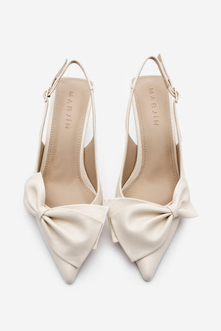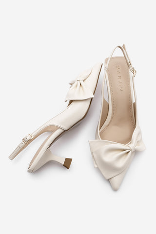 Kadın Stiletto Fiyonklu Topuklu Ayakkabı Fivas - Ekru