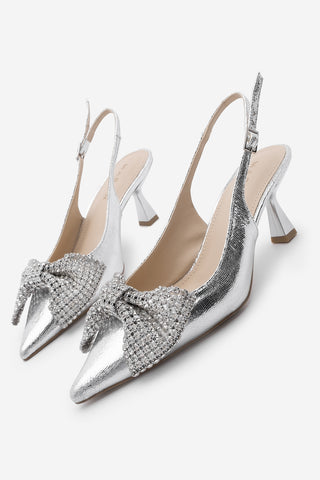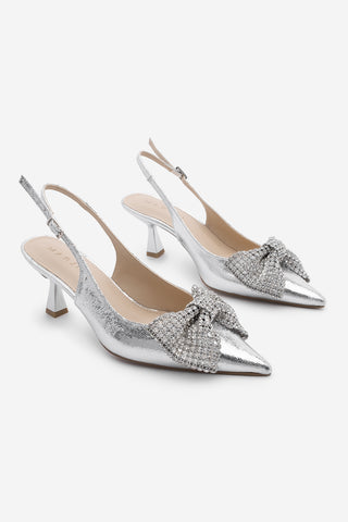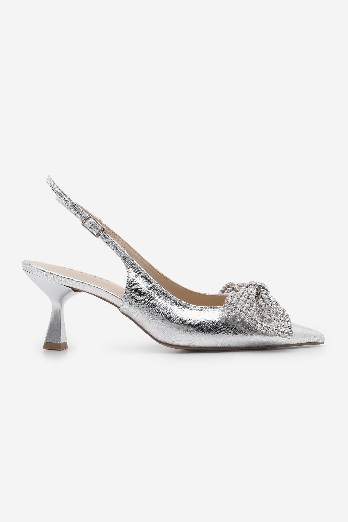 Kadın Stiletto Fiyonklu Topuklu Ayakkabı Lupeni - Gümüş