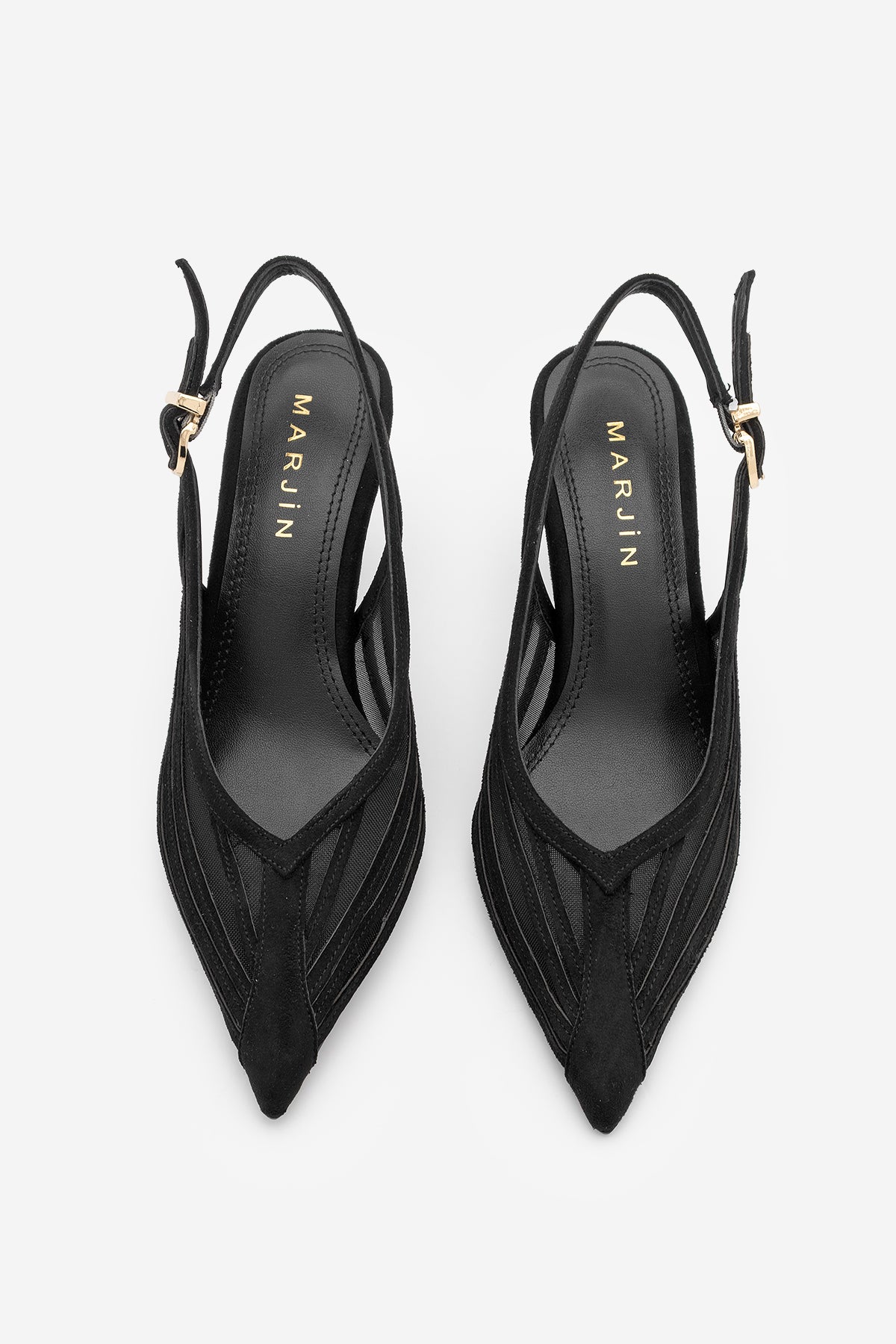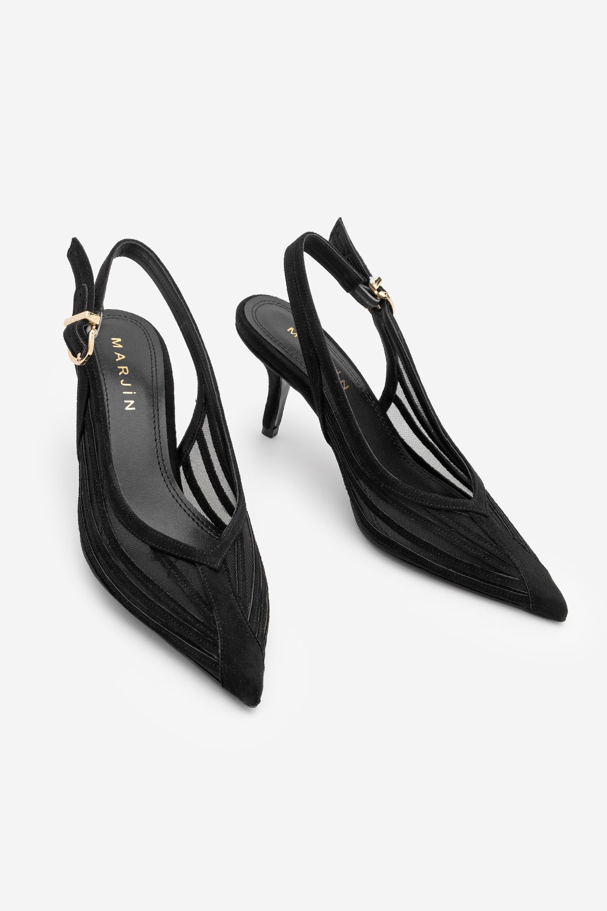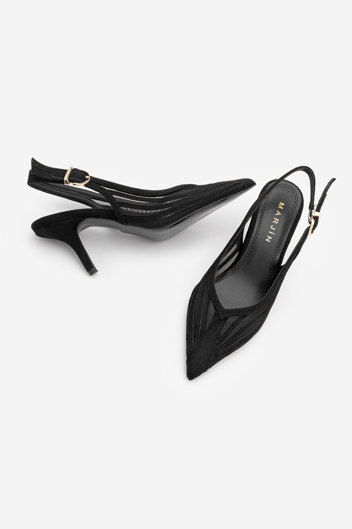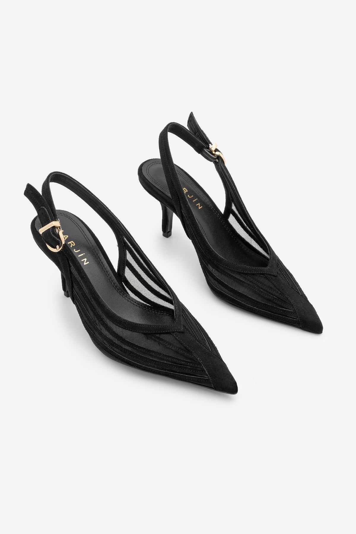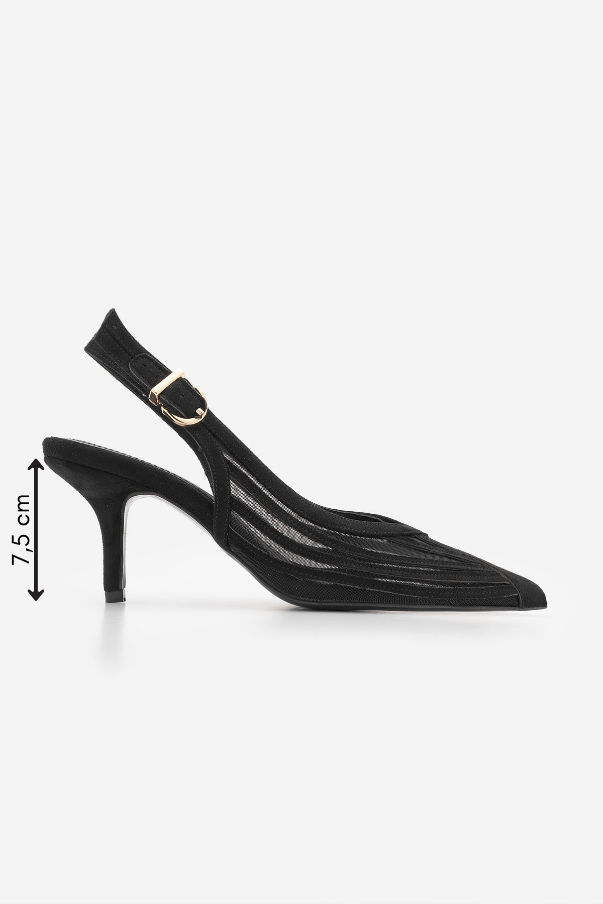 Kadın Stiletto Şeritli Fileli Klasik Topuklu Ayakkabı Vimola - Siyah Süet
