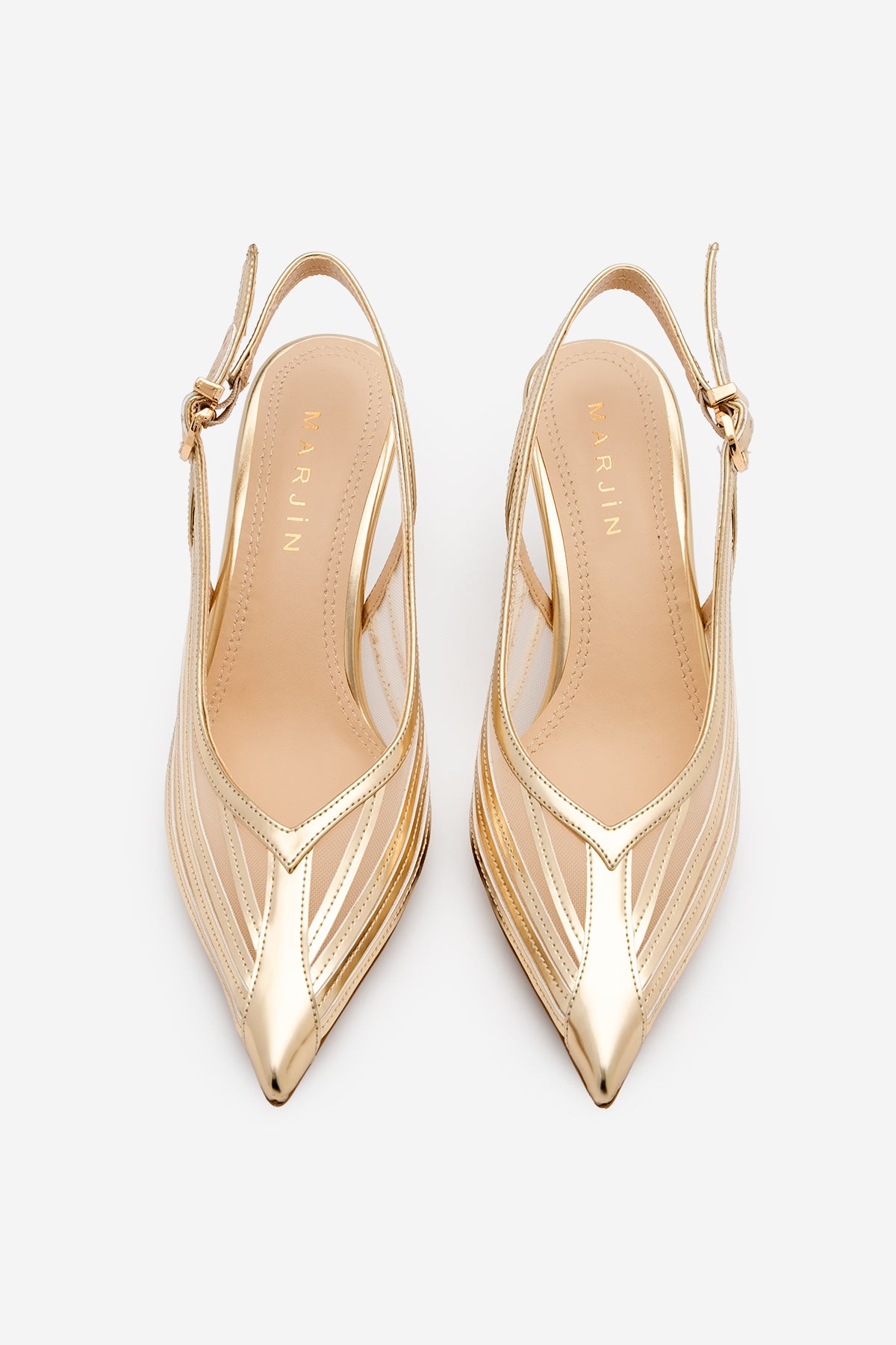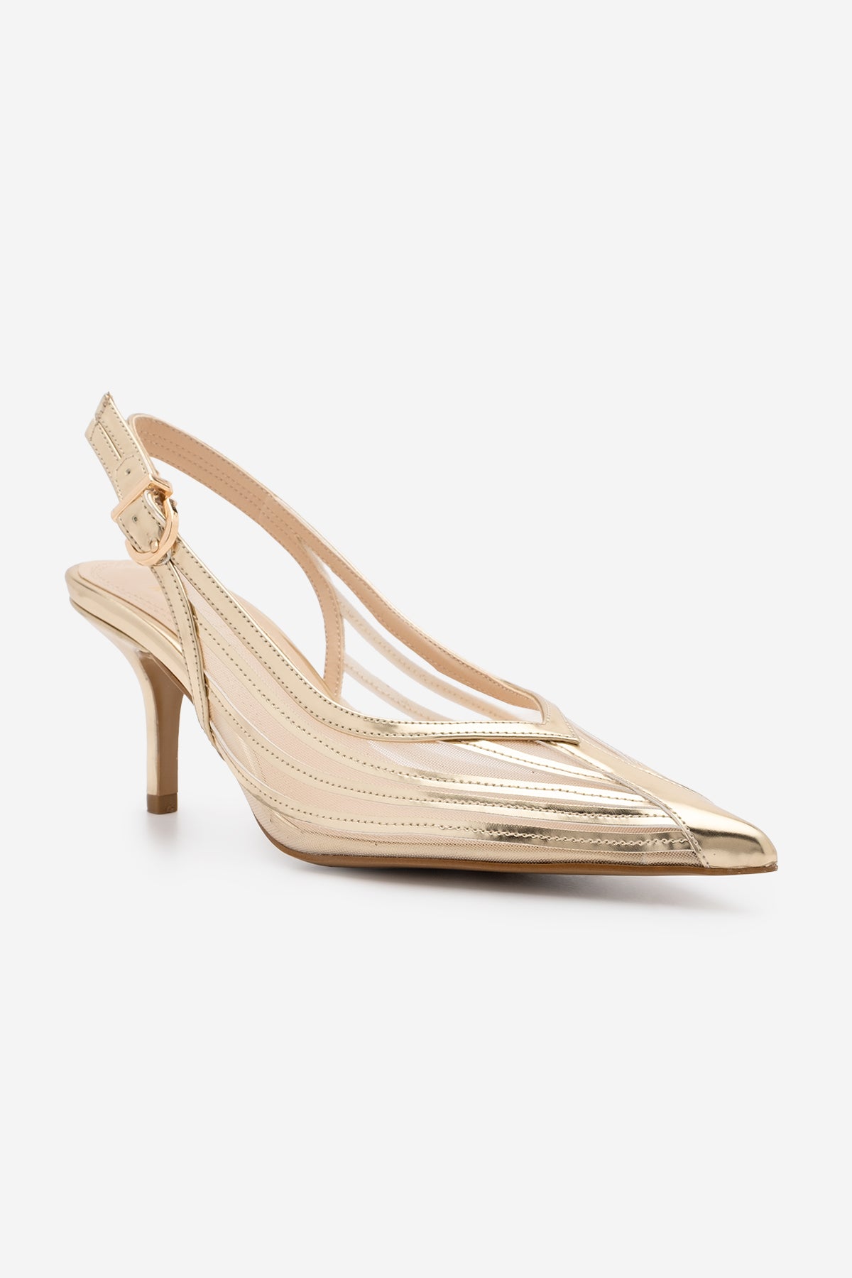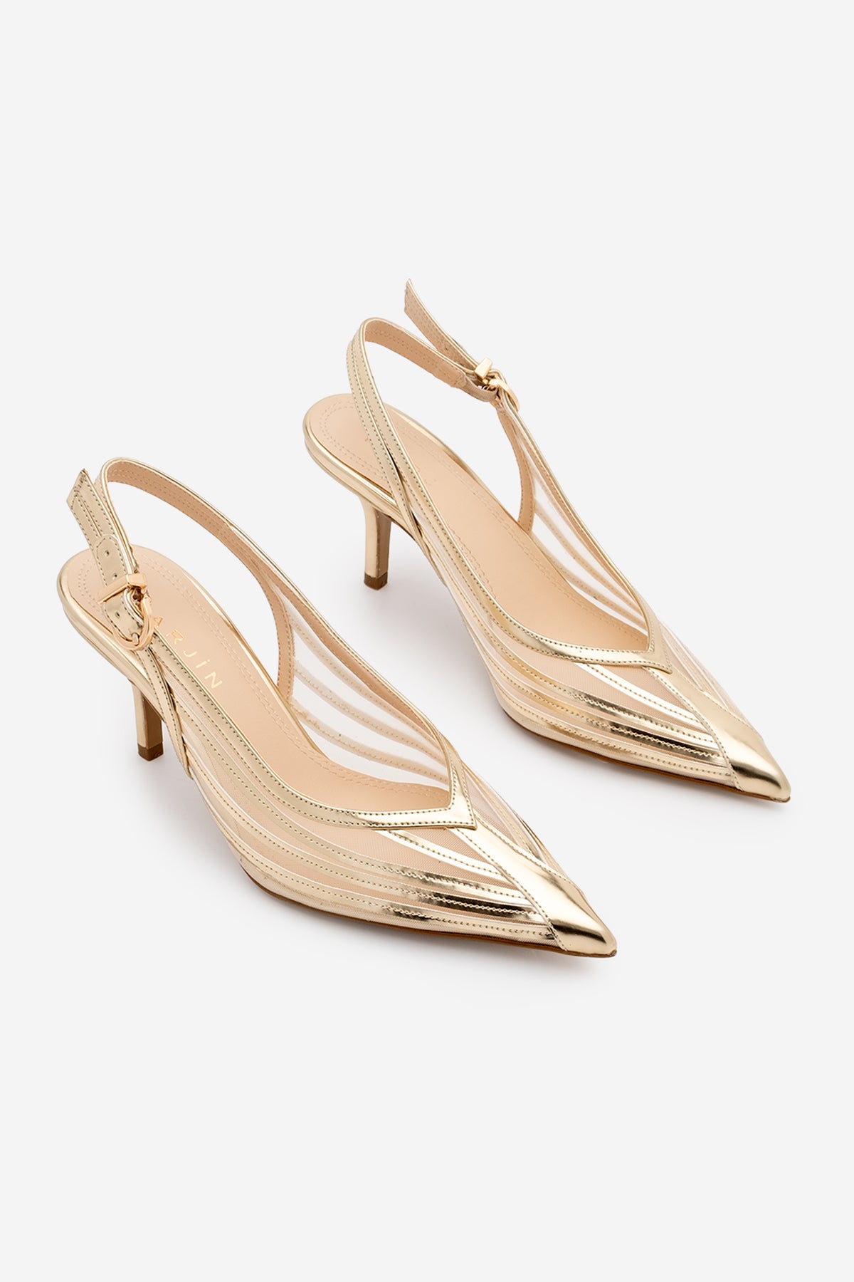 Kadın Stiletto Şeritli Fileli Topuklu Ayakkabı Vimola - Altın