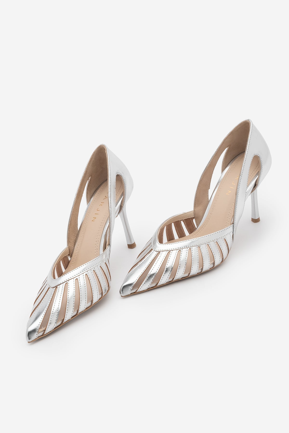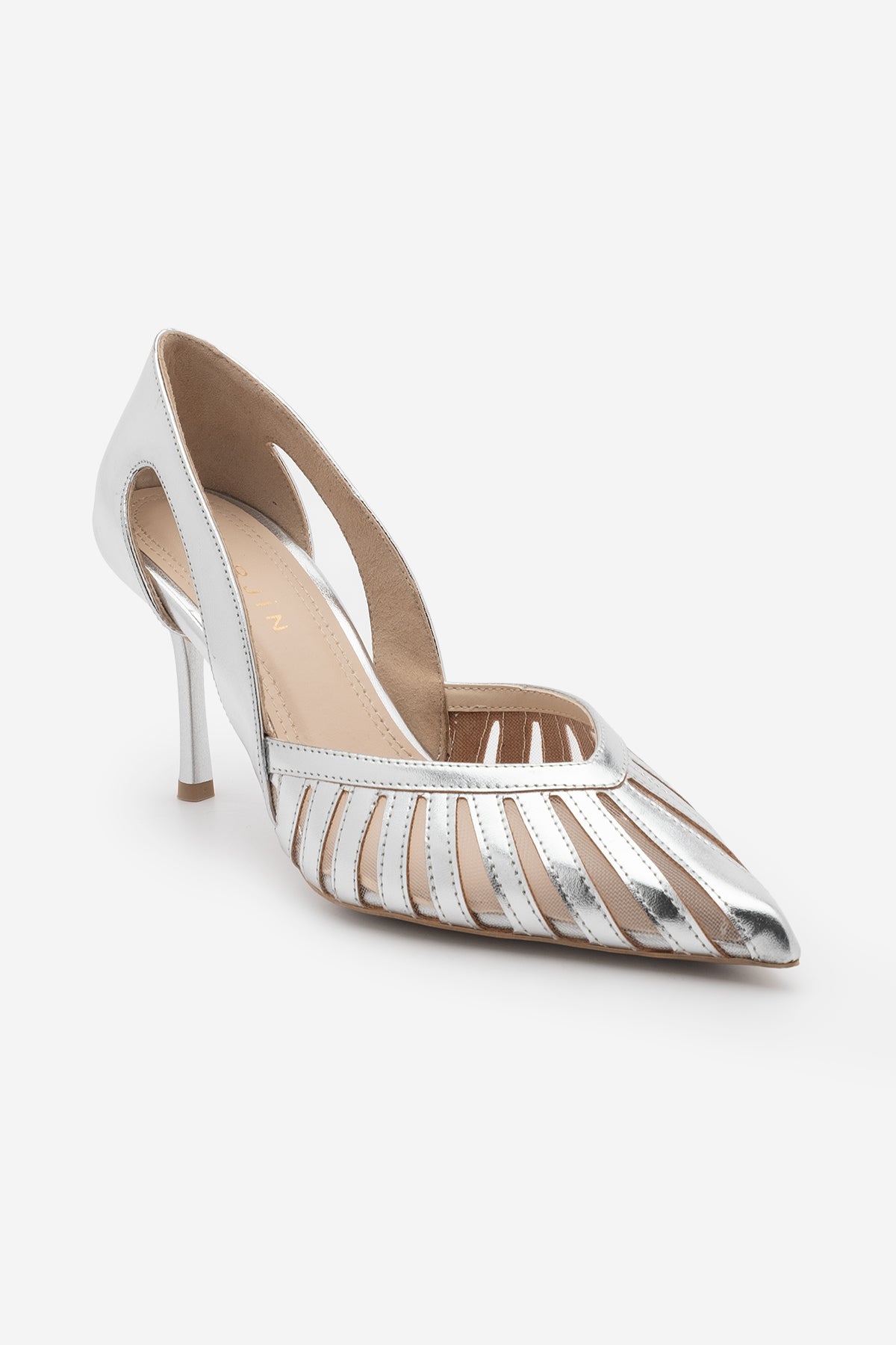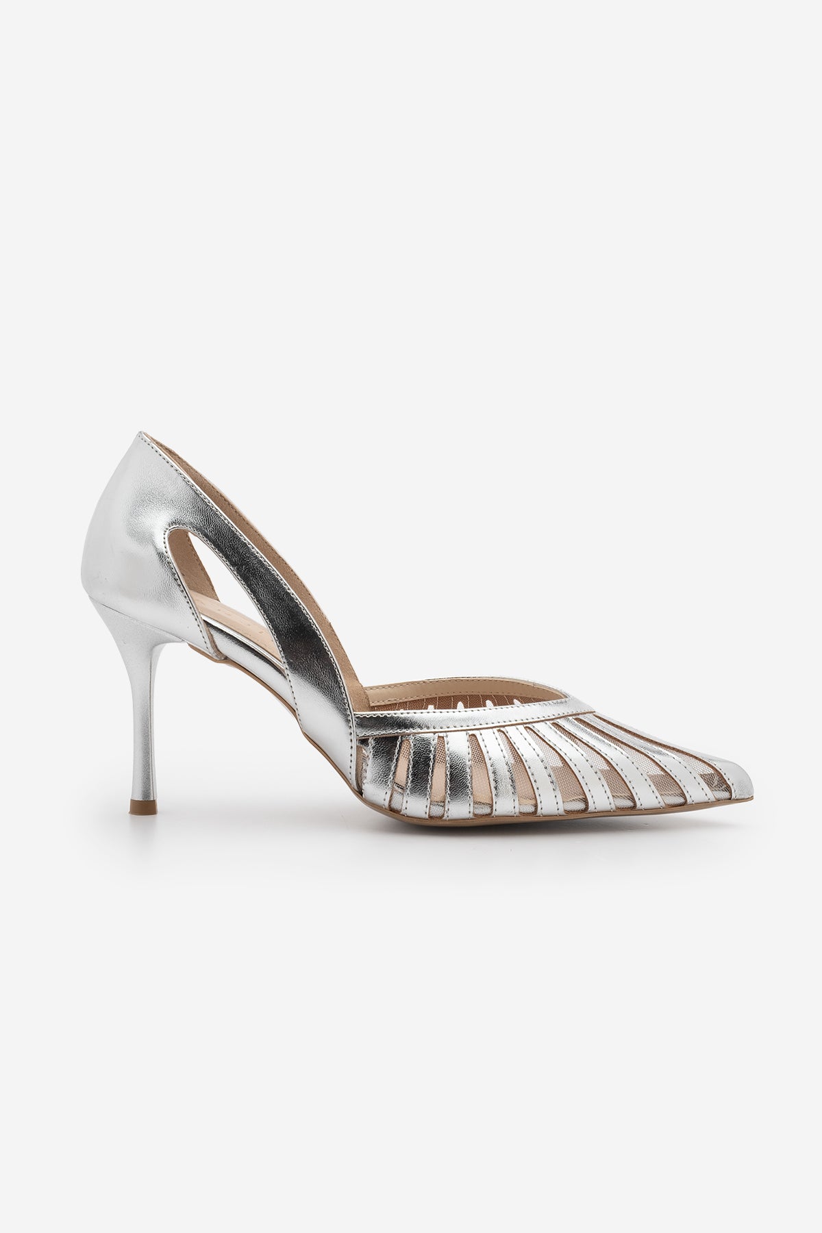 Kadın Stiletto Sivri Burun Fileli Klasik Topuklu Ayakkabı Koriva - Gümüş