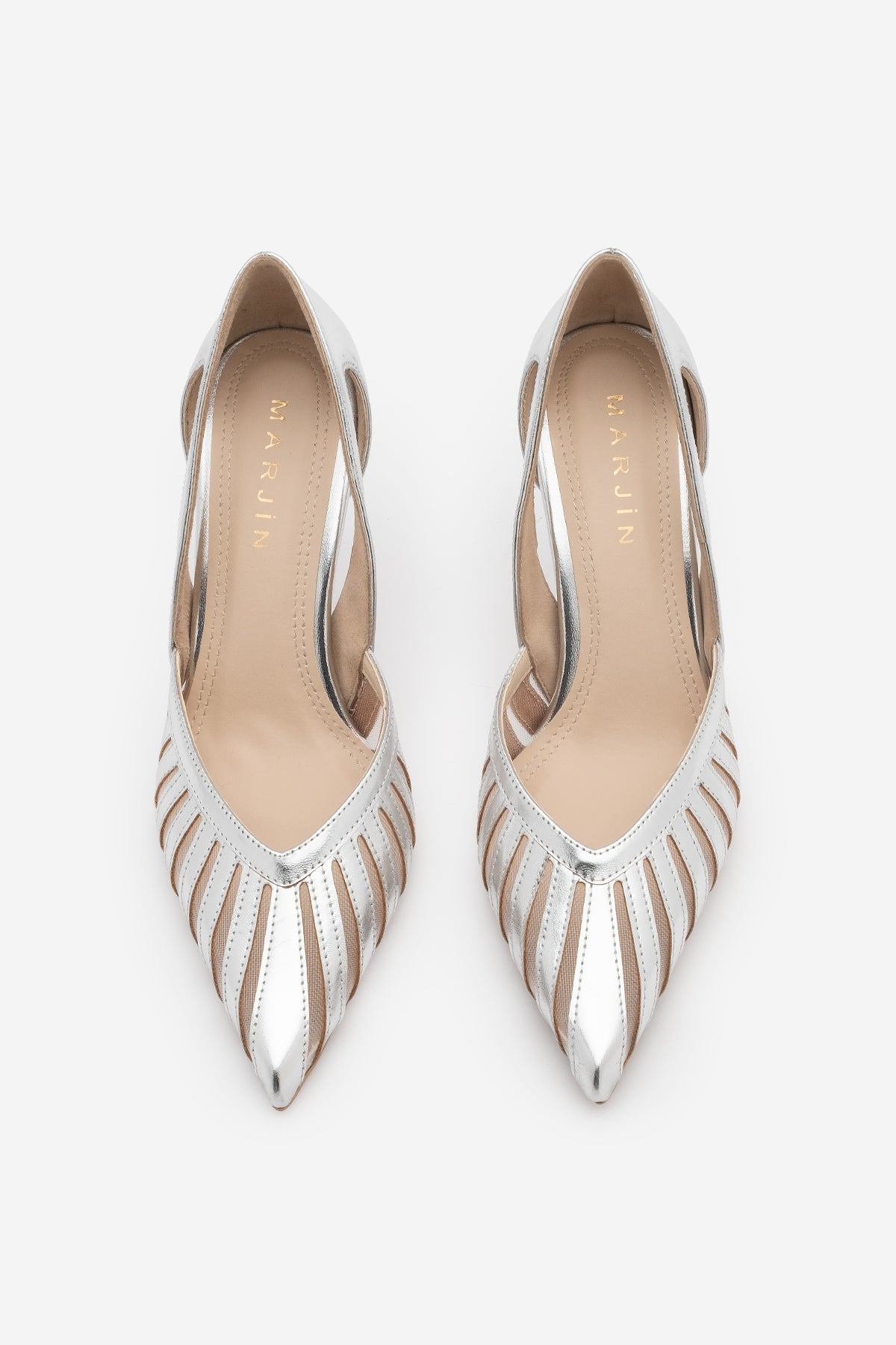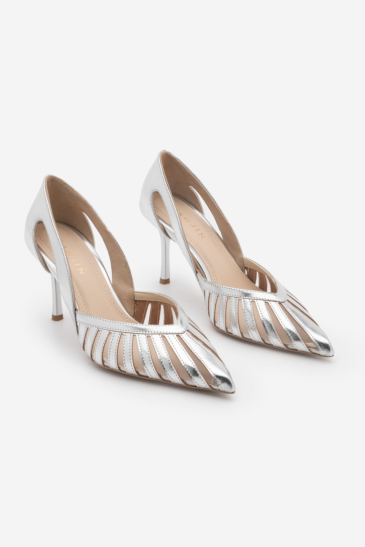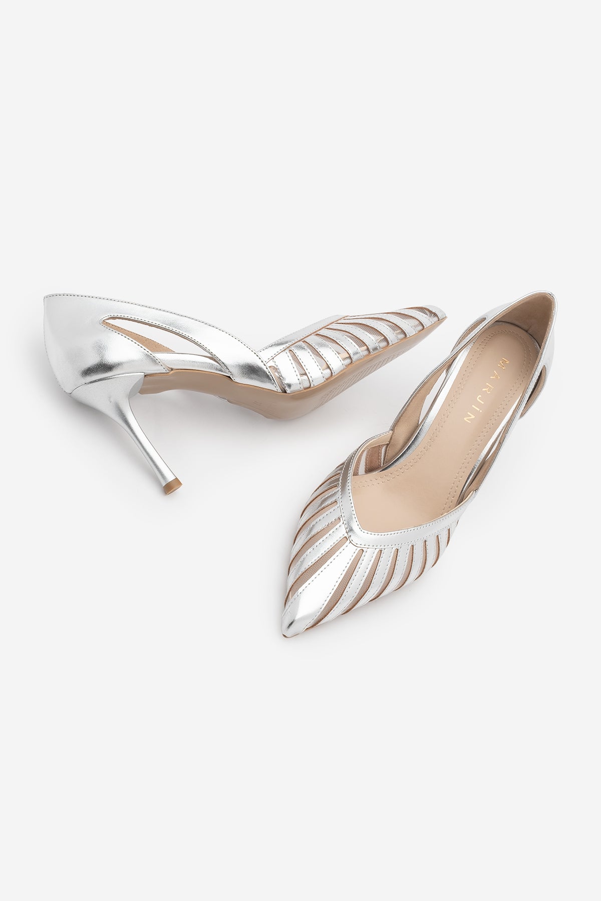 Kadın Stiletto Sivri Burun Fileli Klasik Topuklu Ayakkabı Koriva - Gümüş