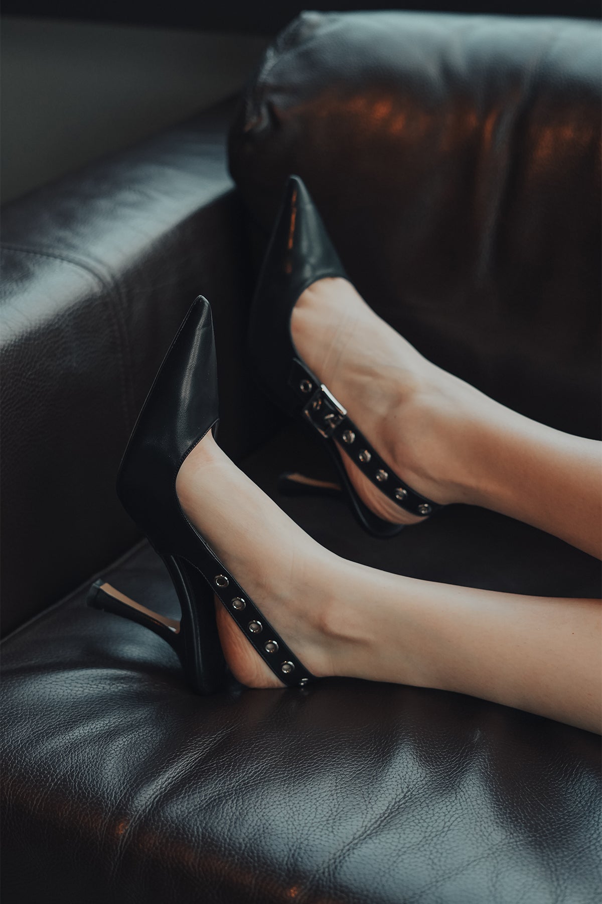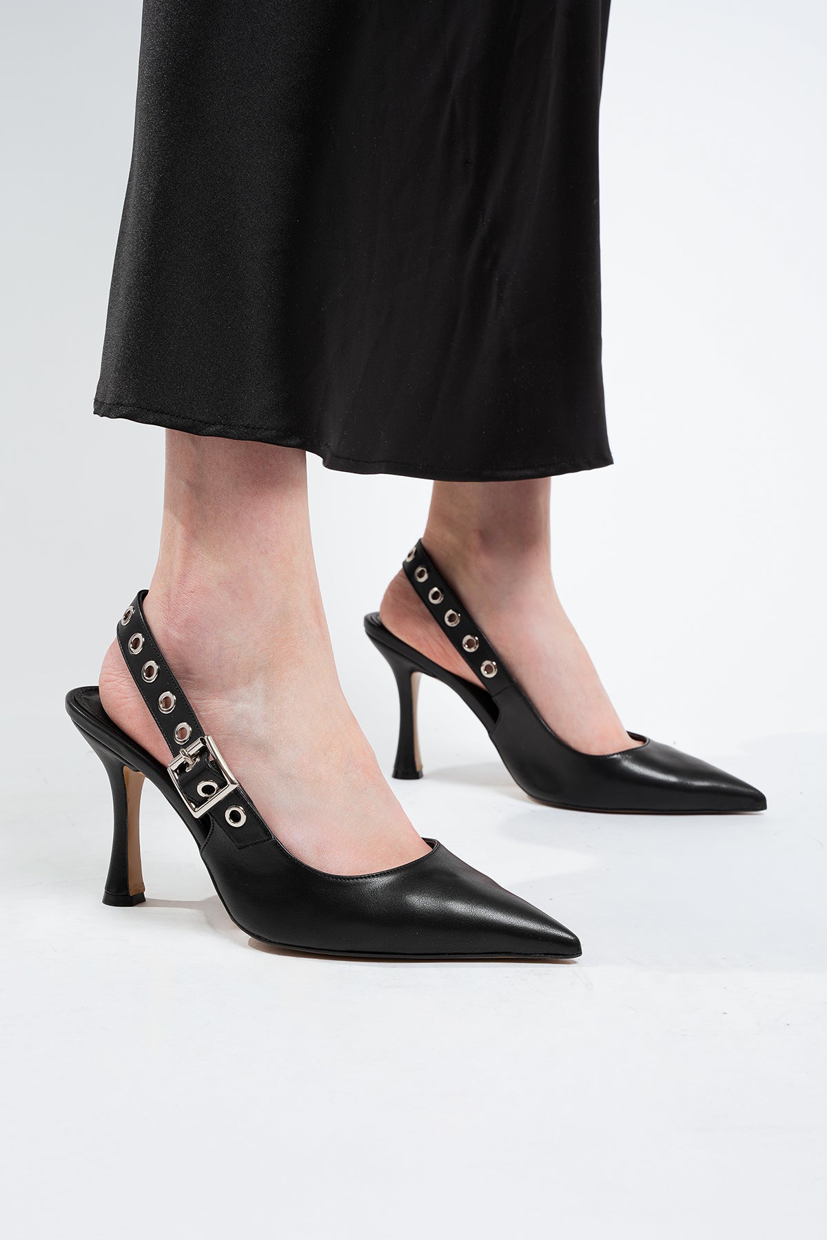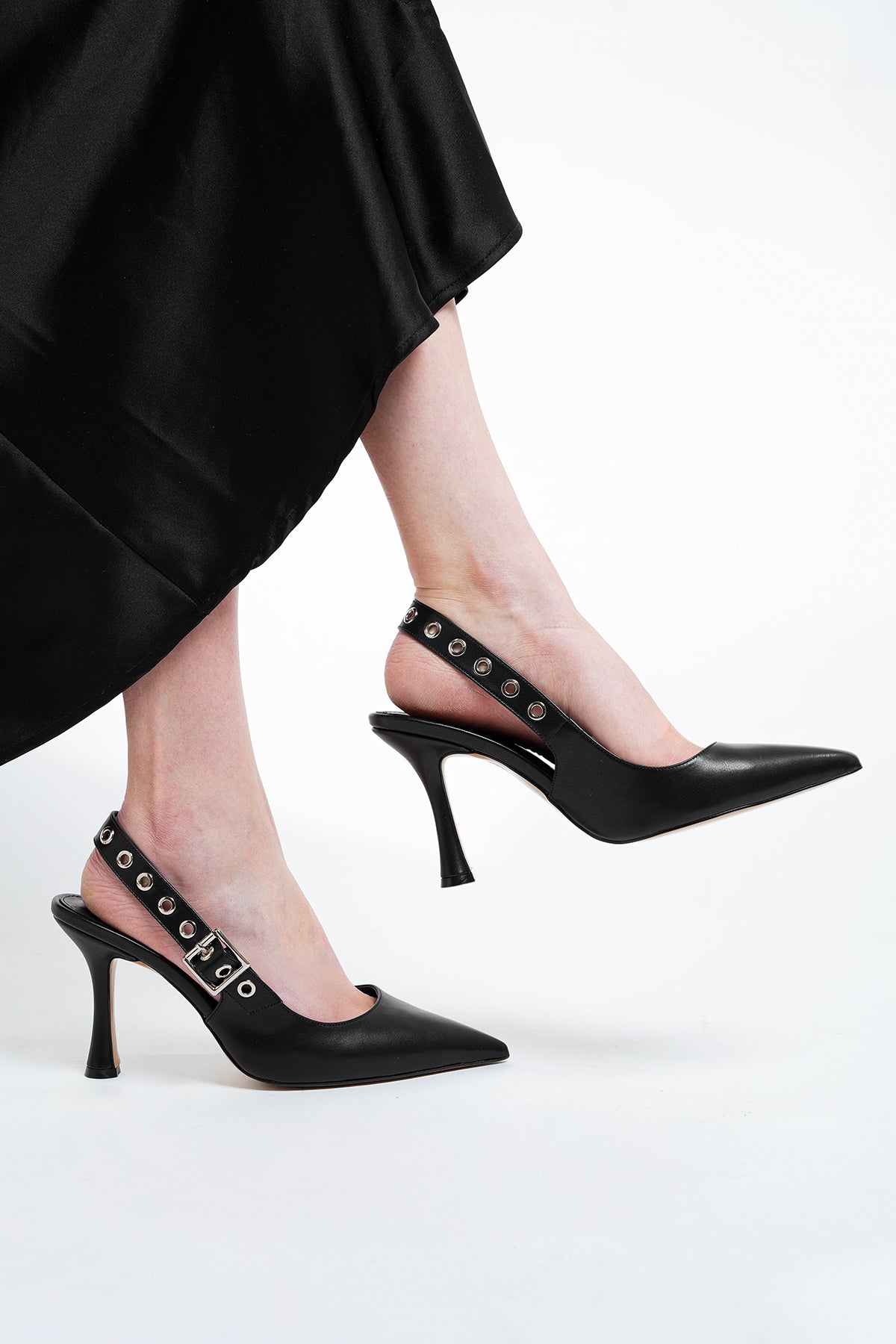 Kadın Stiletto Troklu Topuklu Ayakkabı Ragon - Siyah