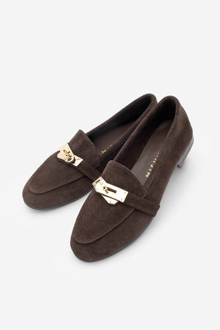 Kadın Loafer Hakiki Deri Tokalı Günlük Ayakkabı Nador - Kahve Süet