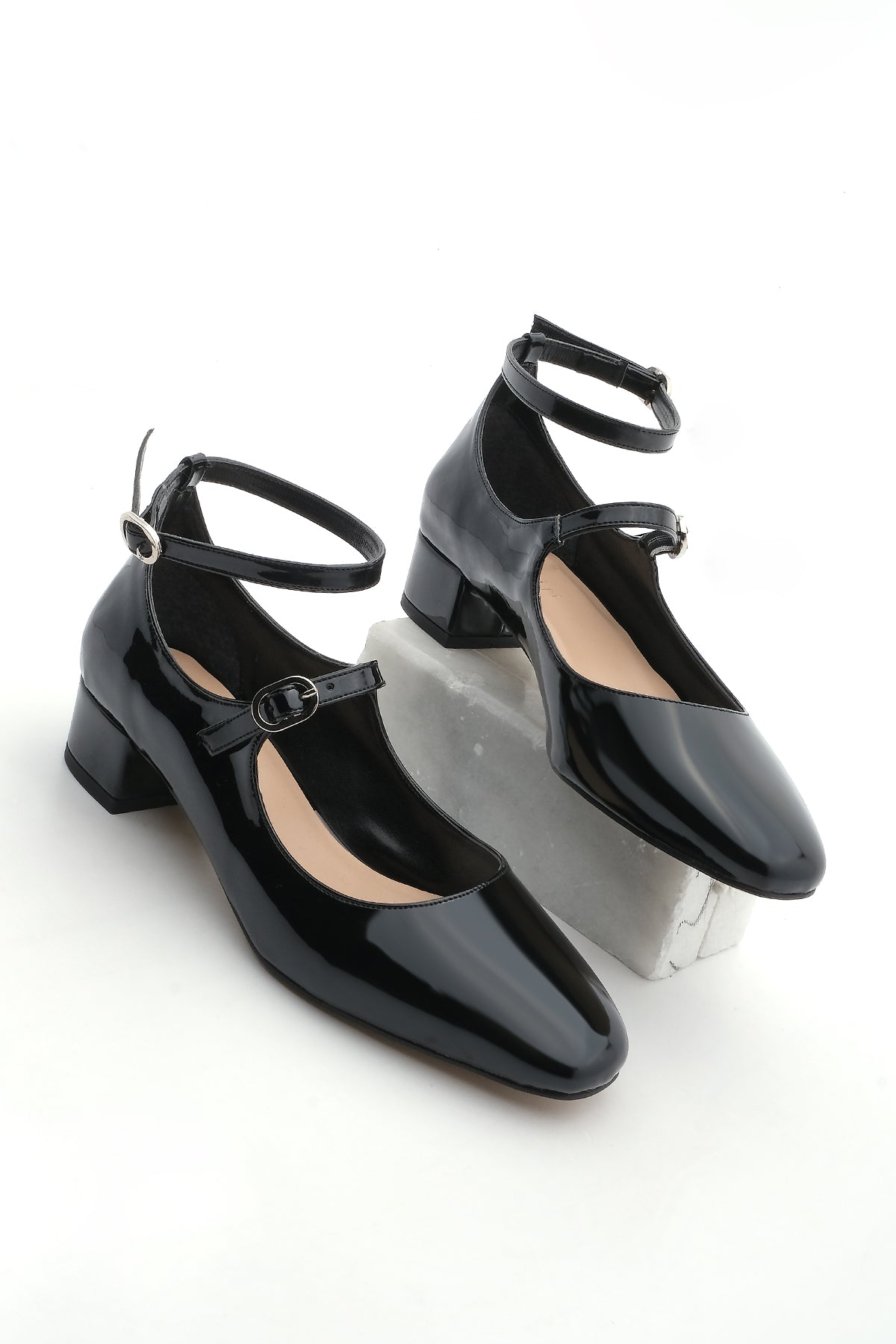 Kadın Bantlı Klasik Topuklu Ayakkabı Arbe - Siyah Rugan