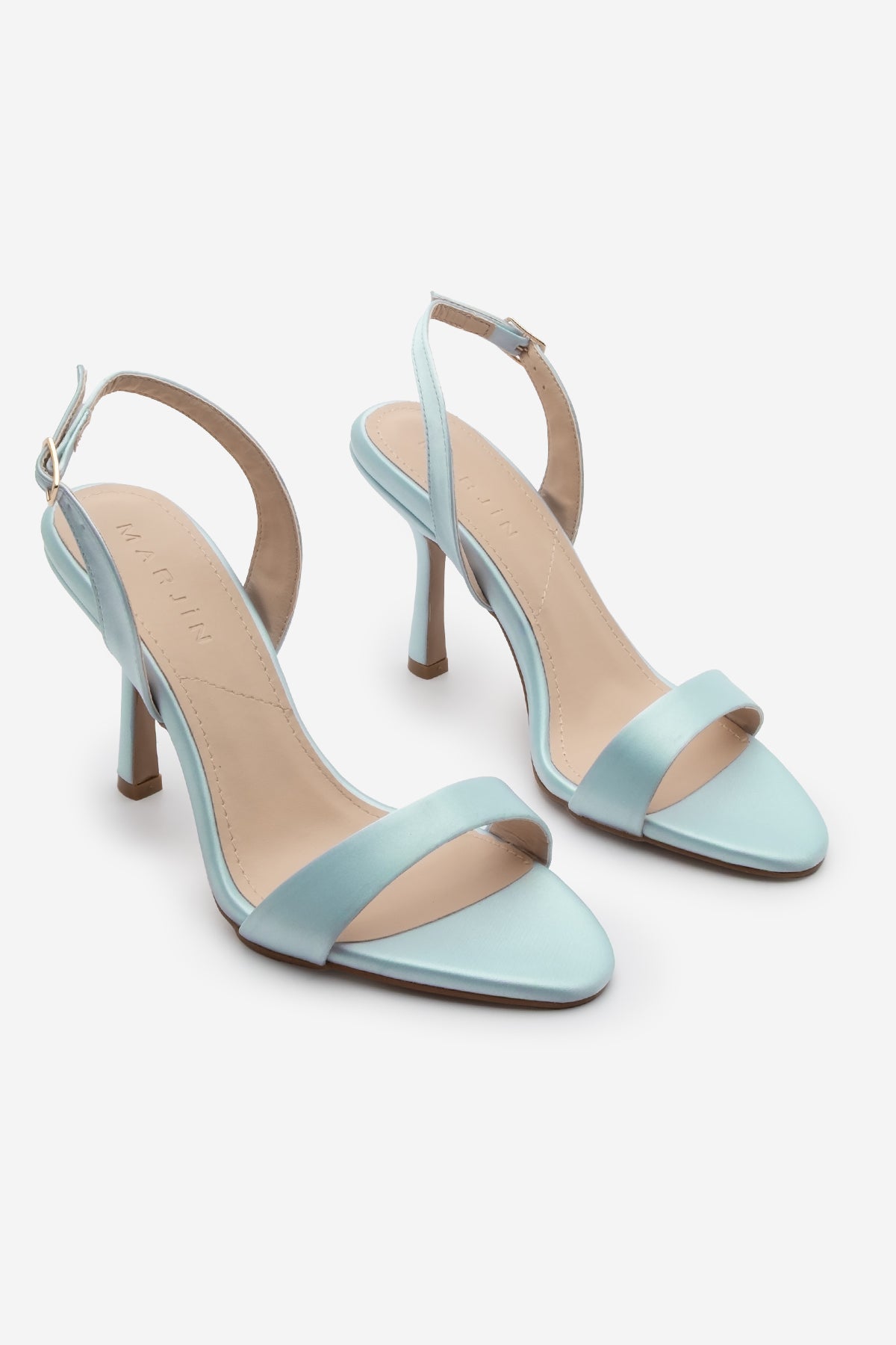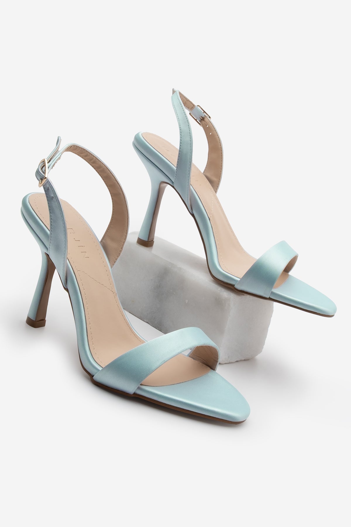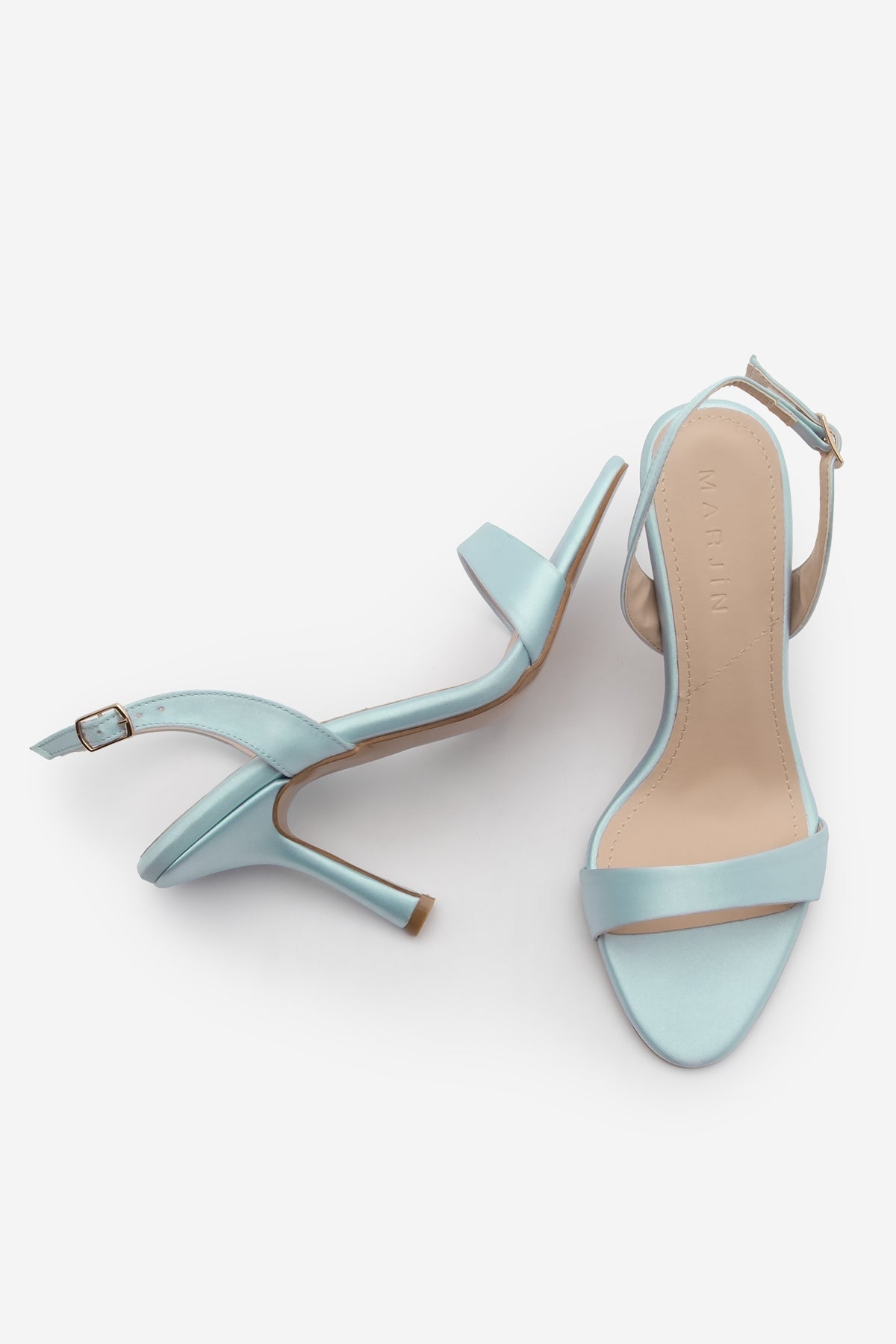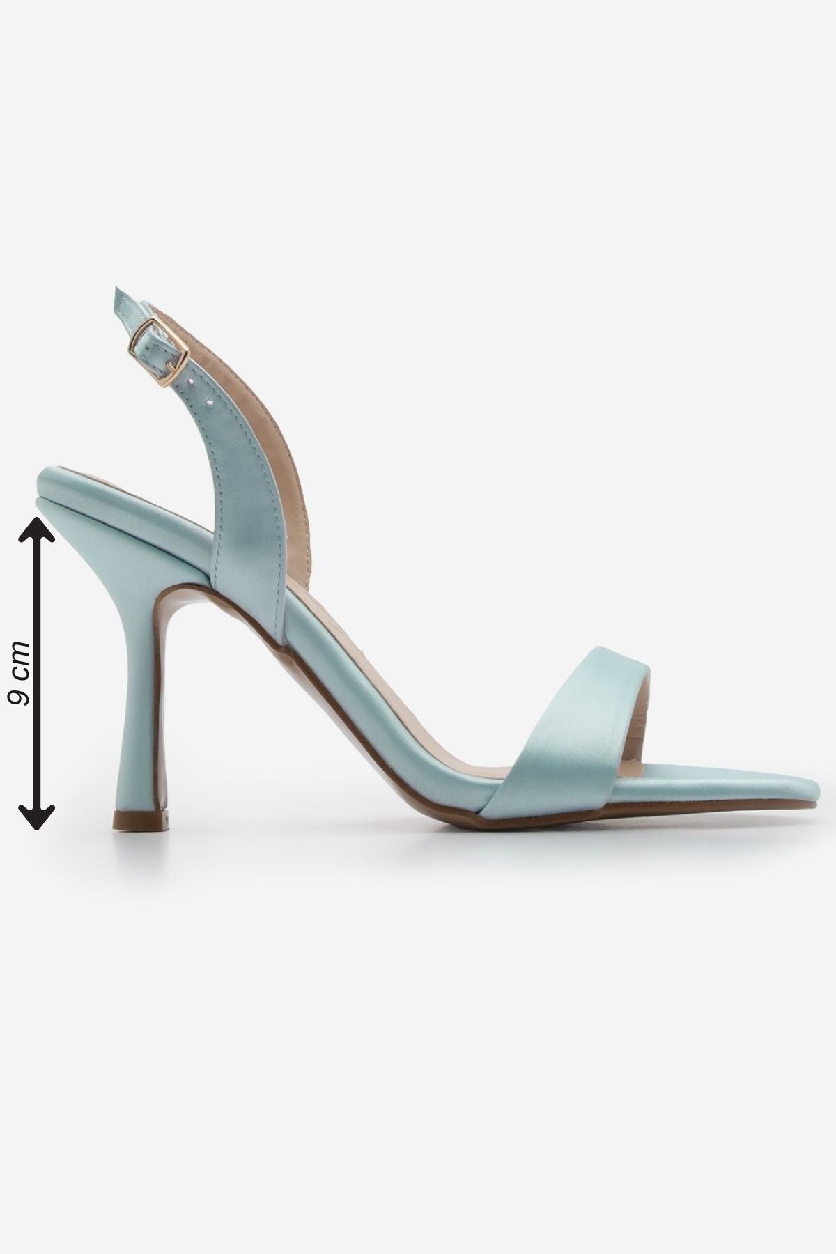 Kadın Bantlı Topuklu Sandalet Faldi - Mavi Saten