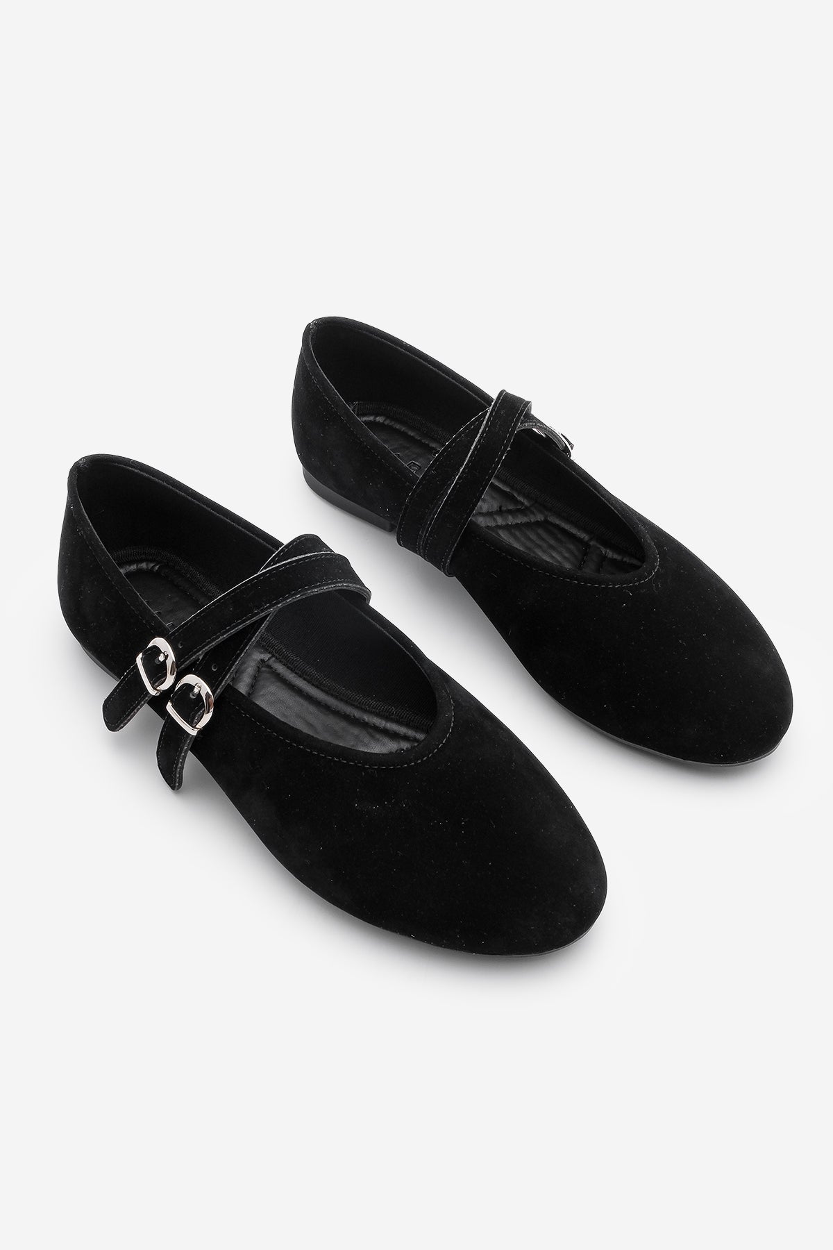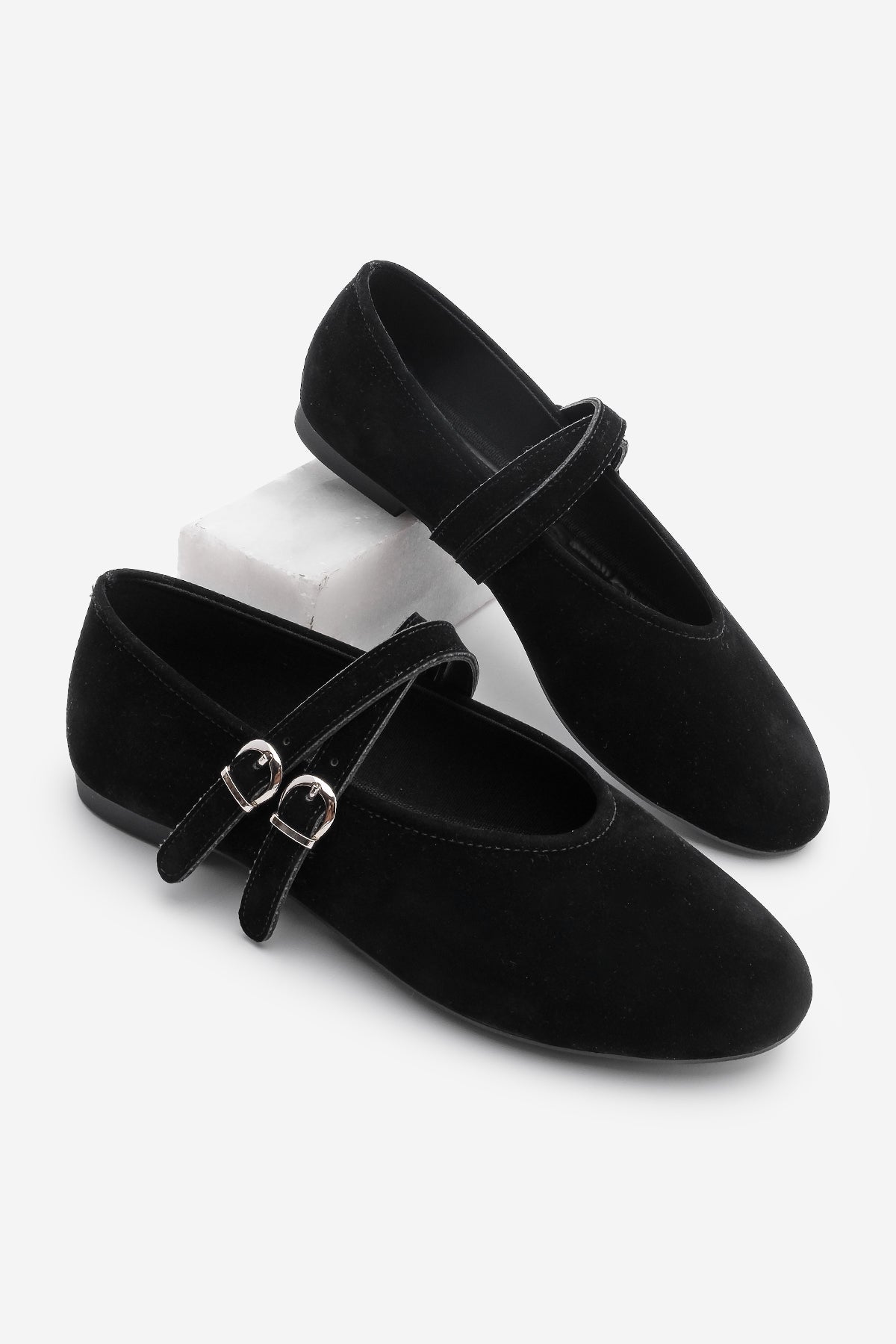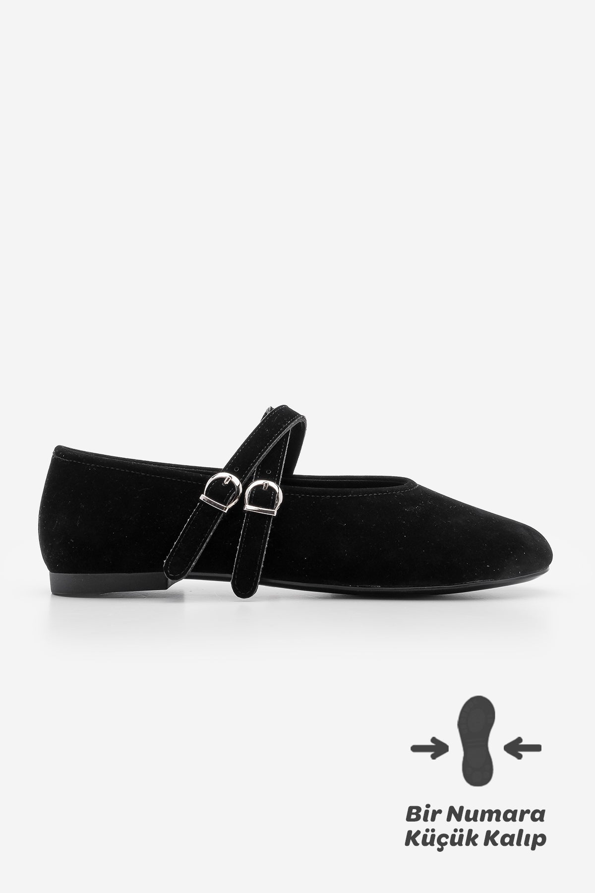 Kadın Çapraz Bantlı Babet Niroza - Siyah Süet