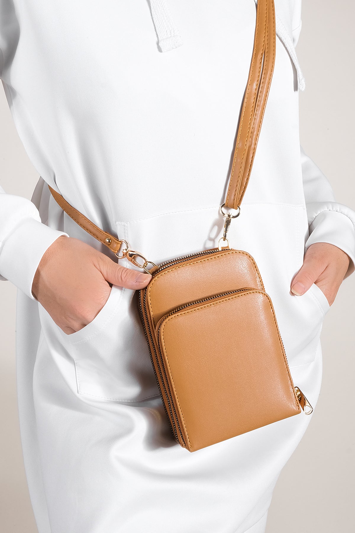 Kadın Cüzdan Tasarımlı Postacı Çantası Lariva - Camel