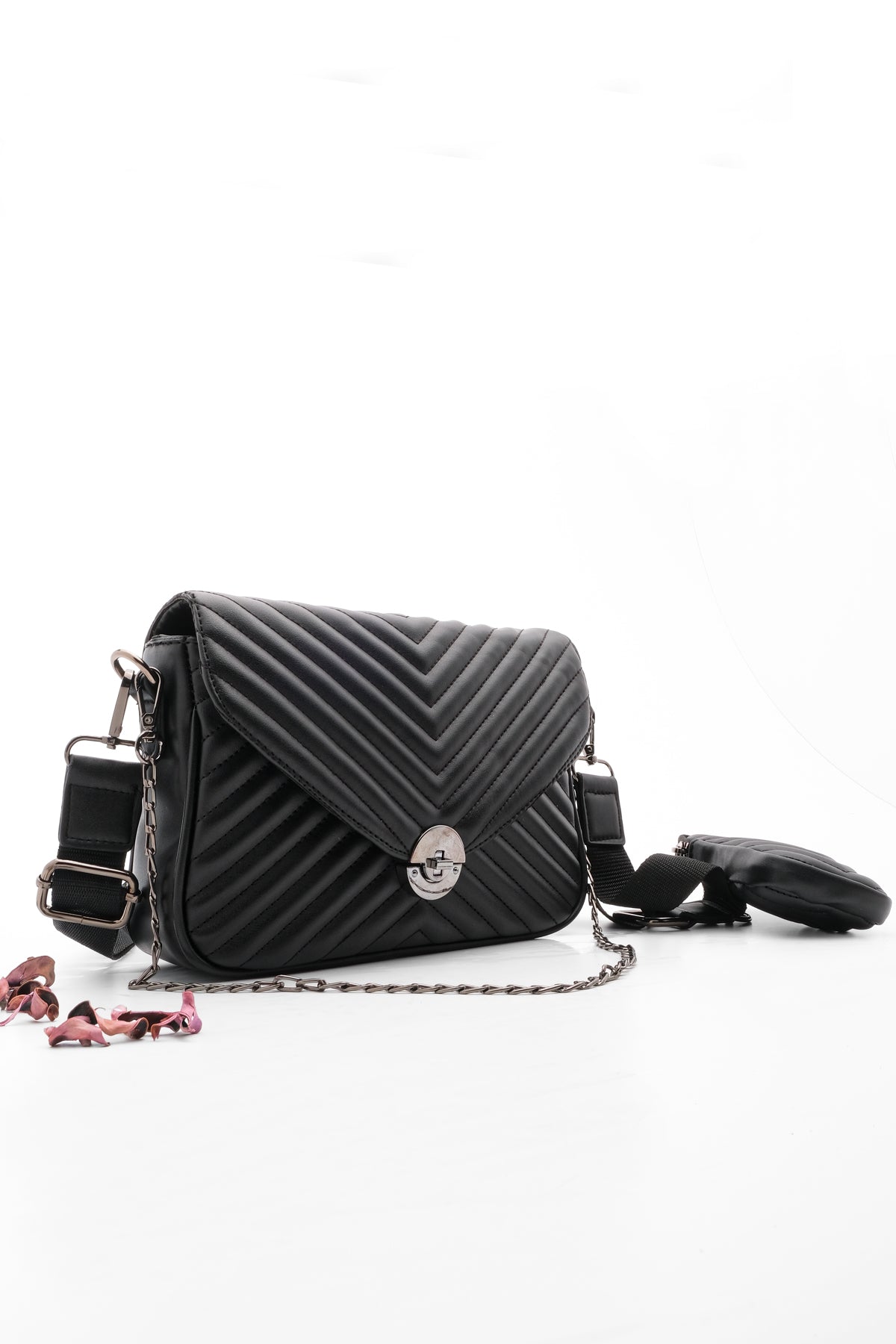 Kadın Cüzdanlı Postacı Çantası Tevira - Siyah