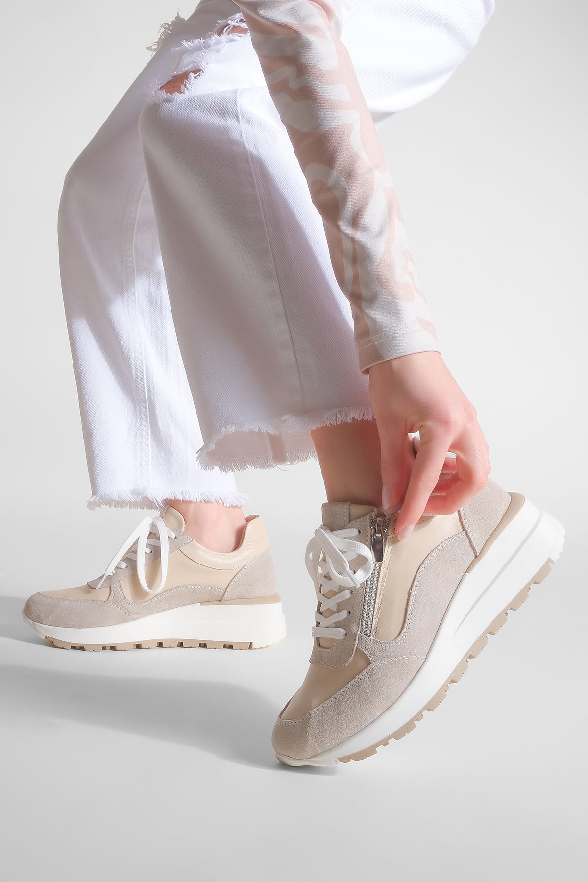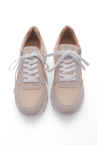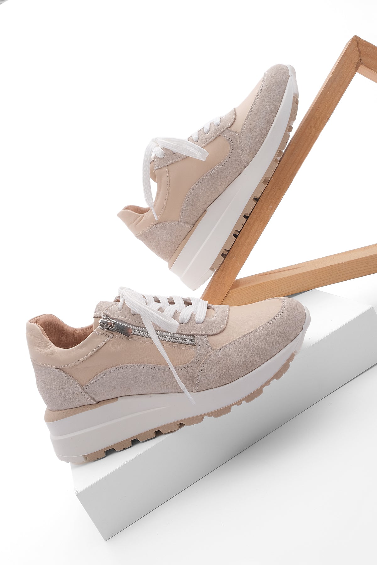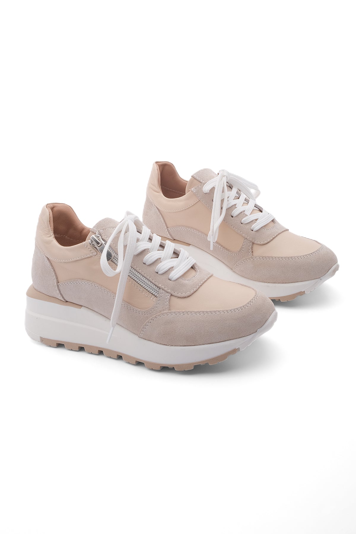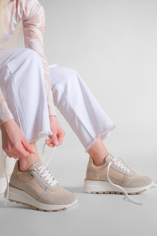 Kadın Dolgu Topuk Sneaker Hakiki Deri Spor Ayakkabı Loren - Bej