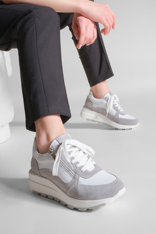 Kadın Dolgu Topuk Sneaker Hakiki Deri Spor Ayakkabı Loren - Gri