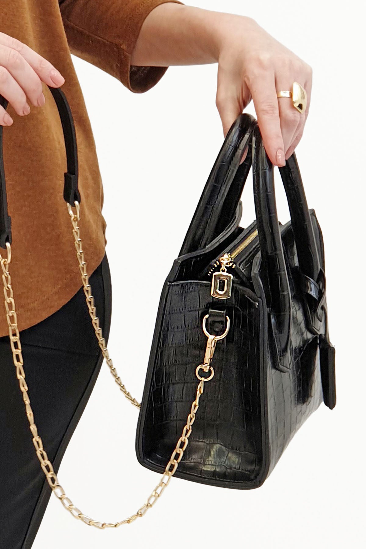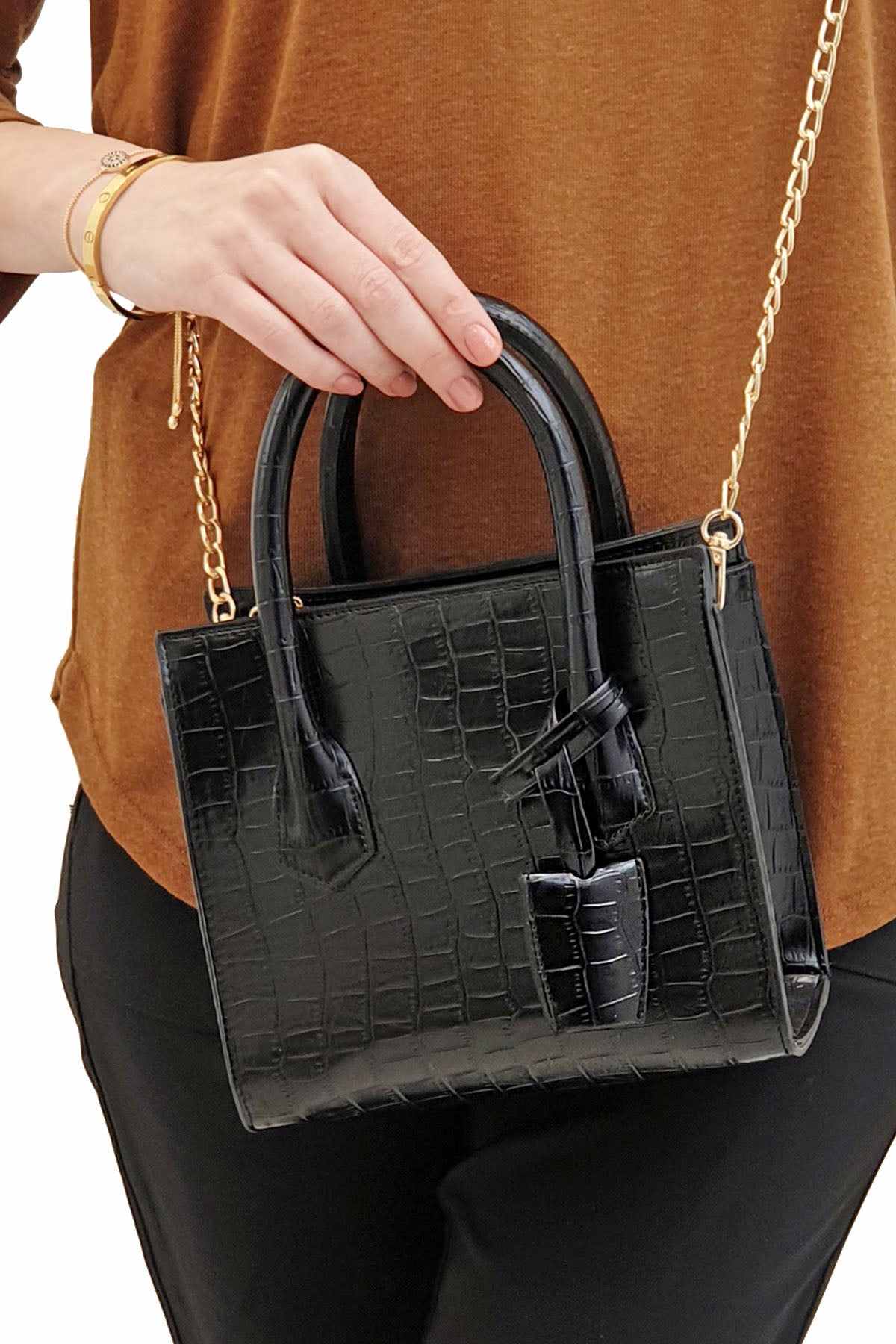 Kadın El Çantası Mirole - Siyah Croco