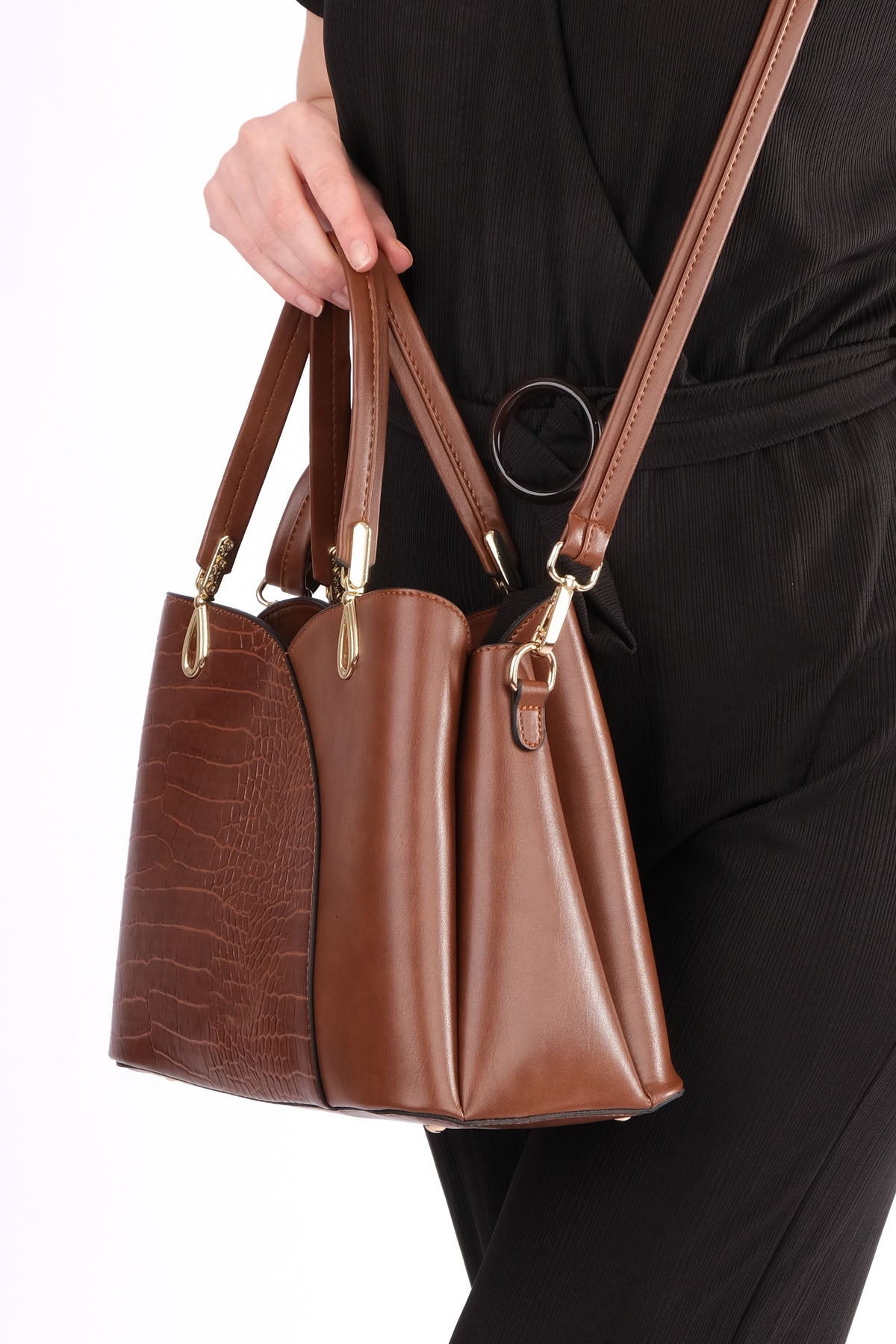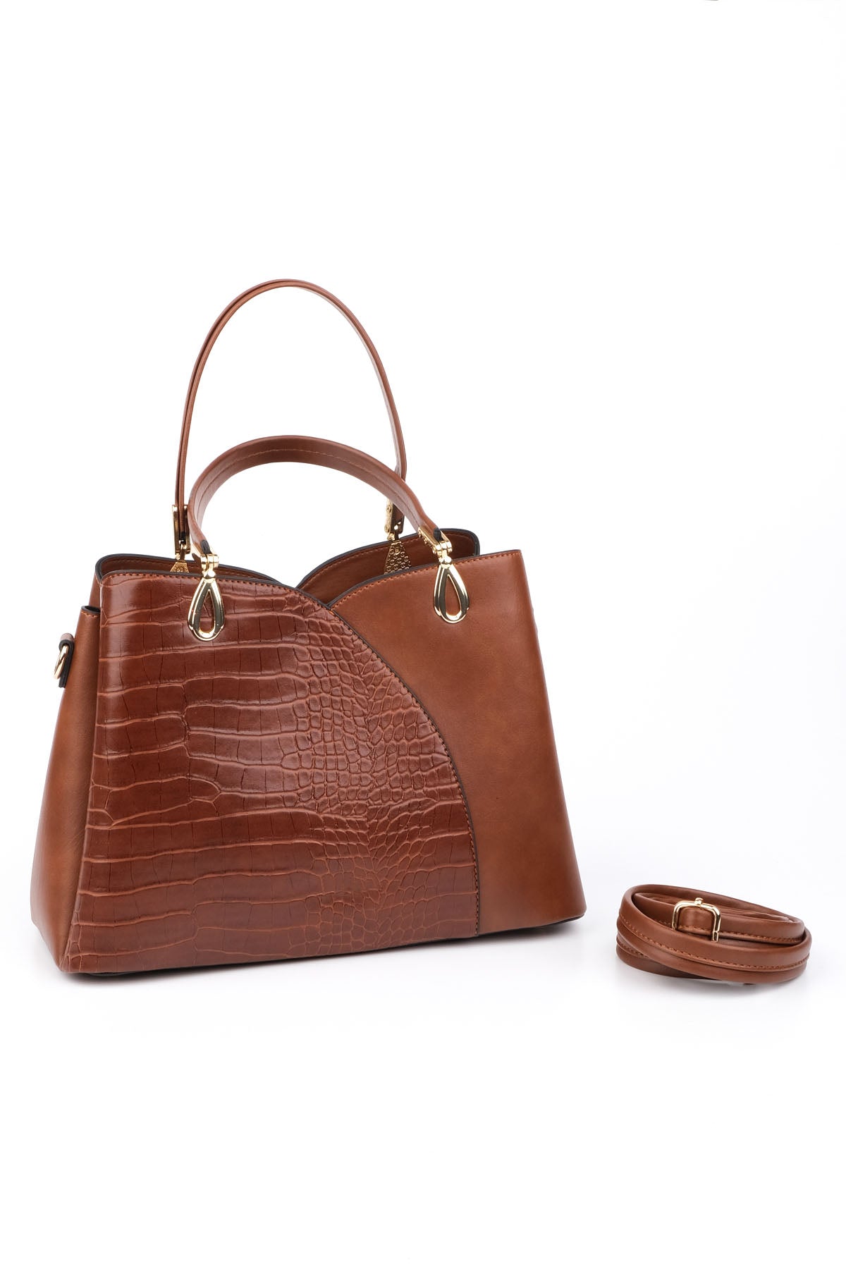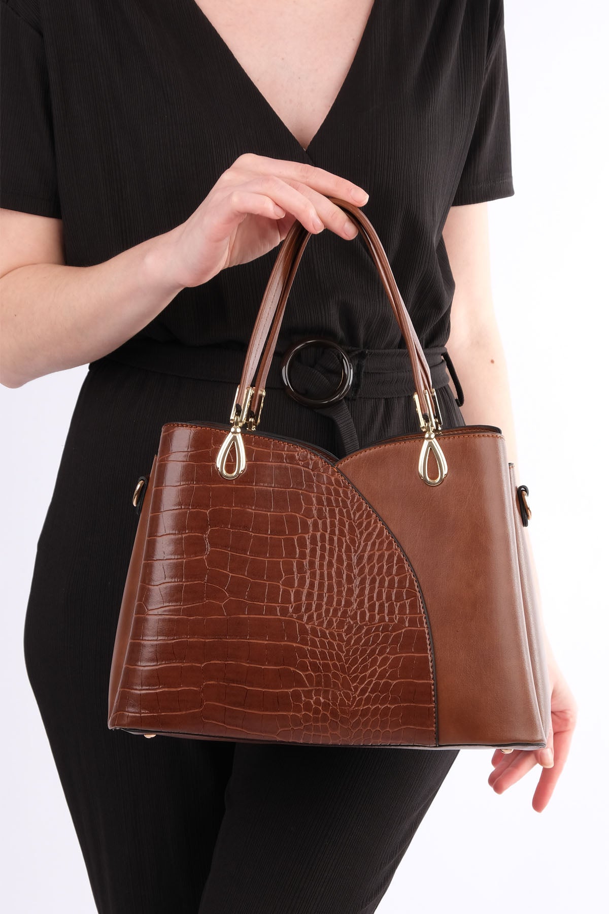 Kadın El&Omuz Çantası Fibela - Taba Croco