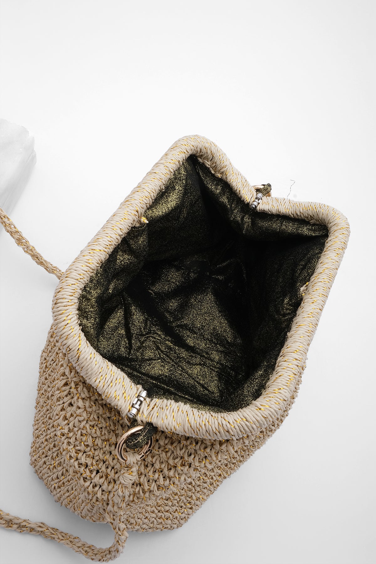 Kadın El Örgüsü Omuz Çantası Tives - Bej Hasır