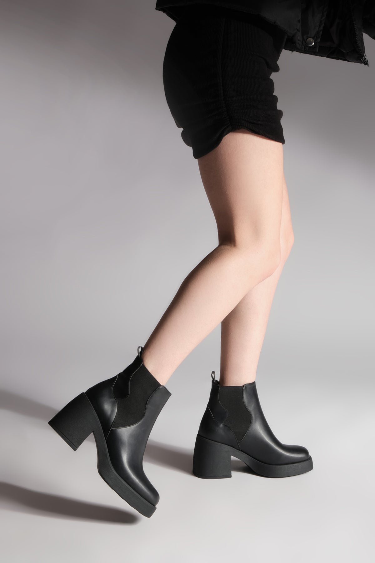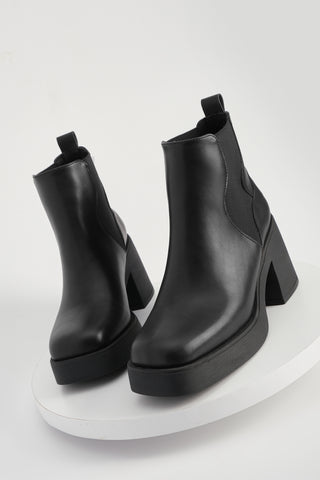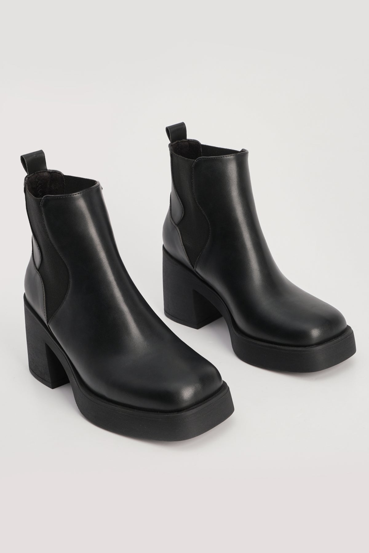 Kadın Elastik Yan Bantlı Topuklu Bot Donez - Siyah