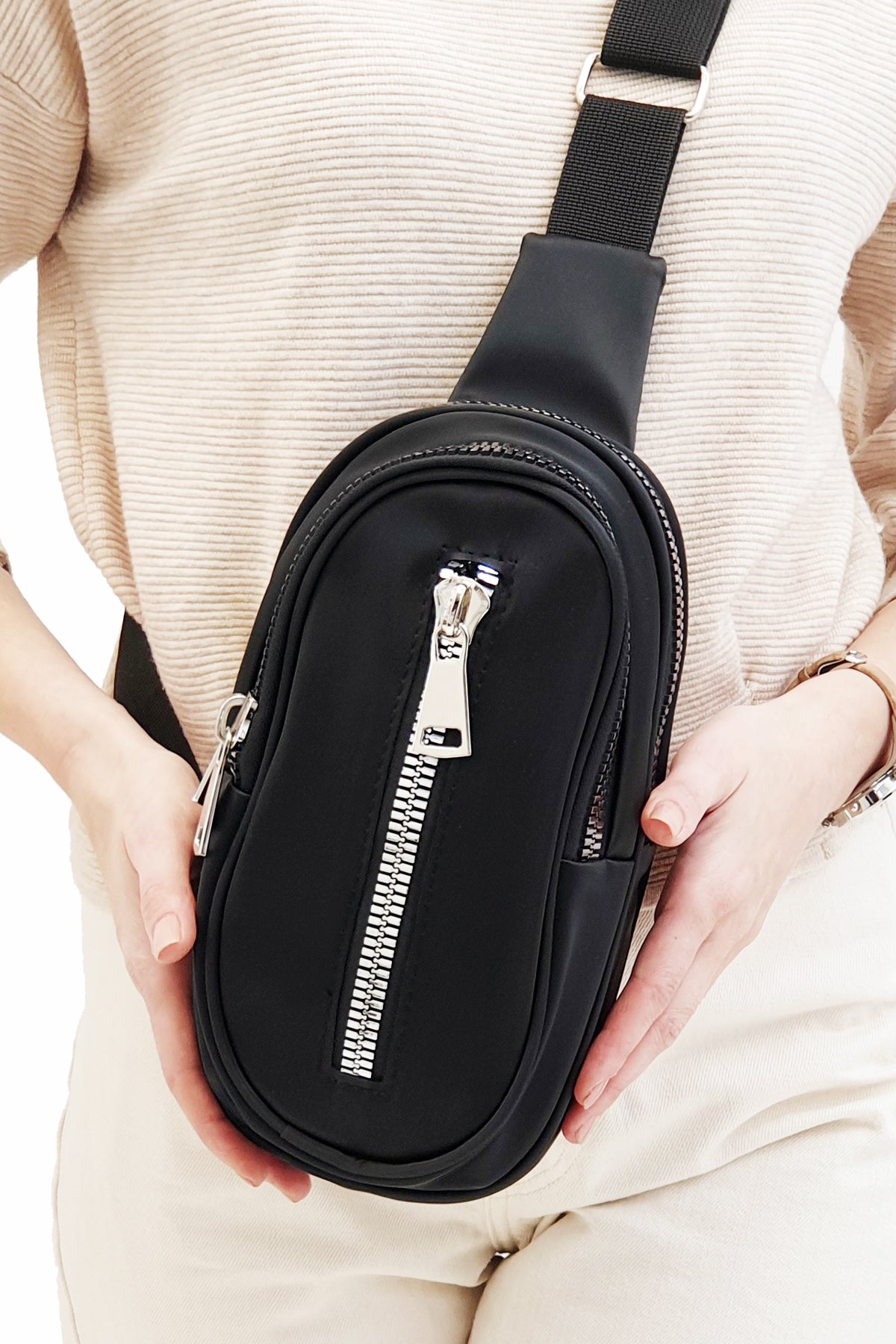 Kadın Fermuarlı Bel Çantası Renas - Siyah