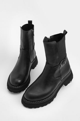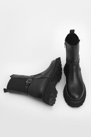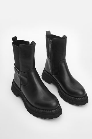 Kadın Kalın Taban Günlük Çizme Boren - Siyah