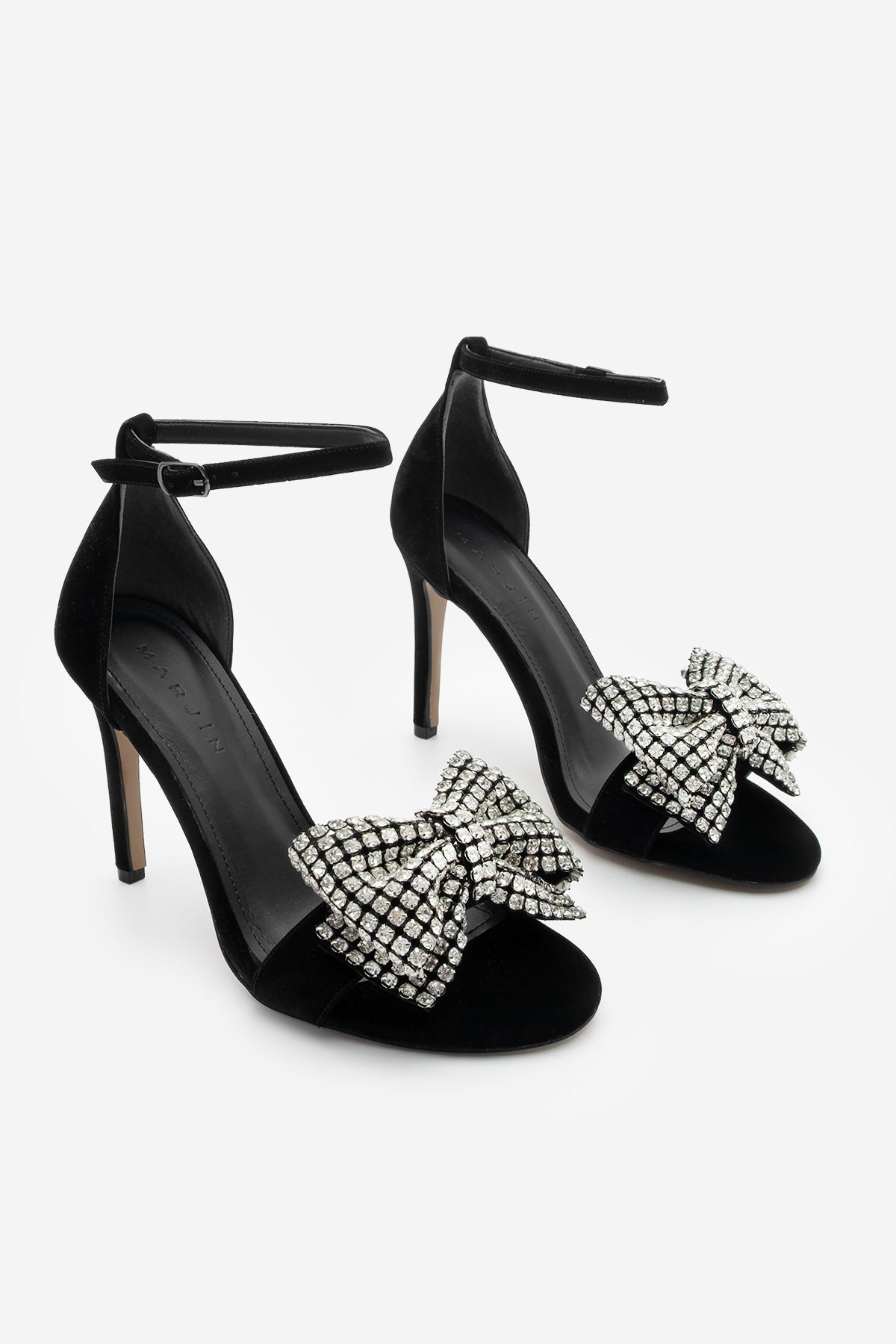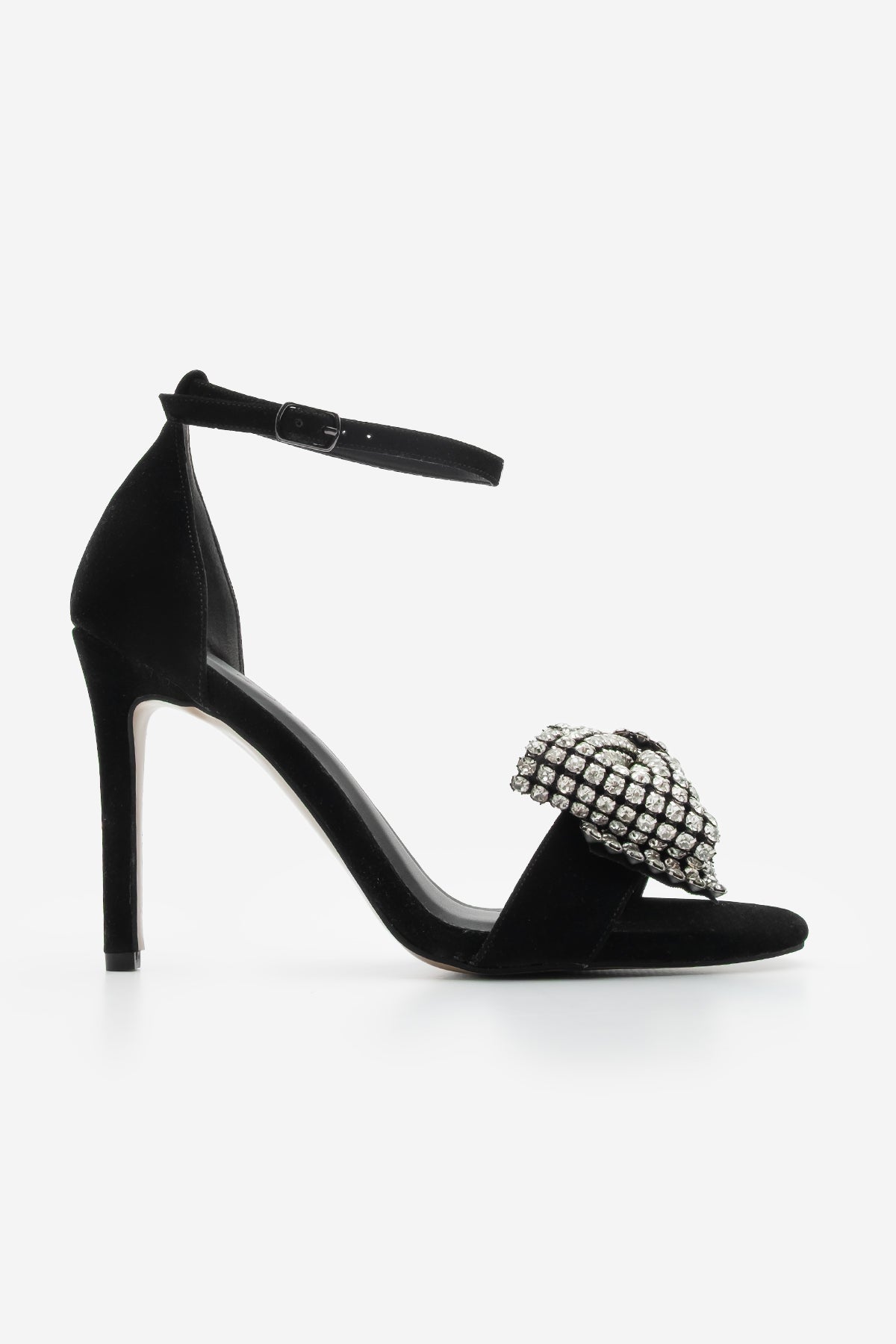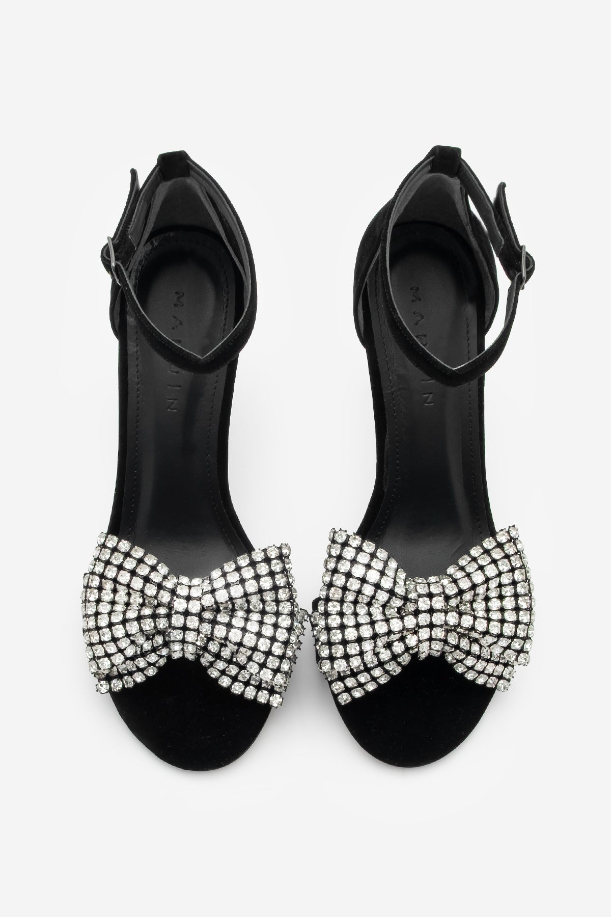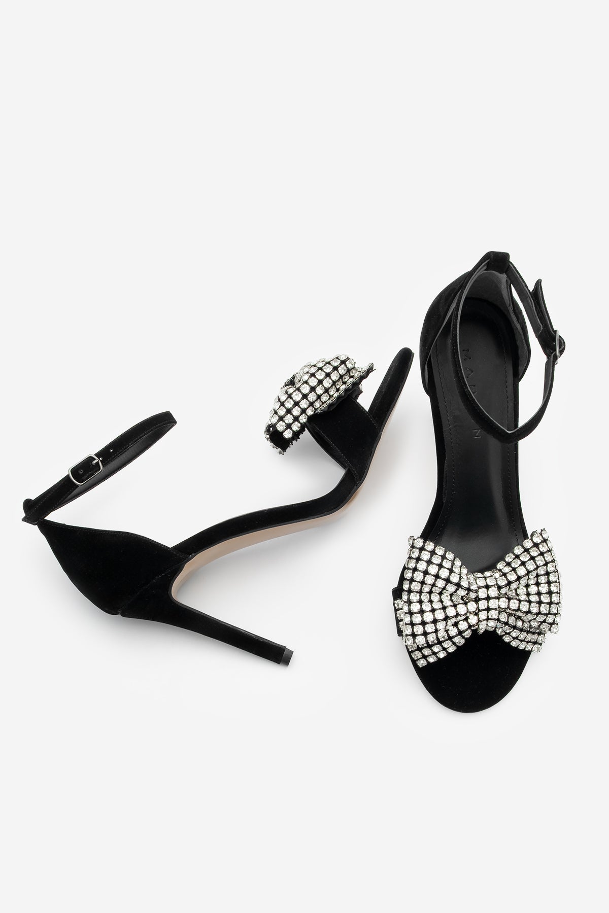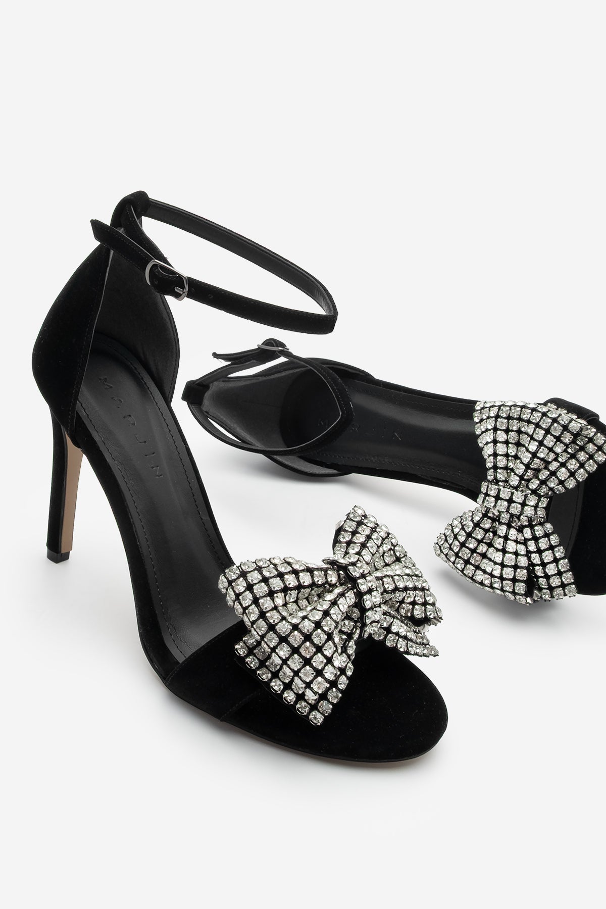 Kadın Fiyonklu Taşlı Topuklu Sandalet Belven - Siyah Süet