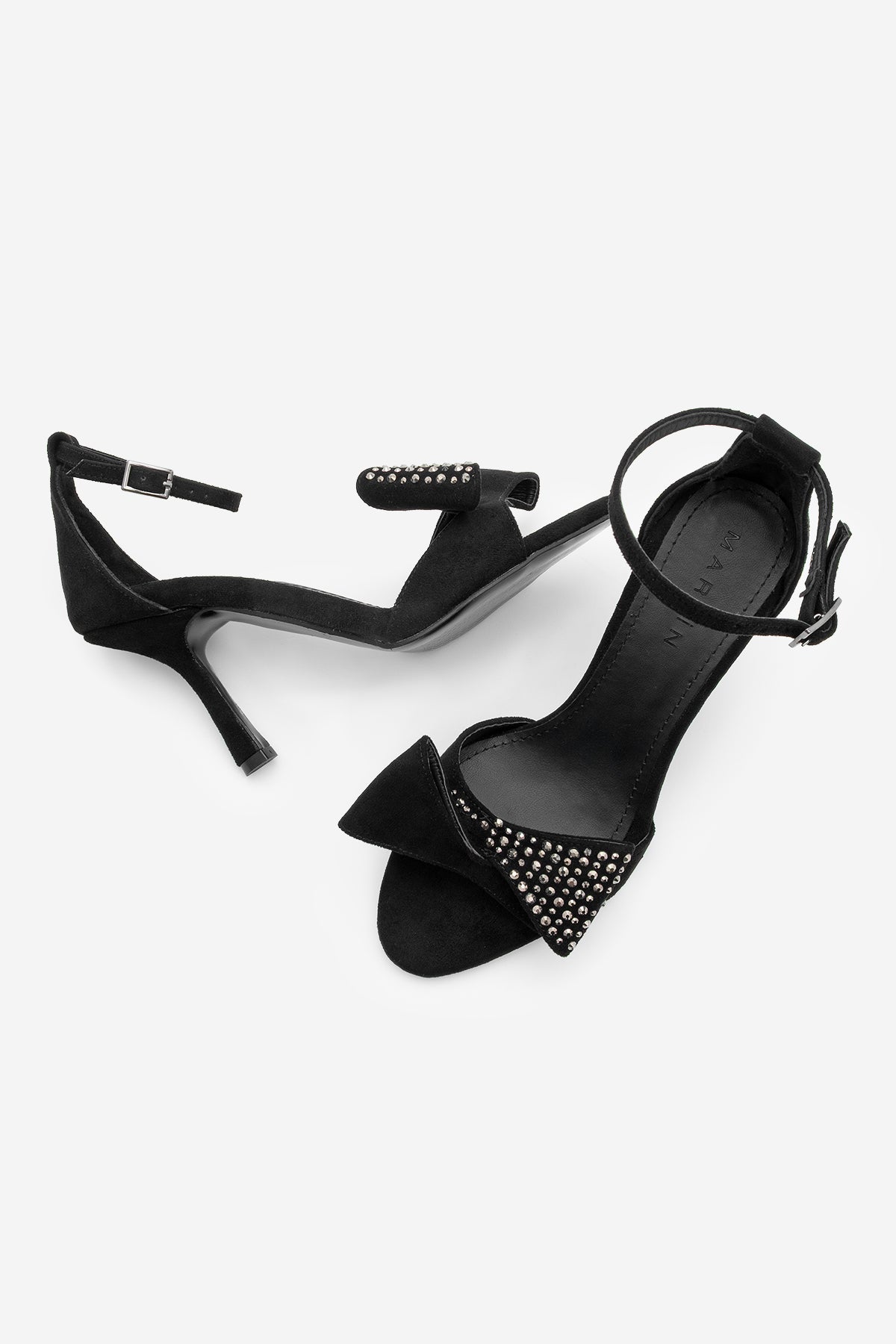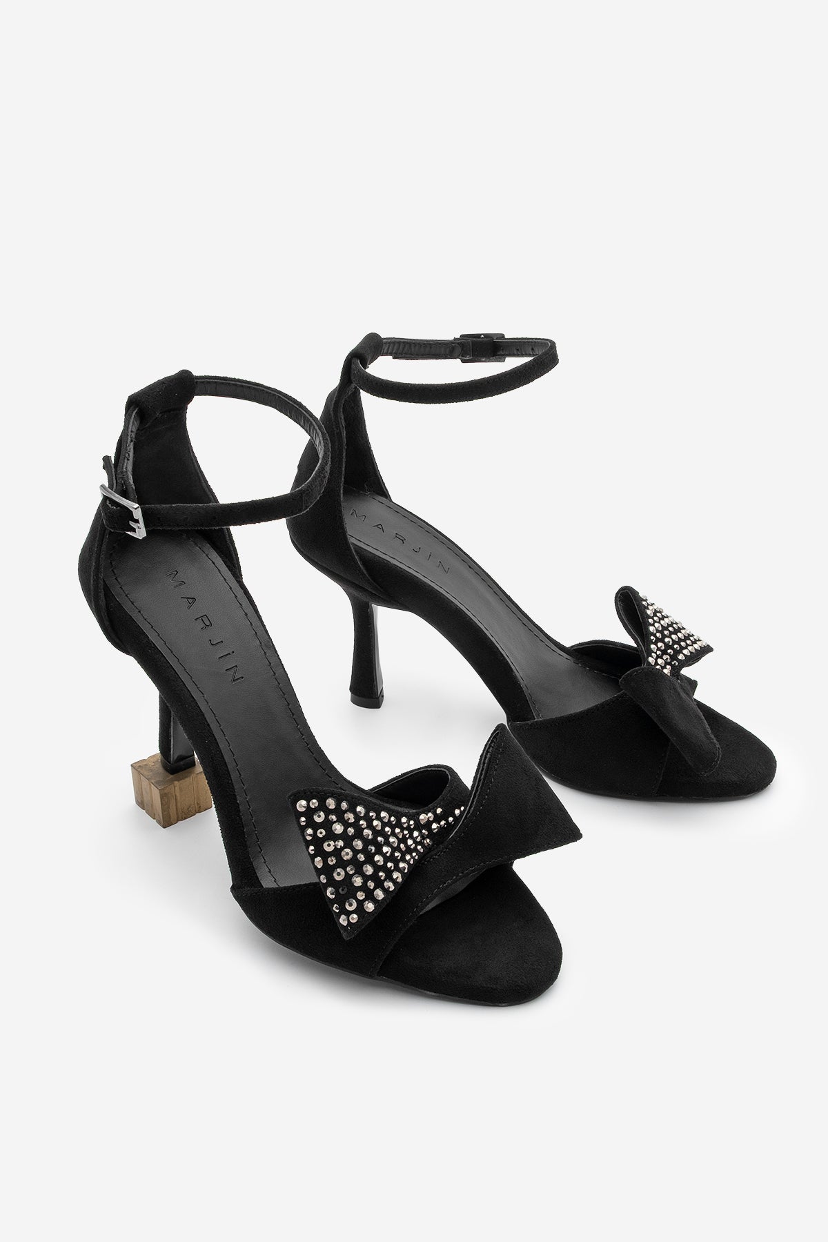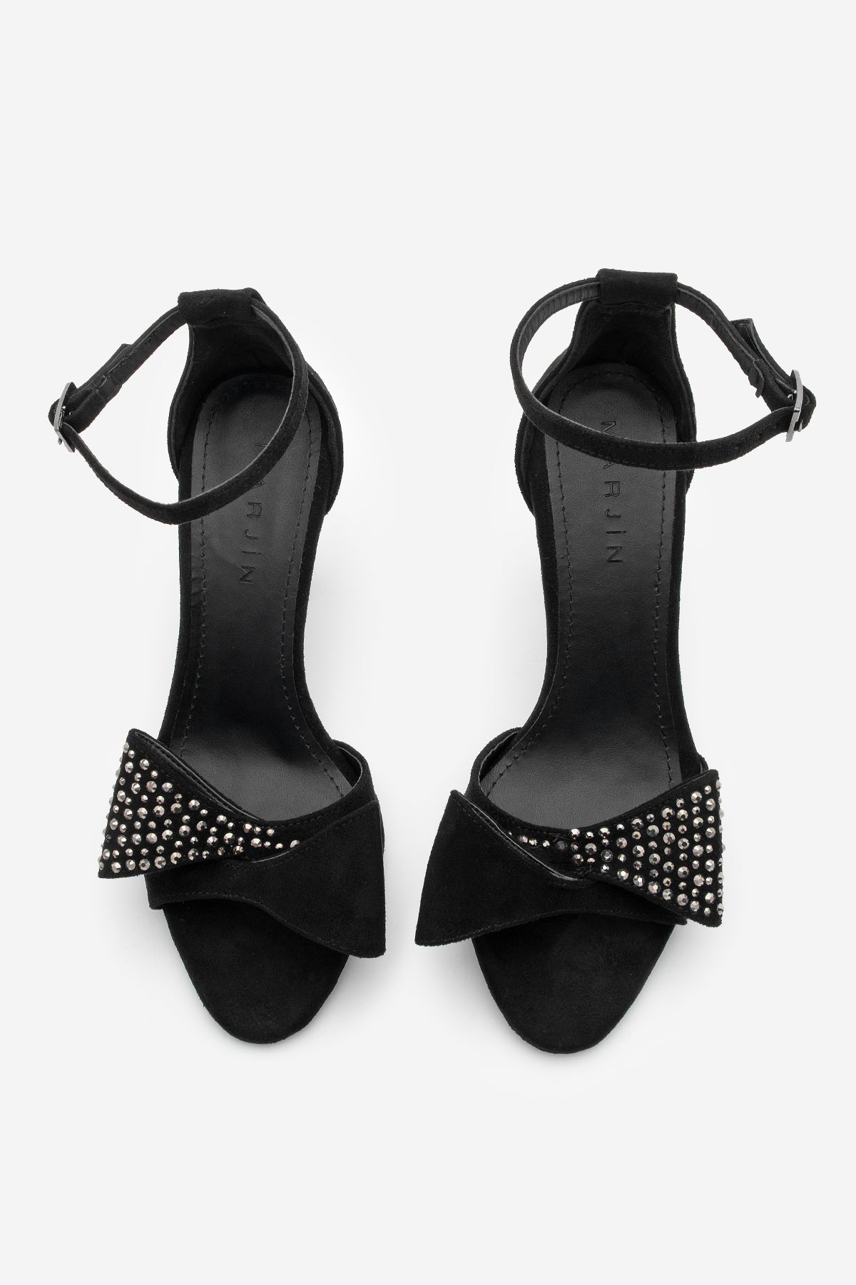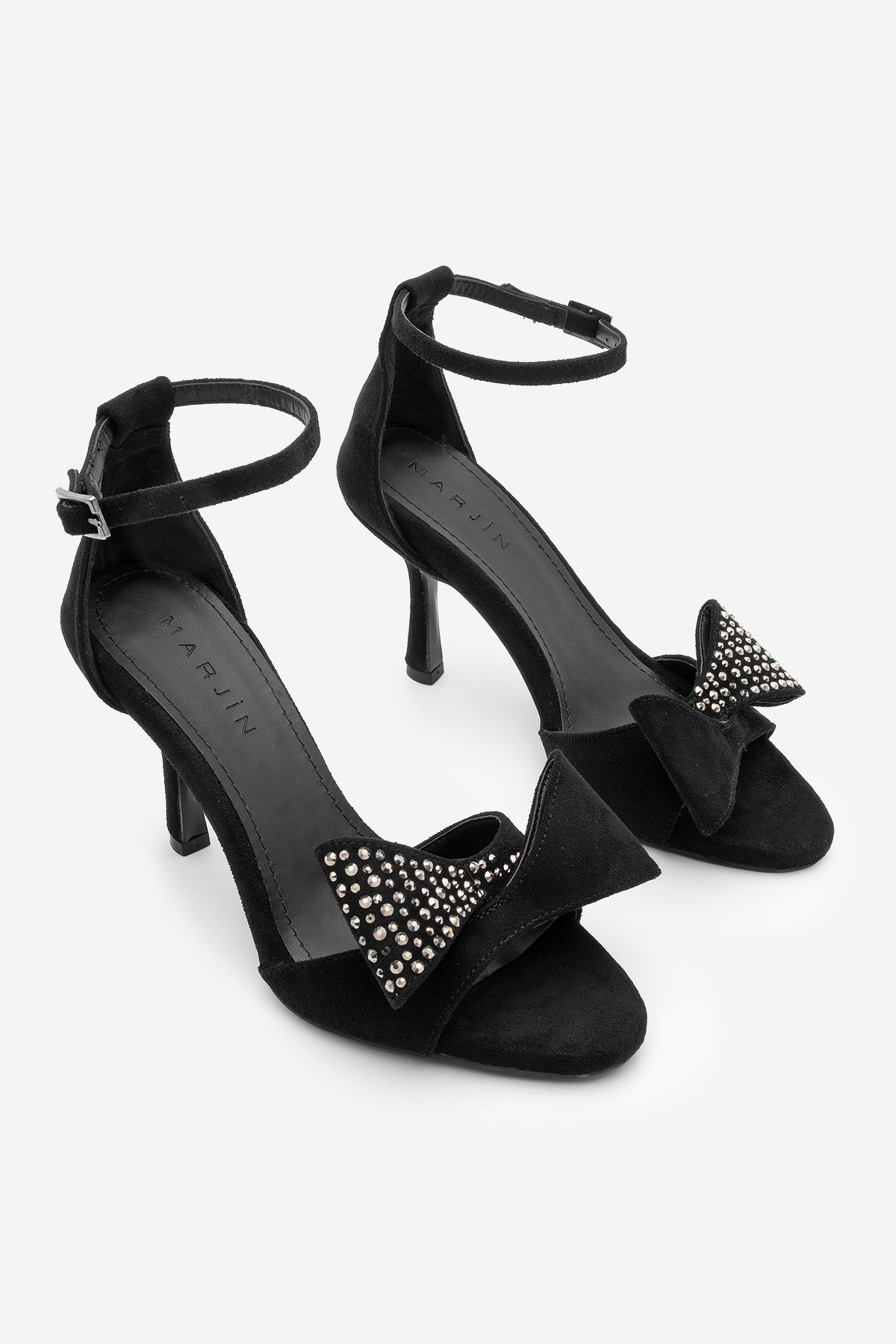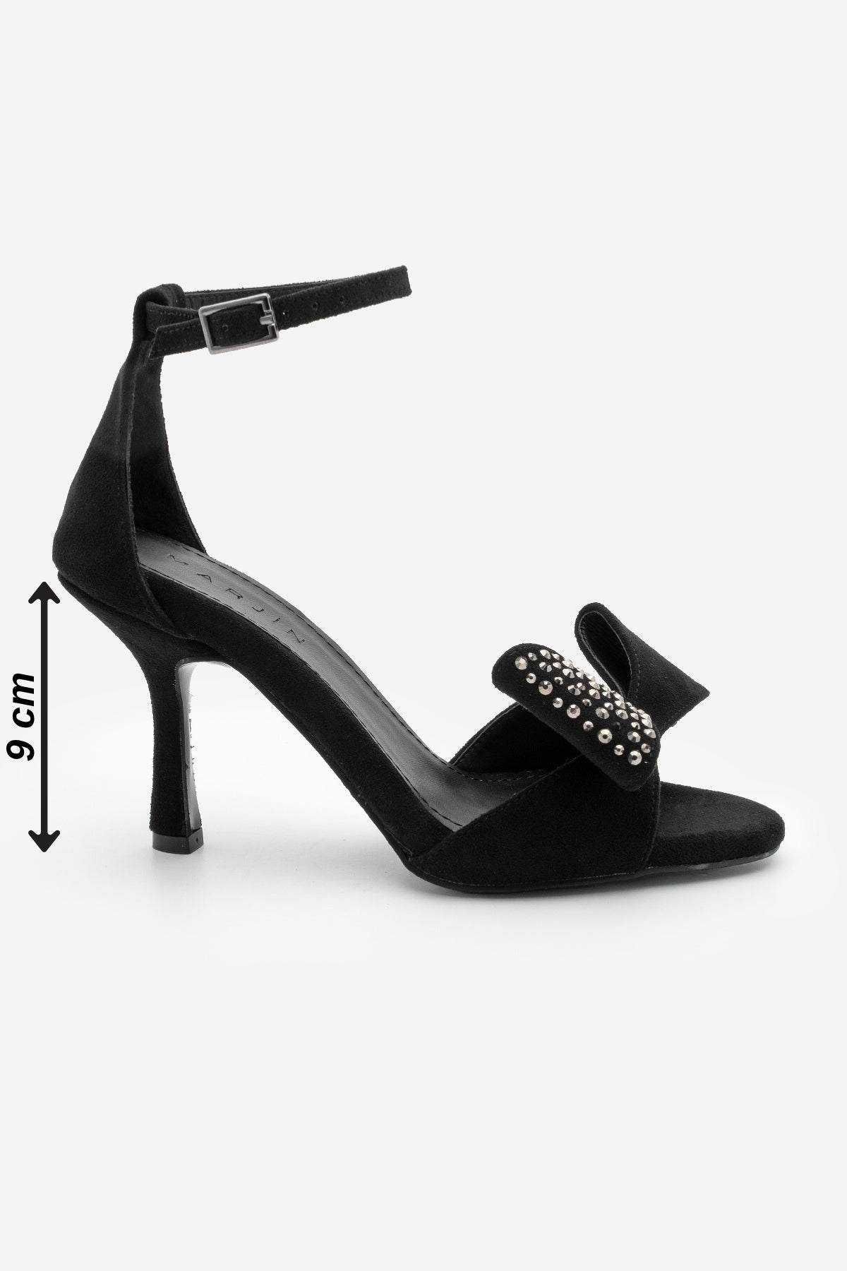 Kadın Fiyonklu Topuklu Sandalet Tevole - Siyah Süet