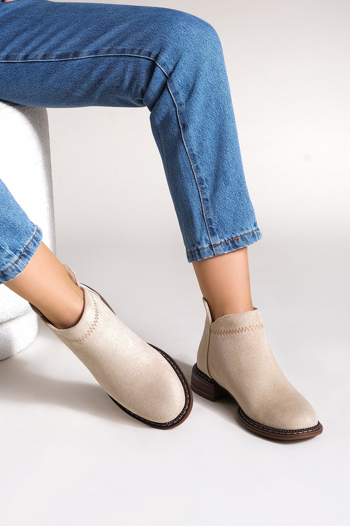 Kadın Küt Burun Topuklu Bot Sivet - Taba Süet