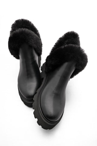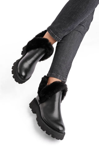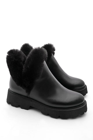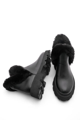 Kadın Günlük Bot Eva Taban Kürklü Falke - Siyah