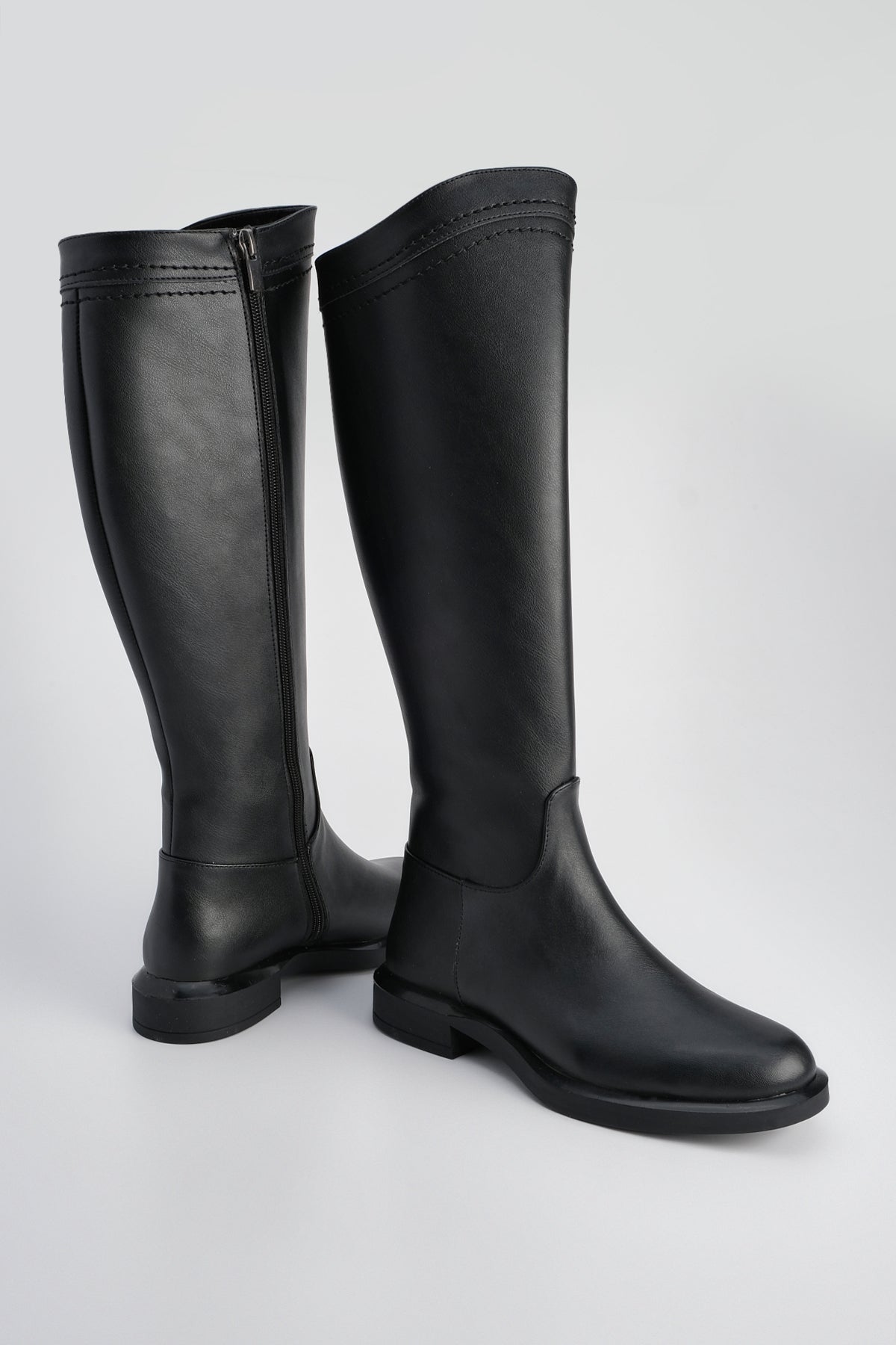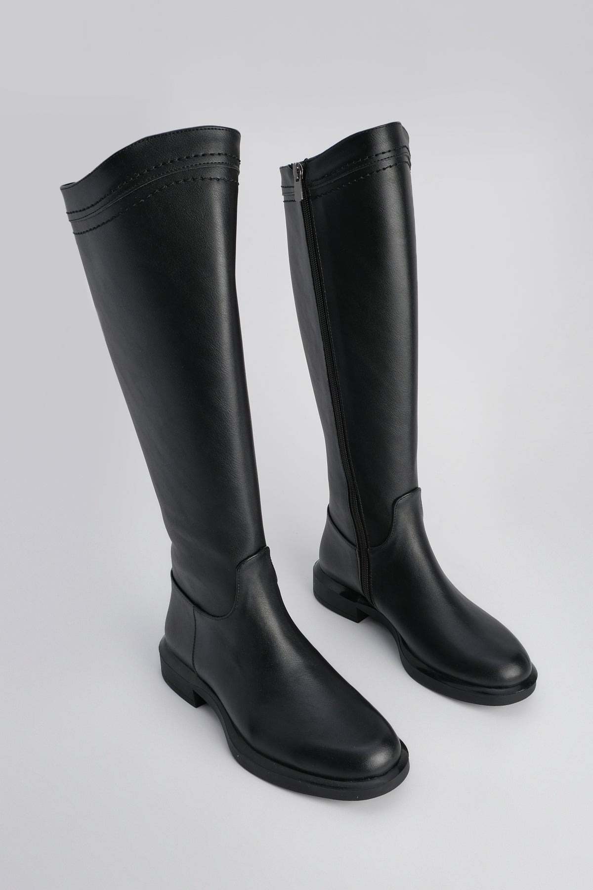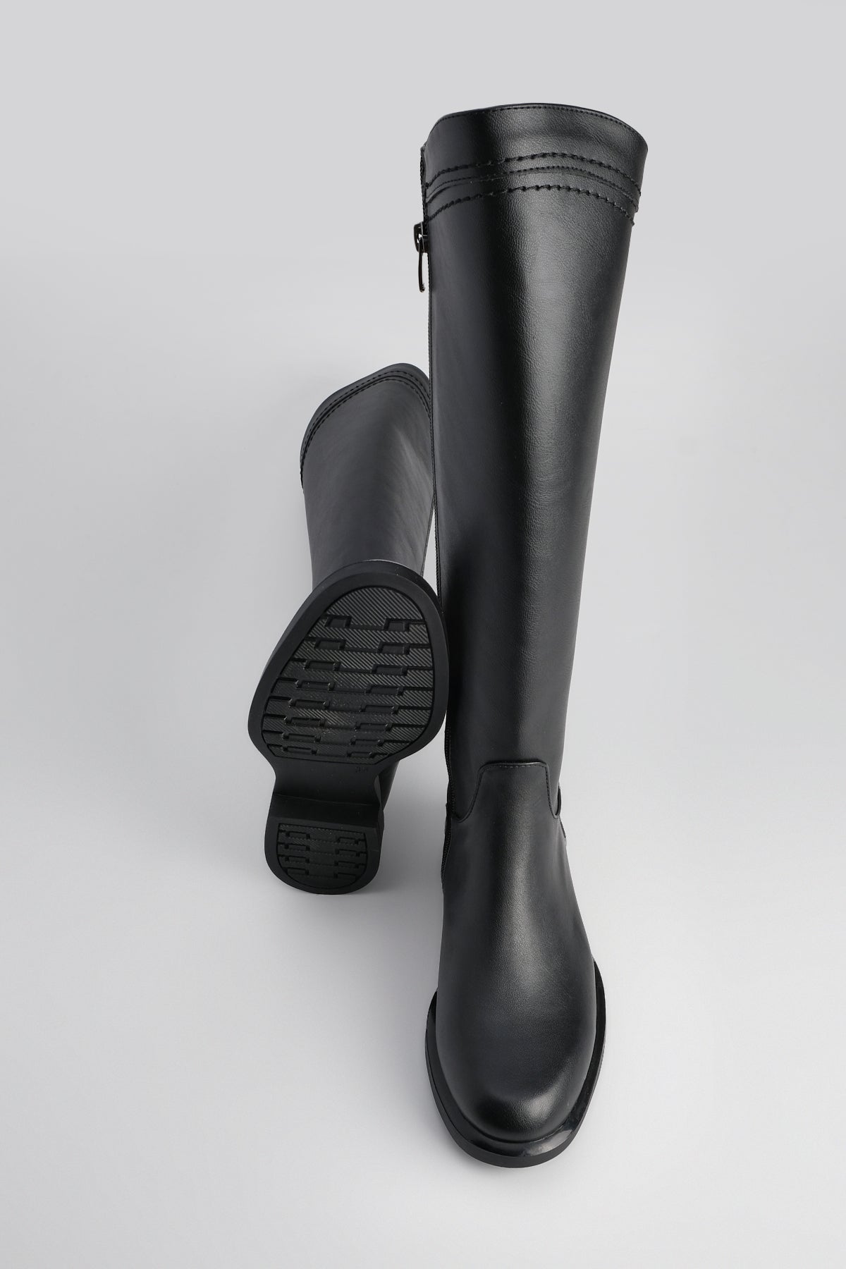 Kadın Kalın Taban Günlük Çizme Boren - Siyah