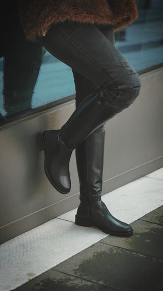 Kadın Kalın Taban Günlük Çizme Boren - Siyah